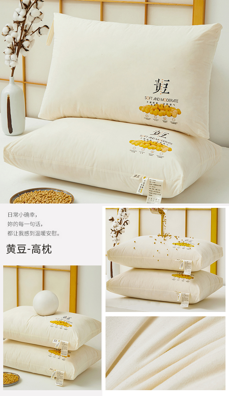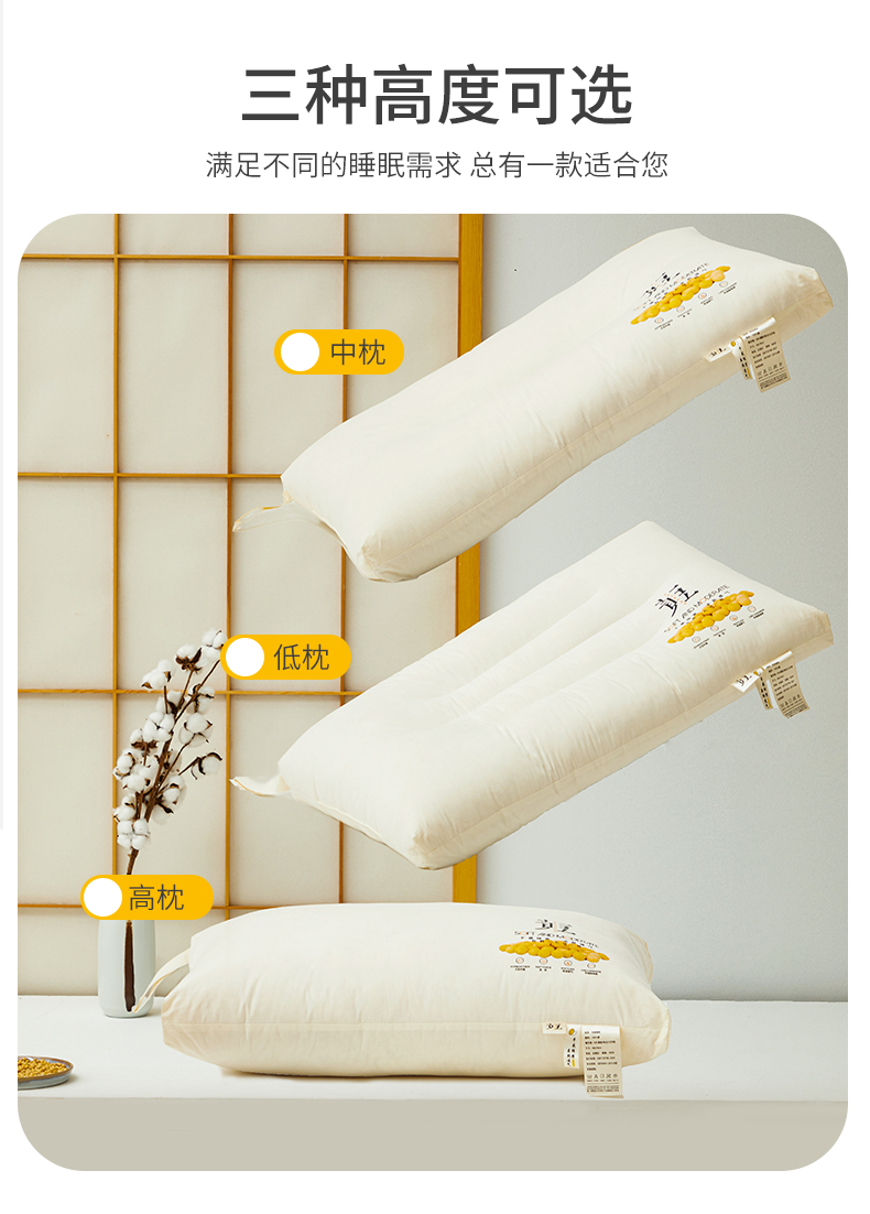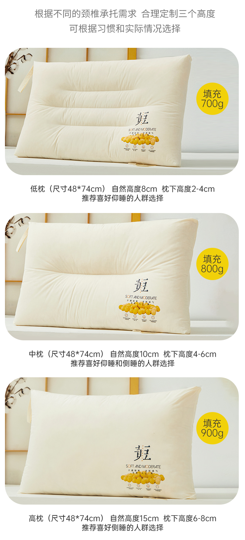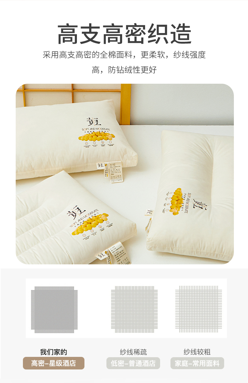 自然醒A类全棉大豆纤维黄豆枕芯五星级酒店枕护颈椎助睡眠枕芯单人家用高整头XK