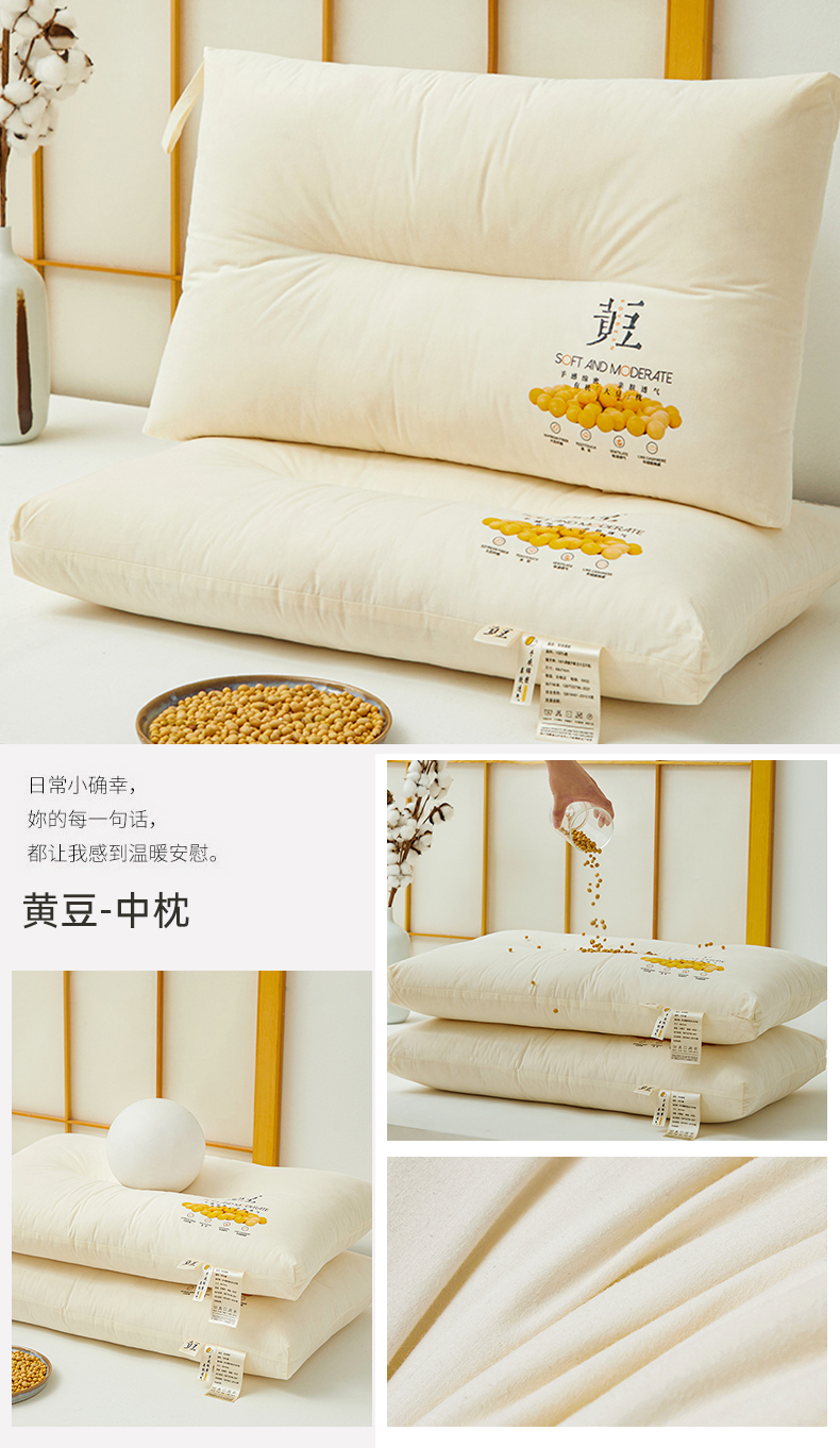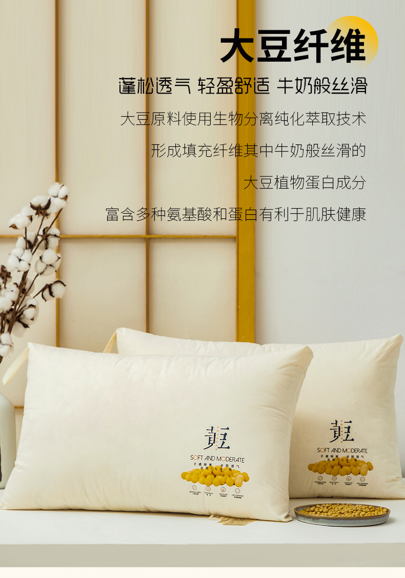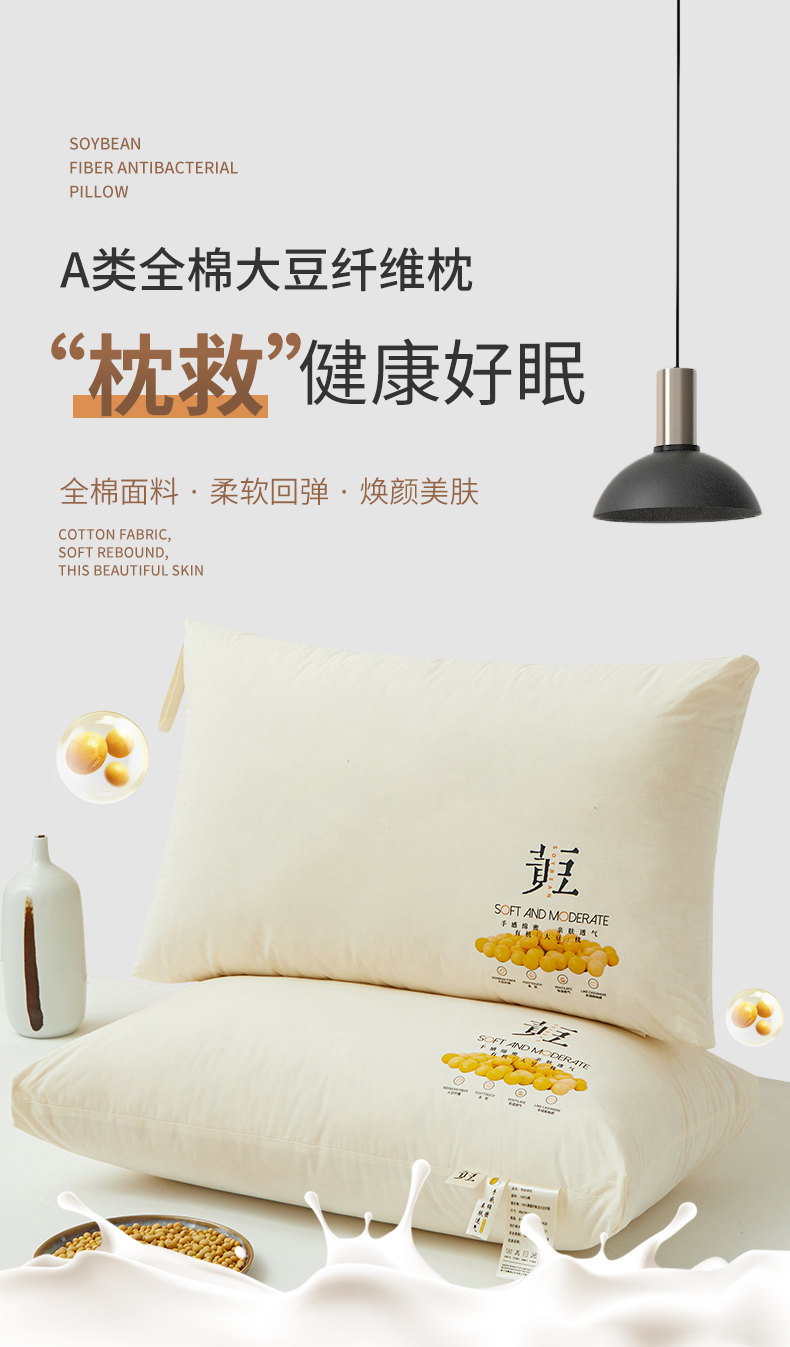 自然醒A类全棉大豆纤维黄豆枕芯五星级酒店枕护颈椎助睡眠枕芯单人家用高整头XK
