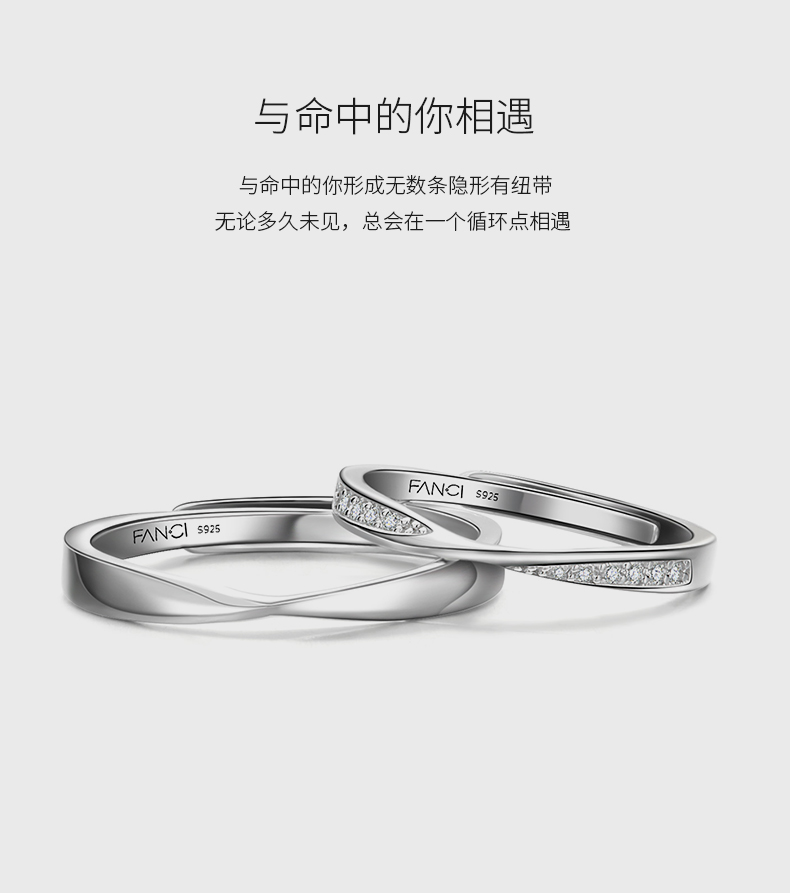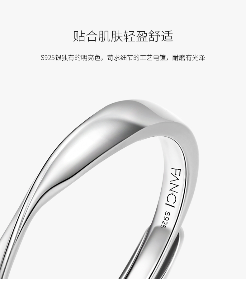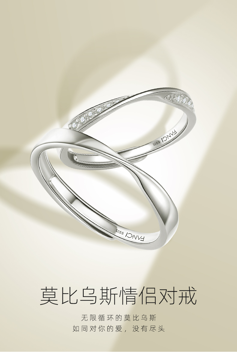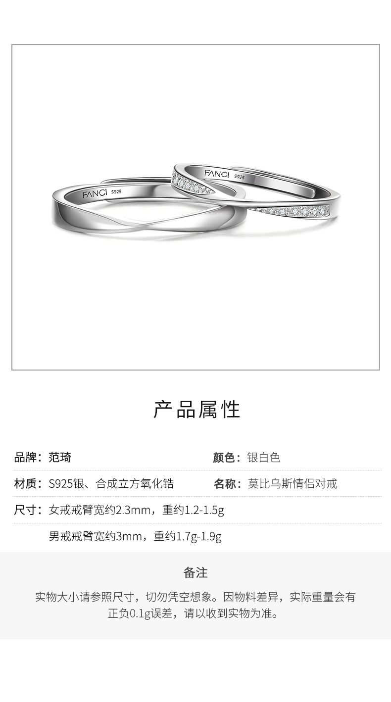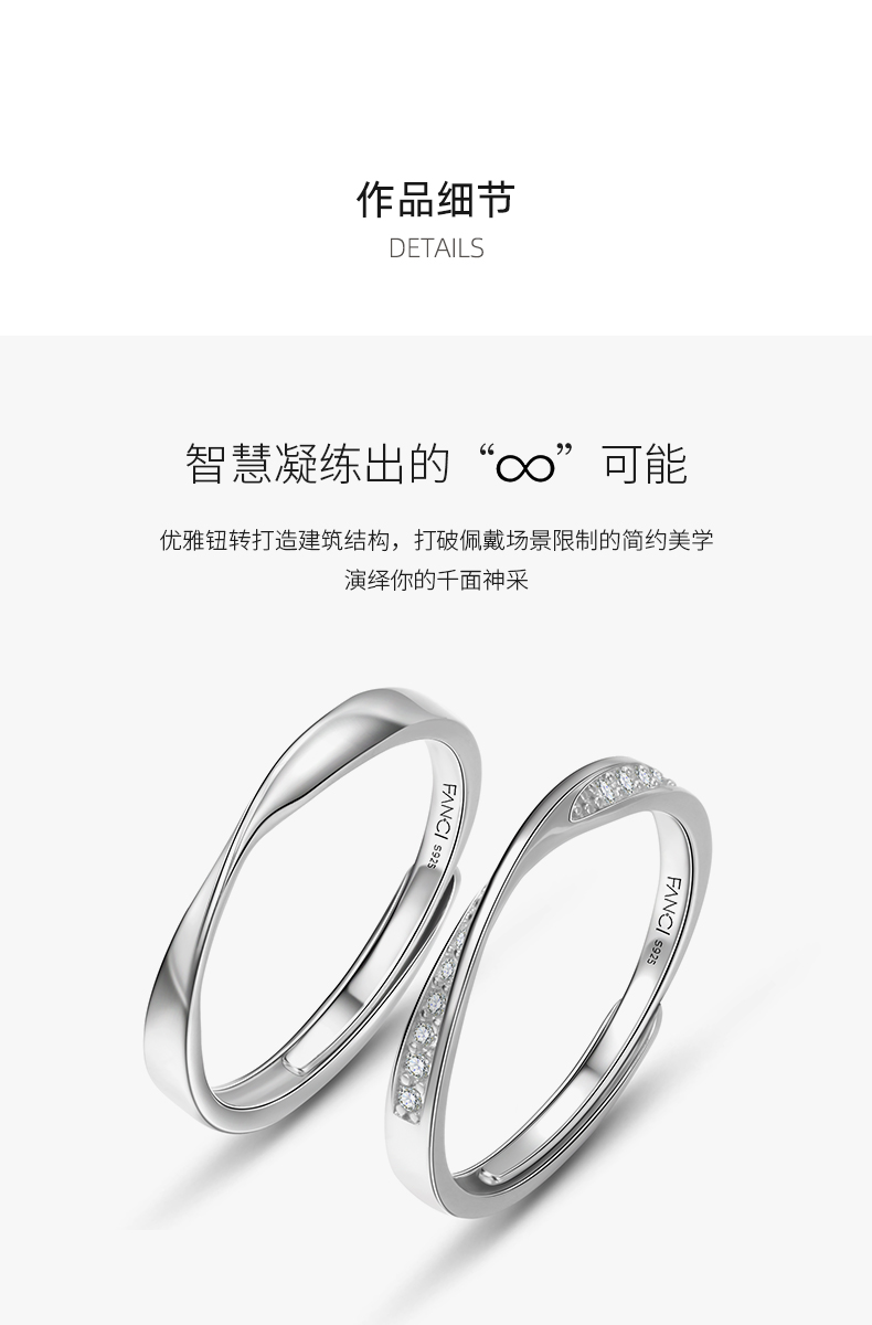Fanci范琦莫比乌斯环情侣对戒925银简约精致刻字纪念日生日礼物送男朋友情人节礼物