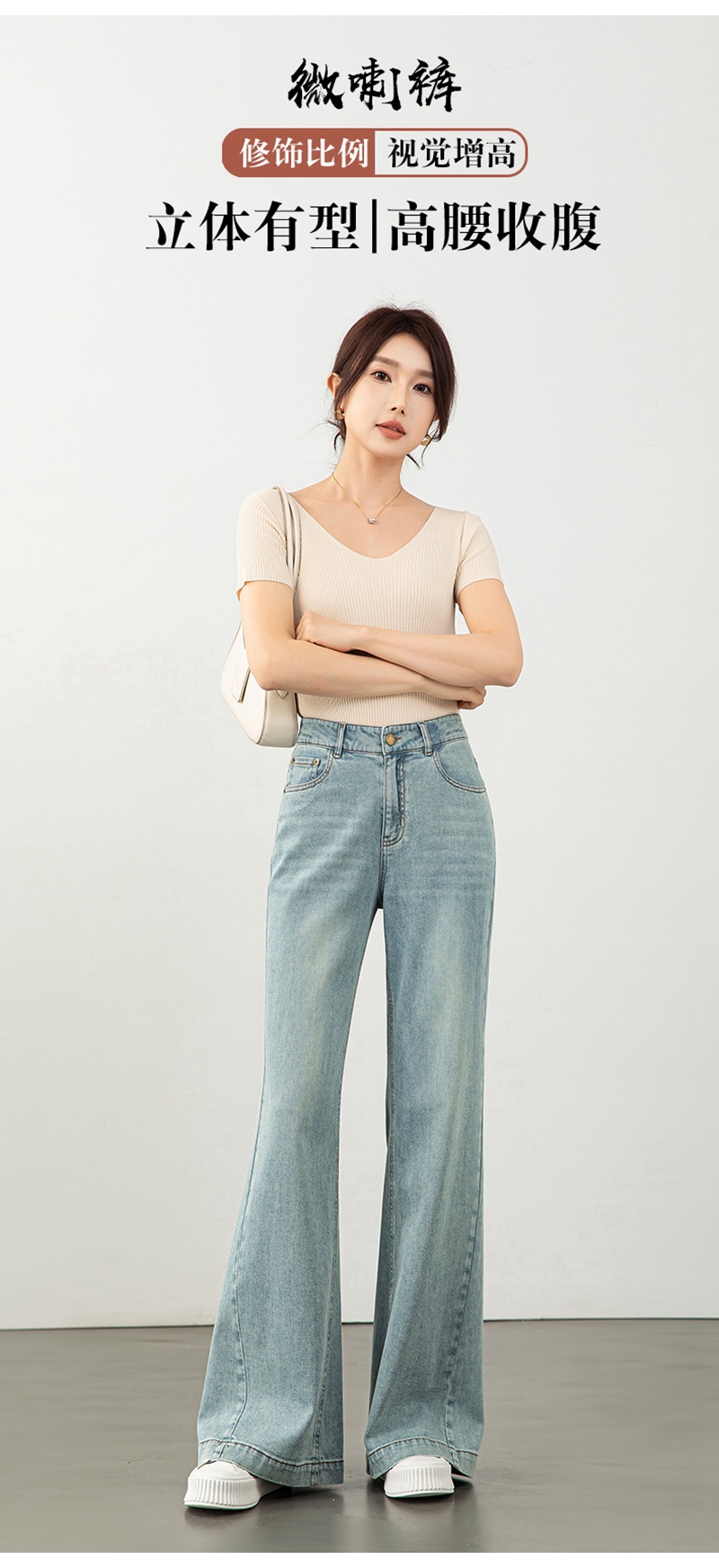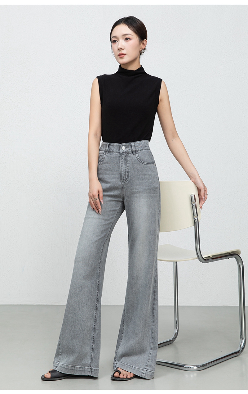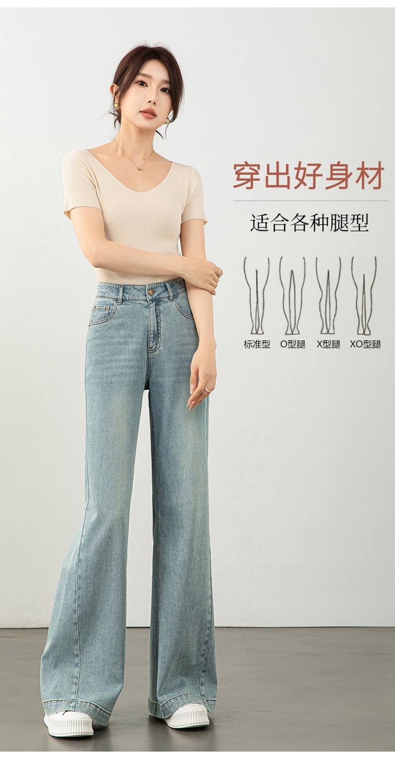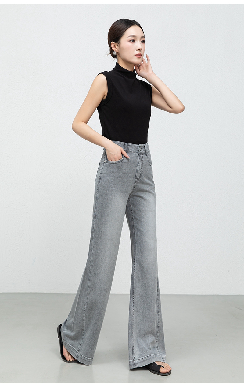 时尚高腰拉链修身弹力拖地微喇牛仔裤
