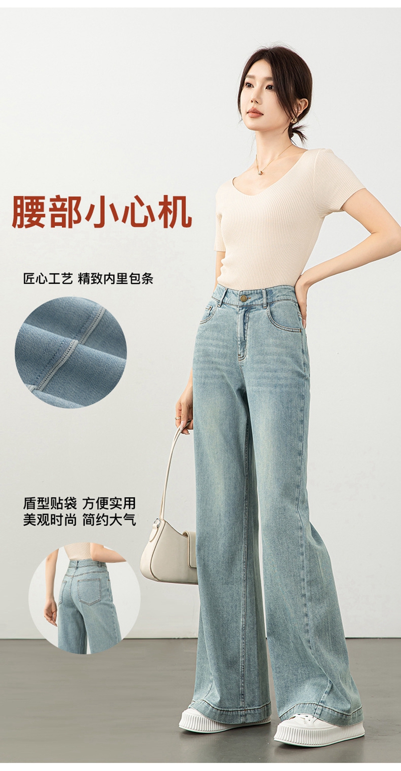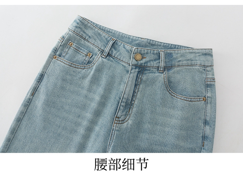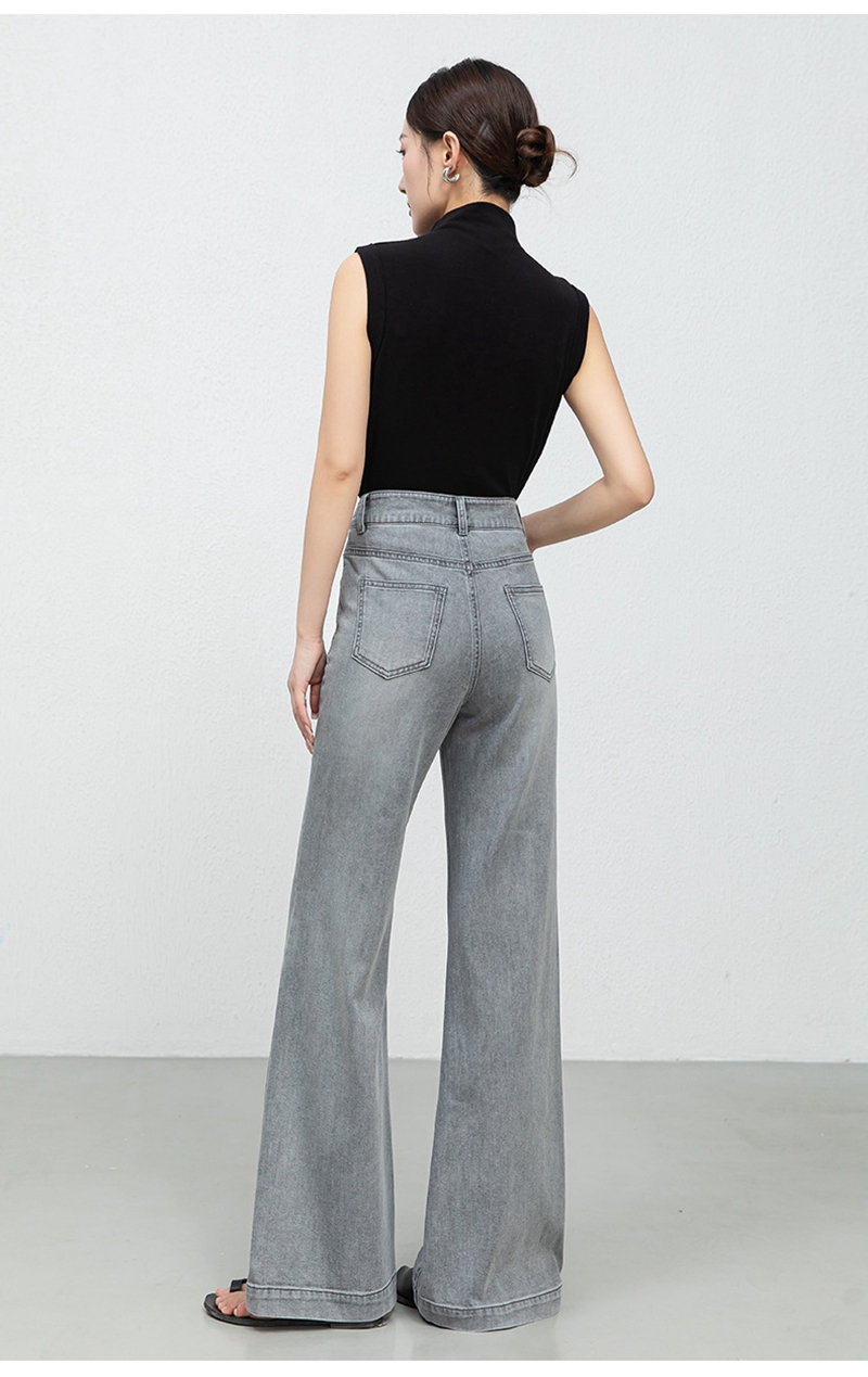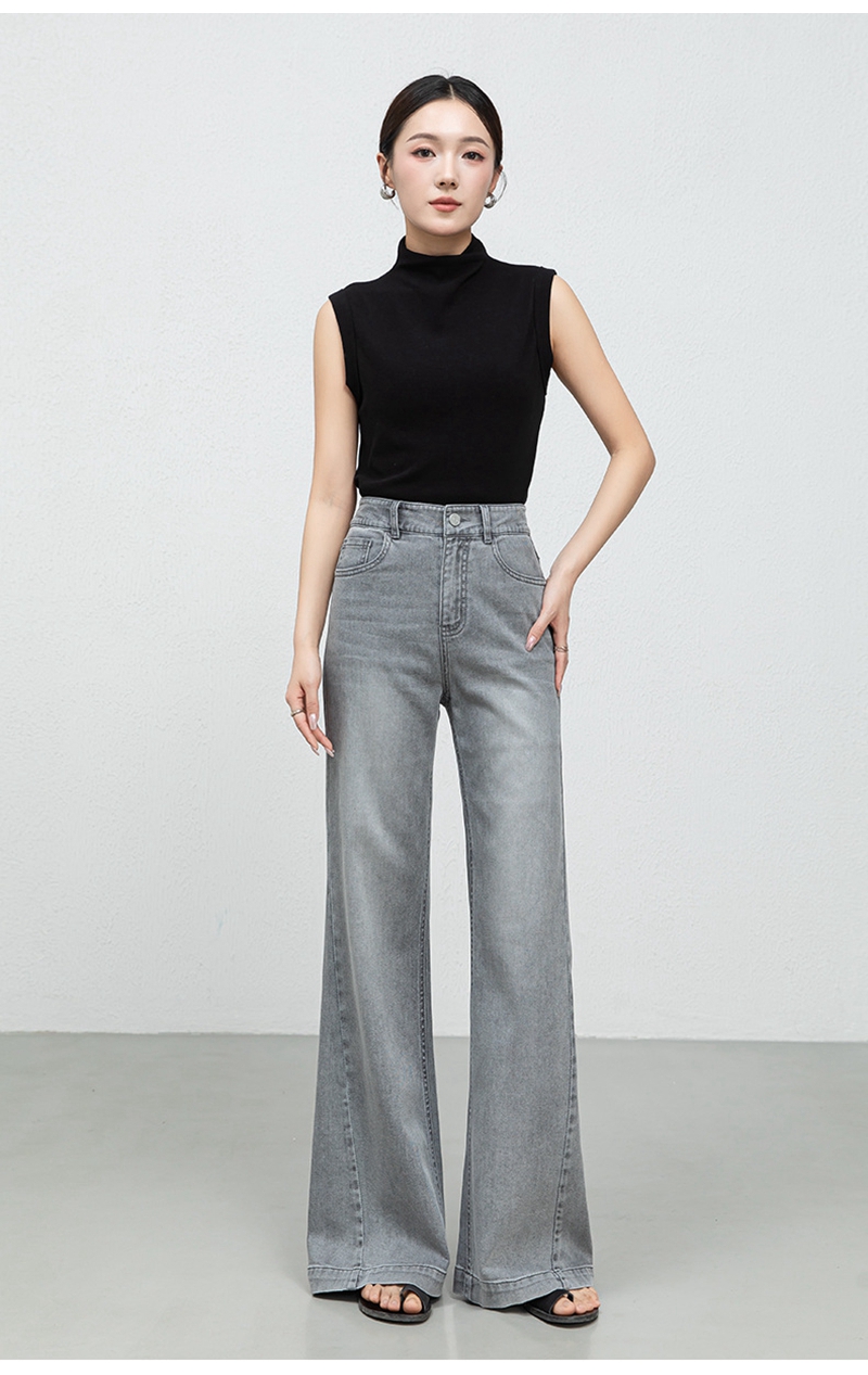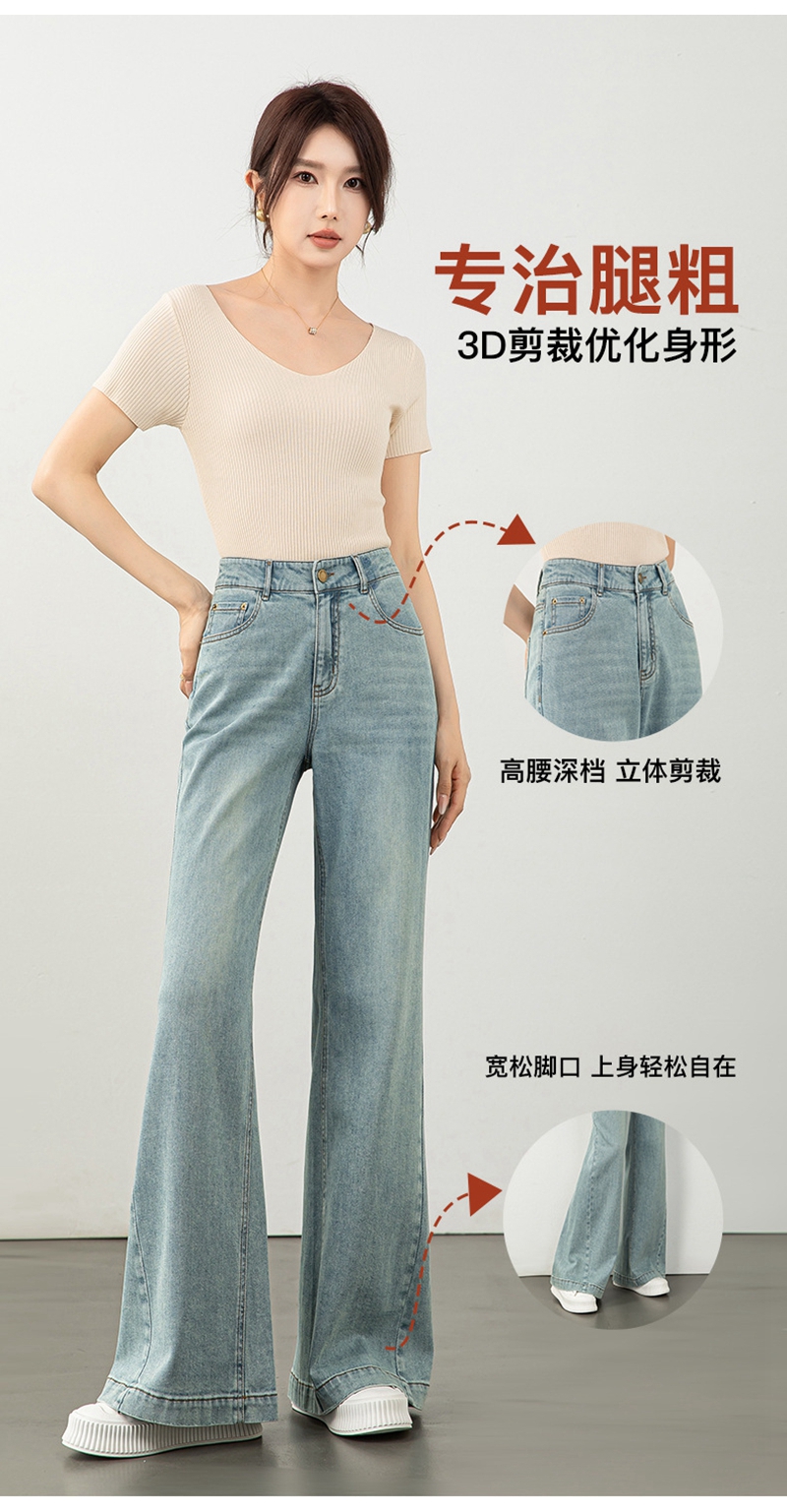 时尚高腰拉链修身弹力拖地微喇牛仔裤