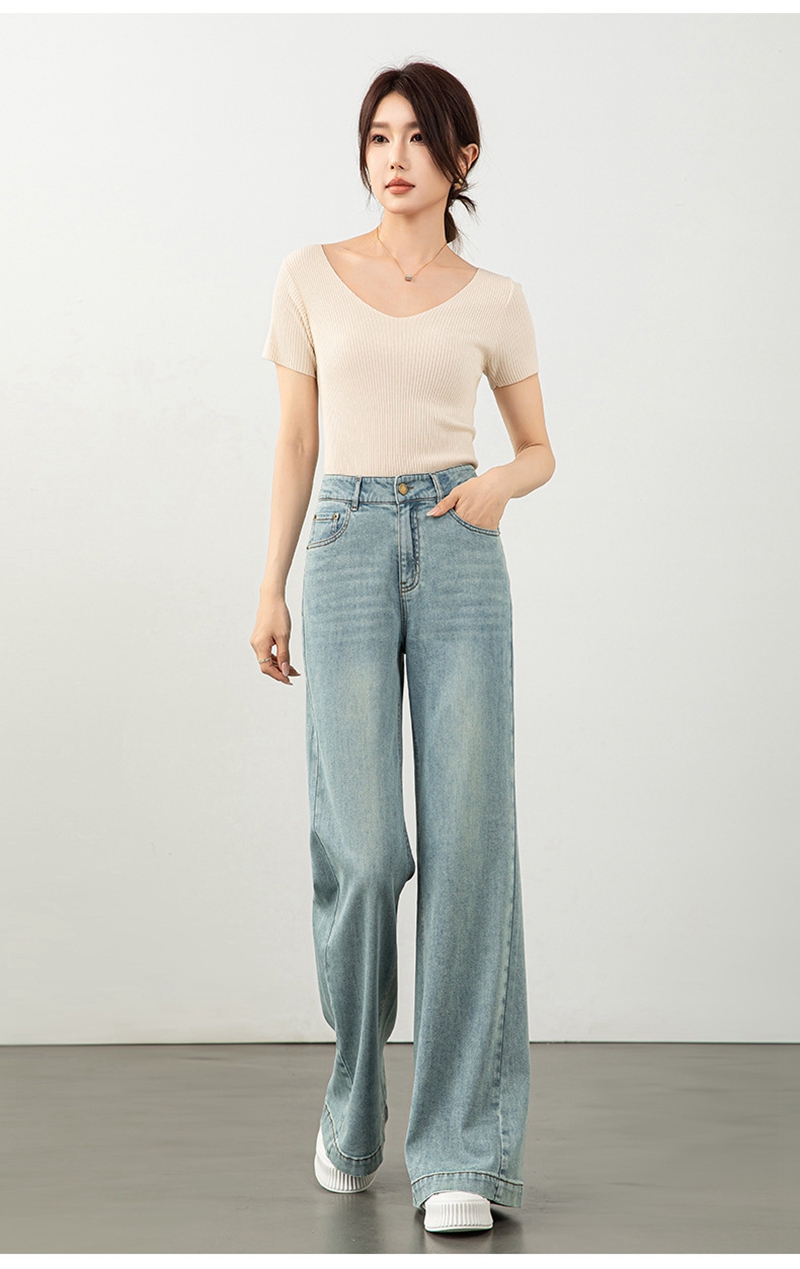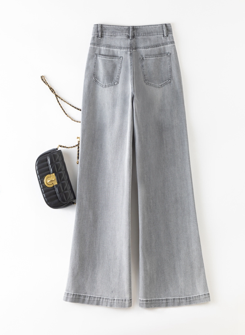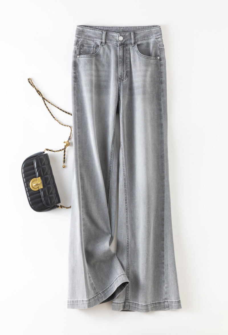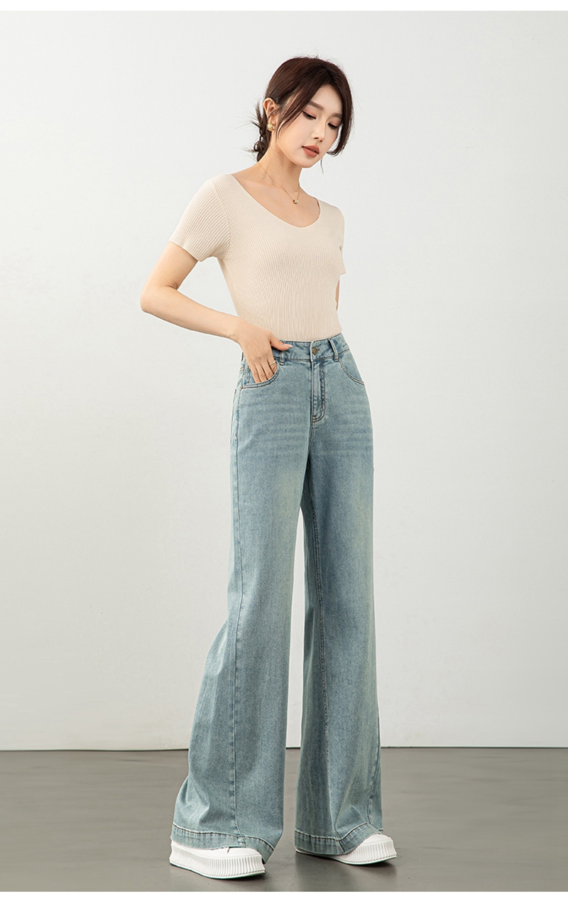 时尚高腰拉链修身弹力拖地微喇牛仔裤