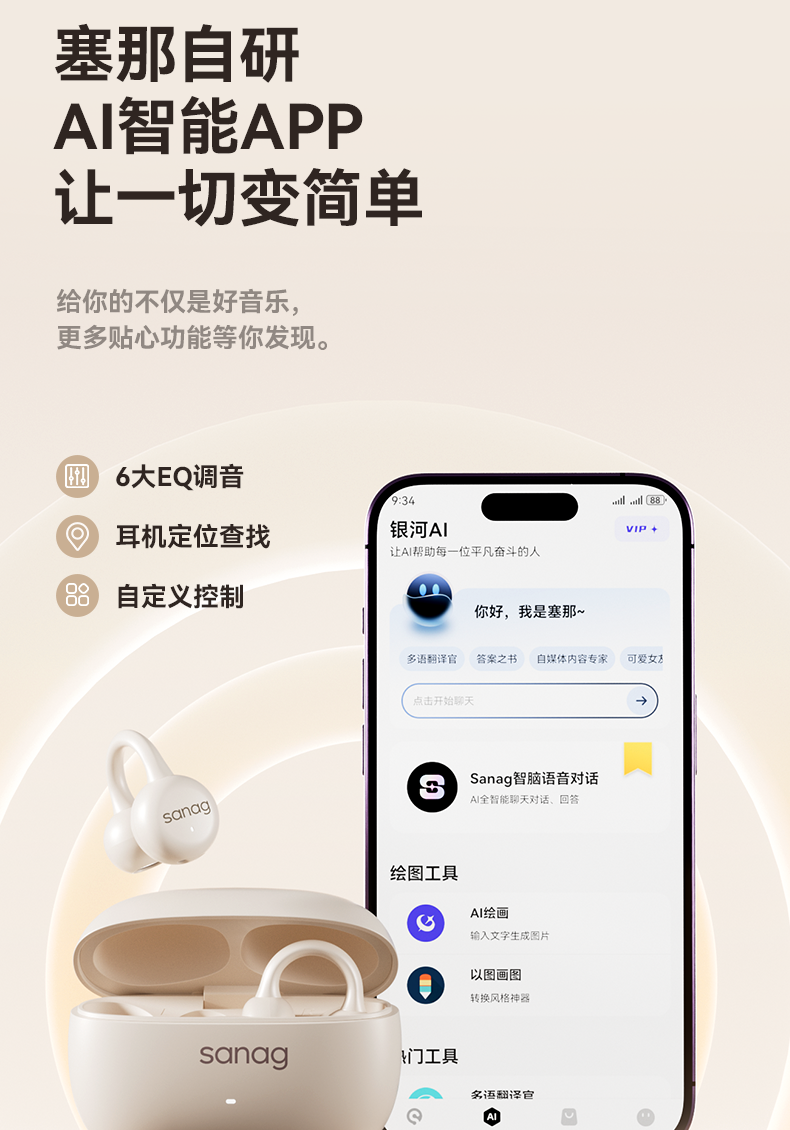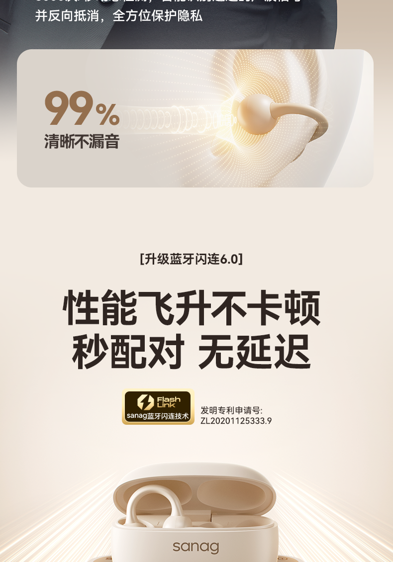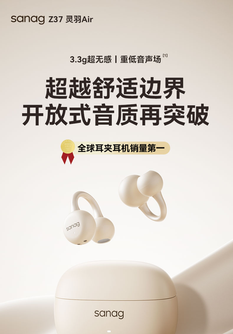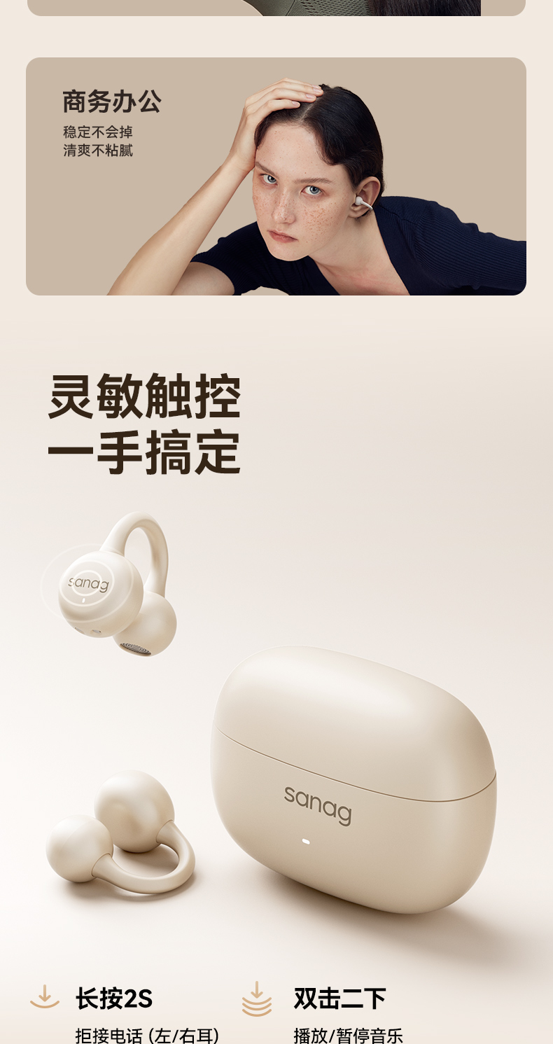 【出行必备丨塞那Sanag S6SPRO&Z37耳夹蓝牙耳机】AI分离式降噪算法,沟通清晰,智能控制音量,久听不易疲劳,持久续航,日常通勤,跑步 ,商务办公,时尚随行全场景适配