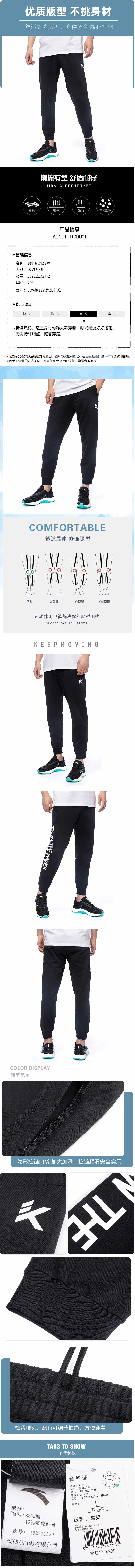 安踏运动裤男2022夏季新款收口束脚休闲裤子针织九分裤152221327-2