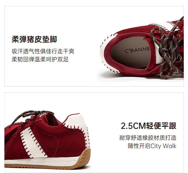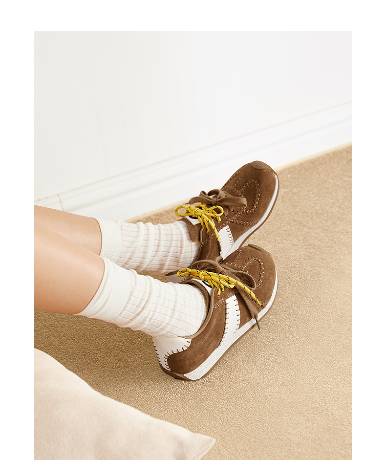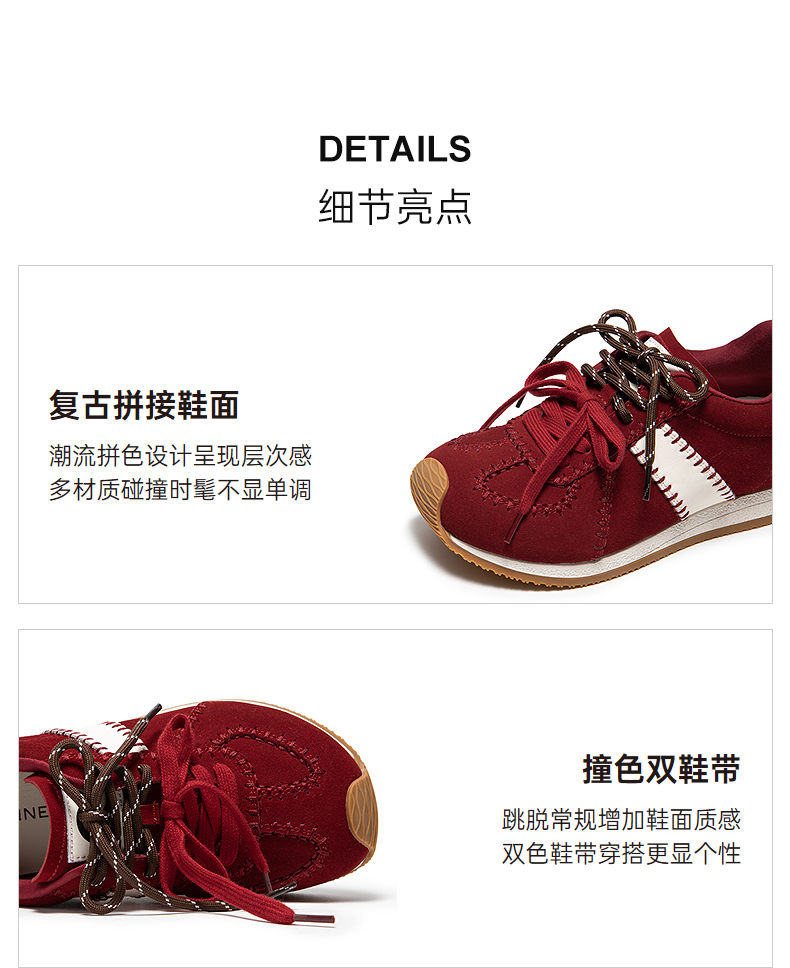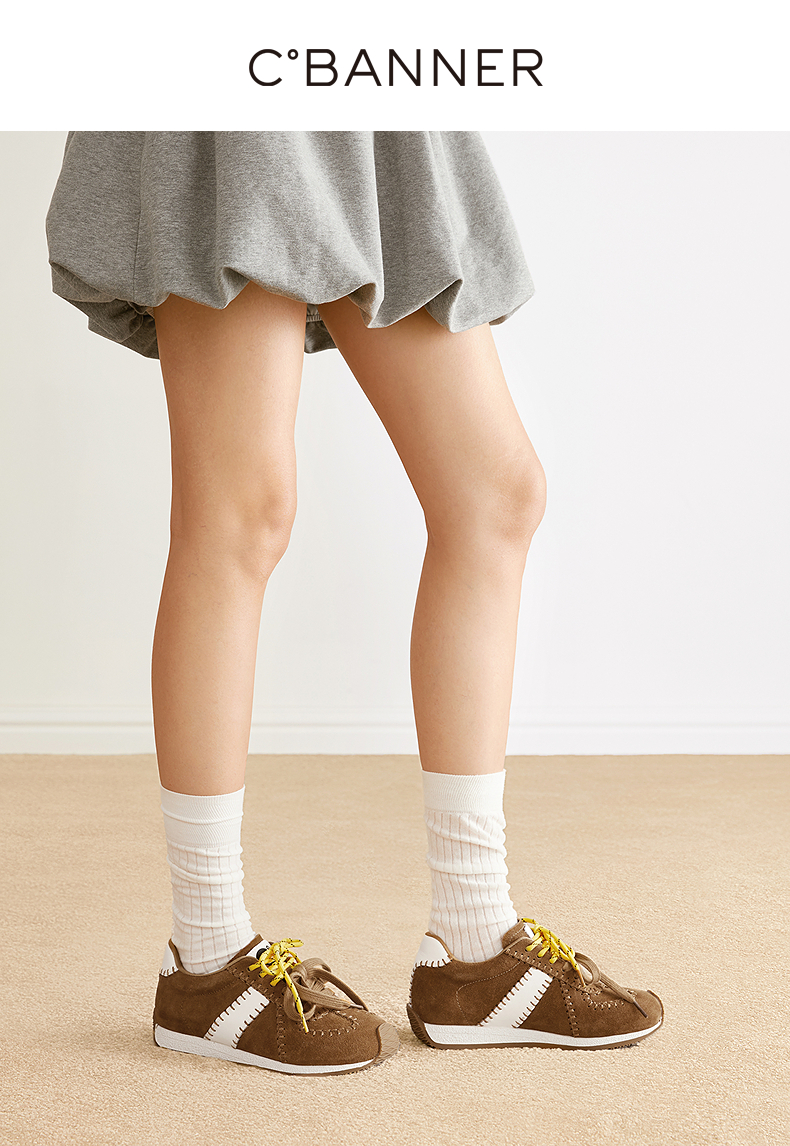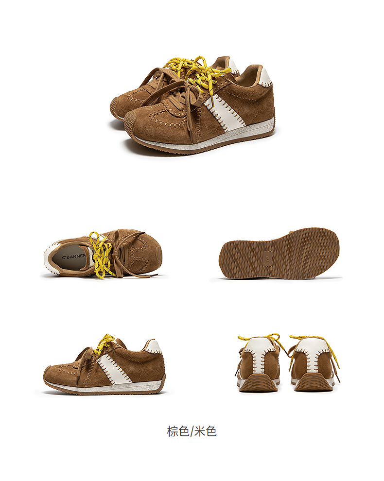 【上新】千百度复古双鞋带时尚休闲鞋女2026春季新款德训鞋运动鞋A26180721