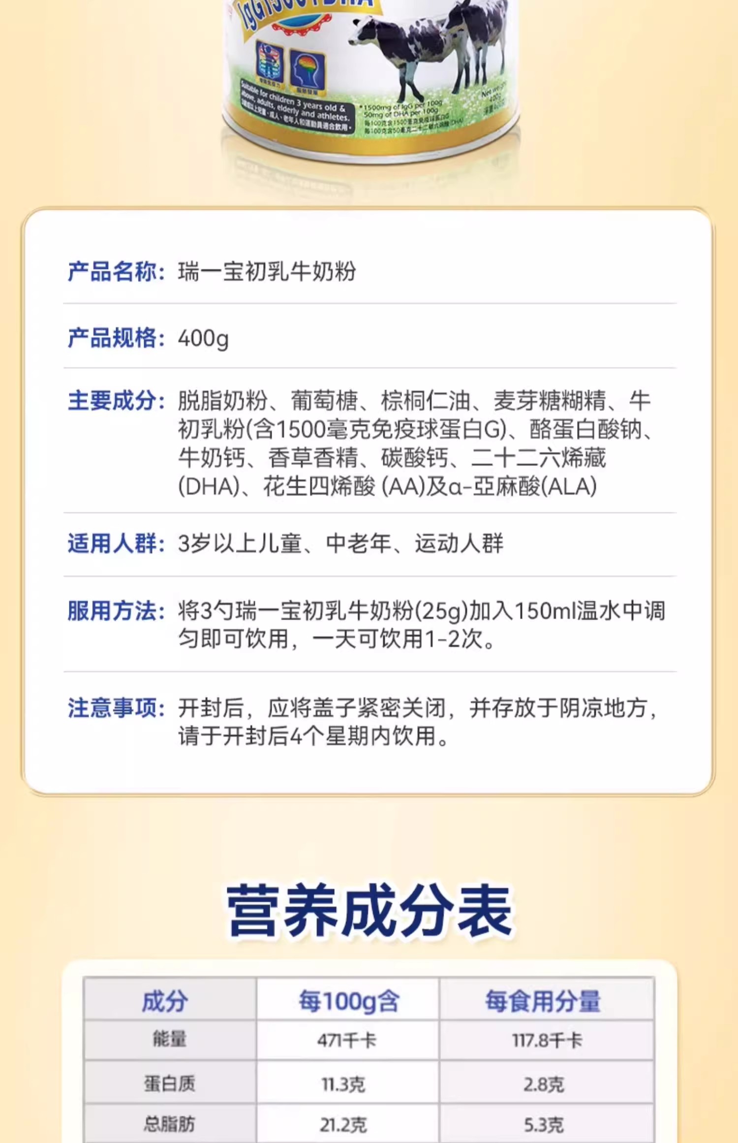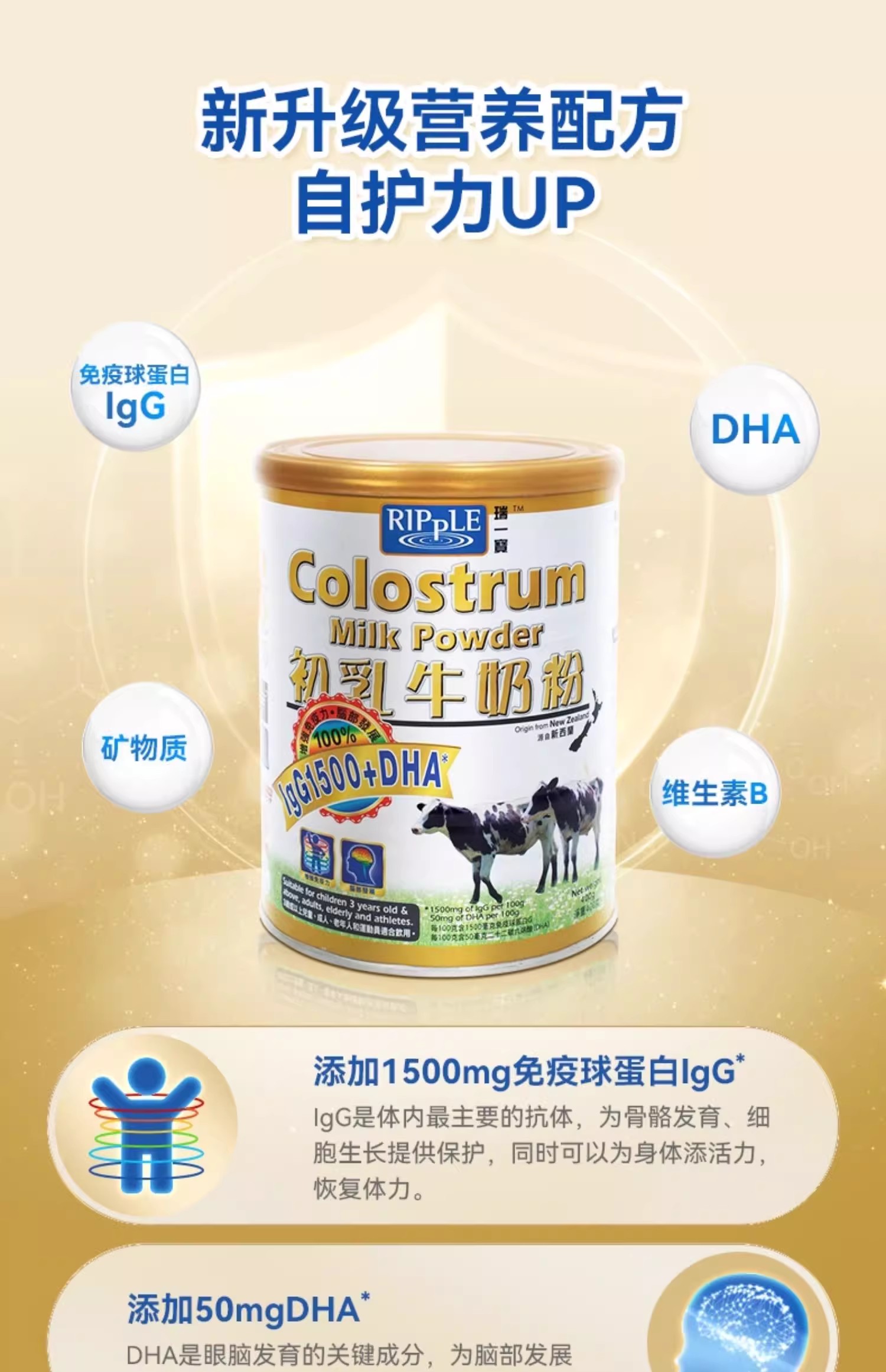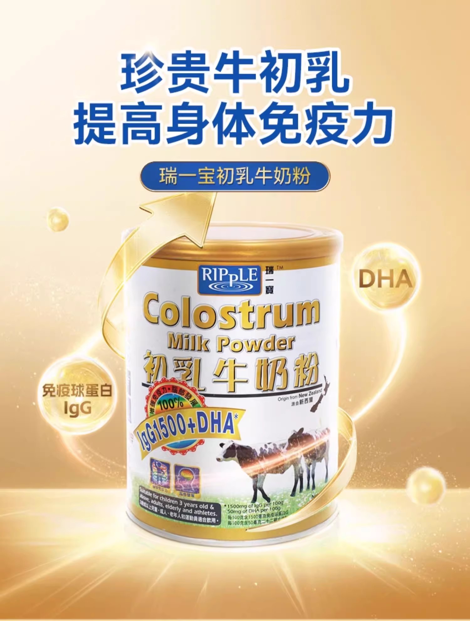 瑞一宝Ripple 牛初乳牛奶粉400g免疫球蛋白
