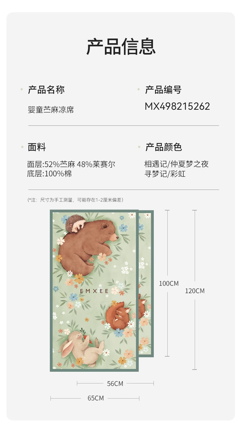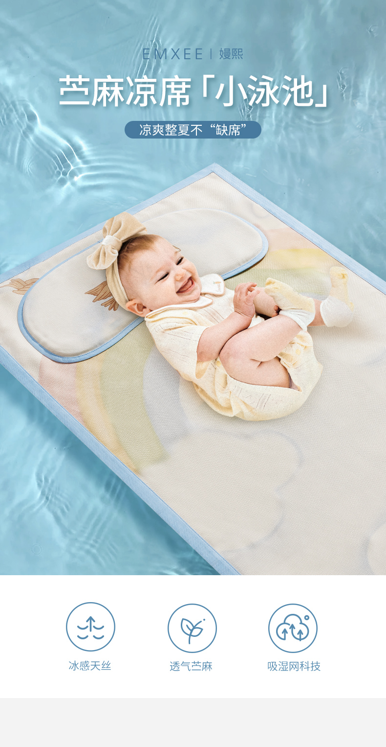 【夏日凉席】嫚熙婴儿凉席苎麻透气吸汗席子宝宝冰丝儿童床幼儿园凉席垫夏季