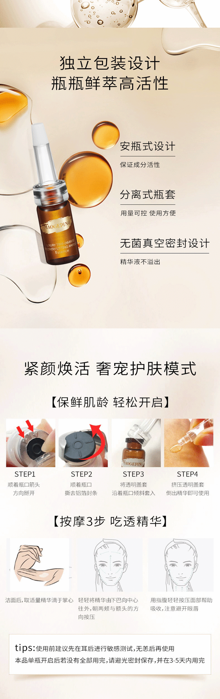 毛戈平奢华至臻紧颜安瓶精华补水保湿安瓶精华 5ml*10
