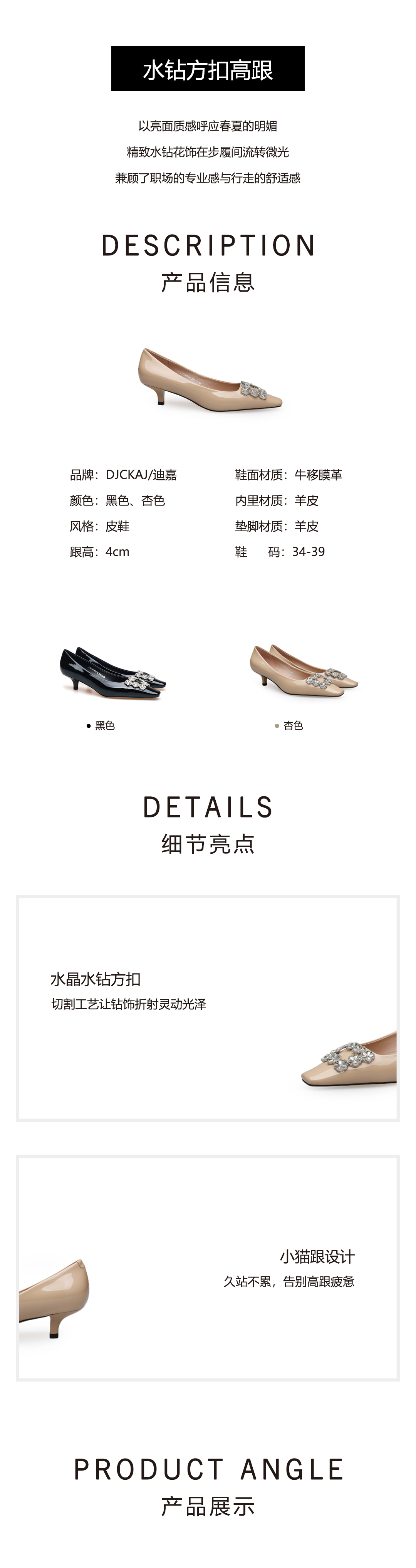 豪麟名鞋迪嘉女鞋皮鞋牛移膜革DJHJA61WP018黑色