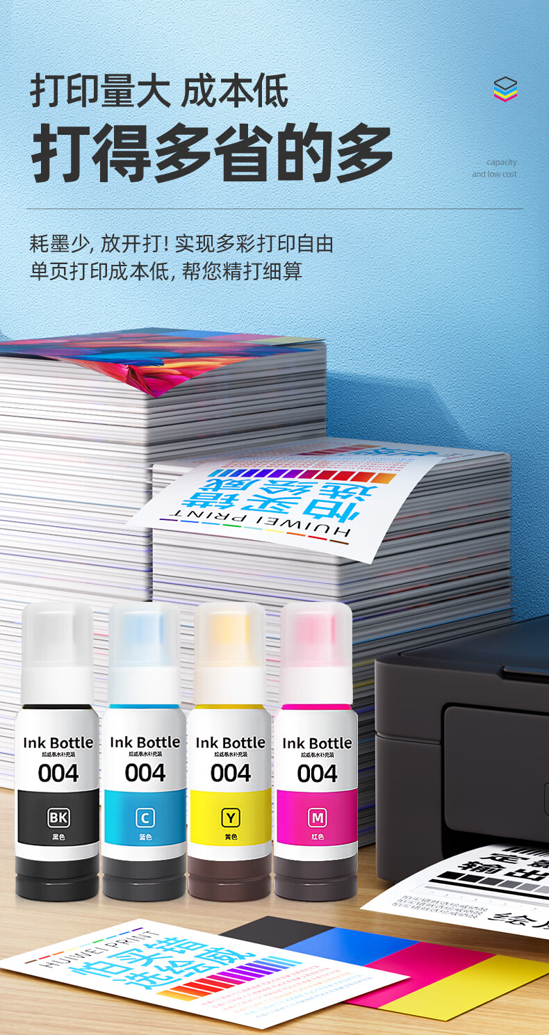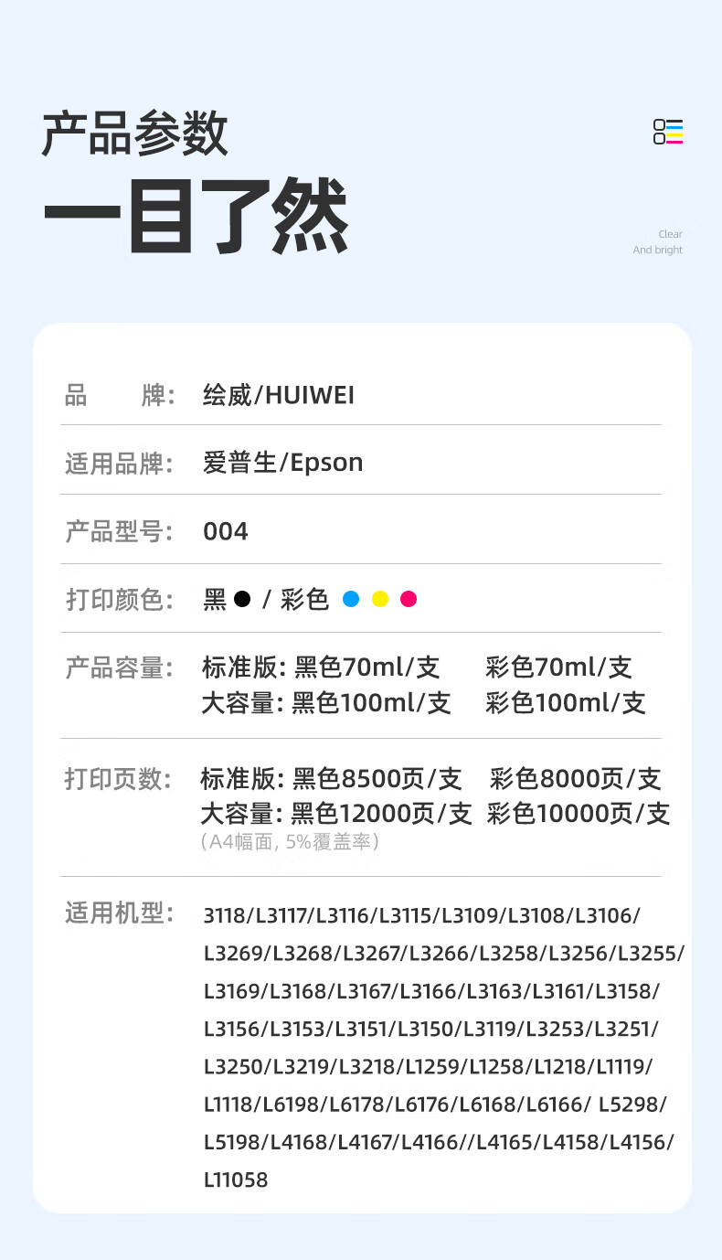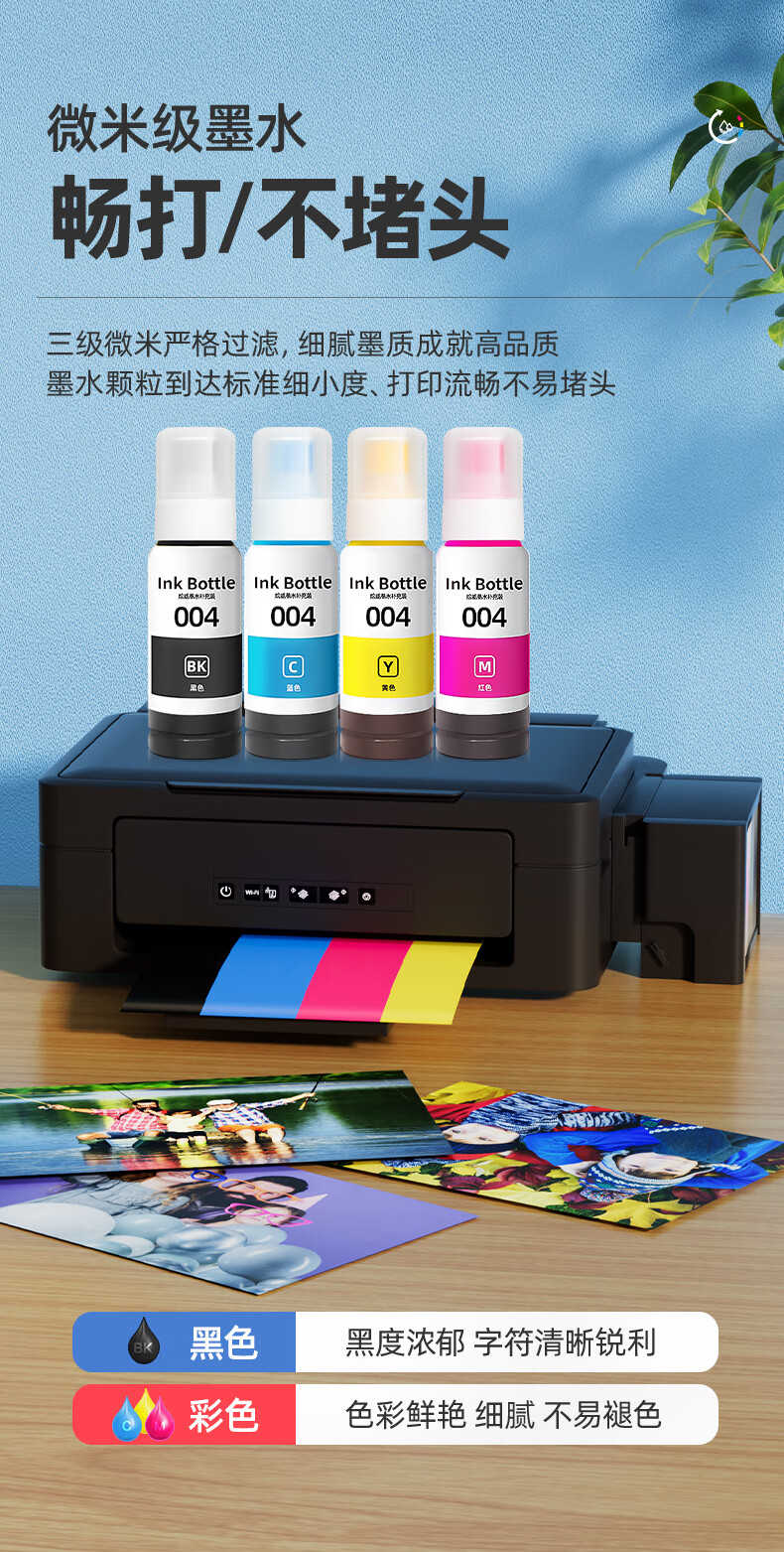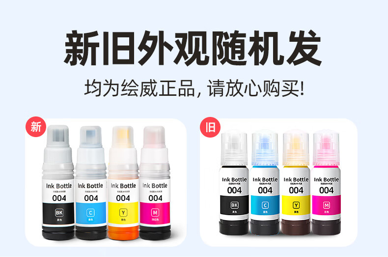 绘威适用爱普生004墨水L3251 L3258 L3255 L3153 L3118 L3158 3151 3156 3119 3256 1258打印机墨水 四色套装
