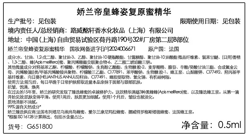 娇兰 帝皇蜂姿复原蜜精华50ml 紧致修护抗皱