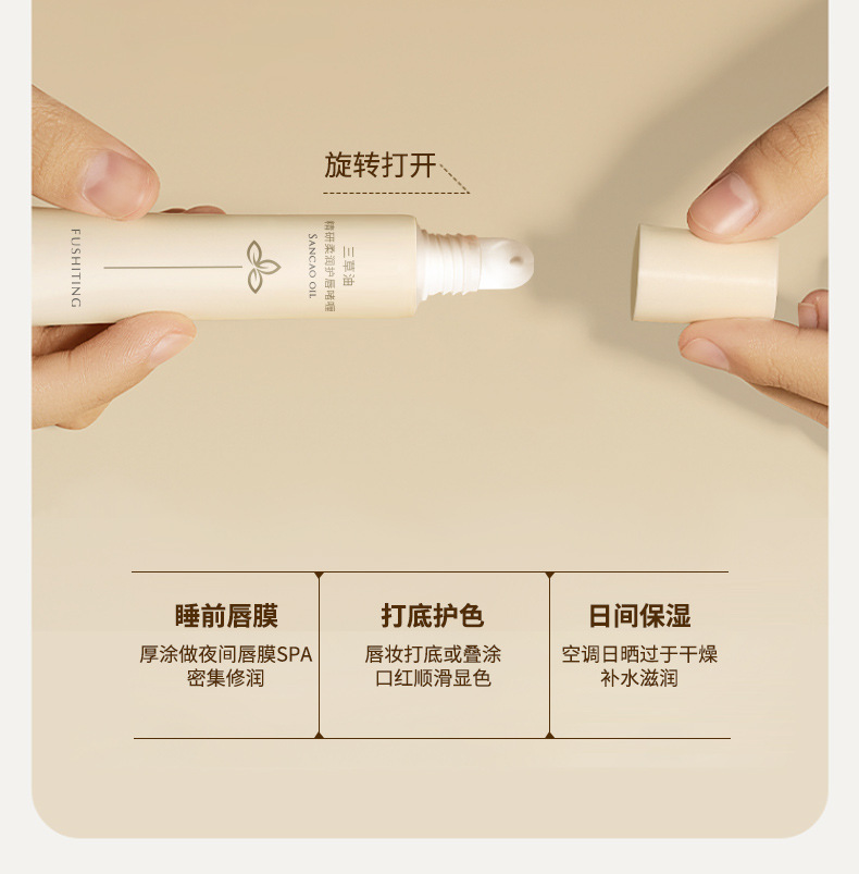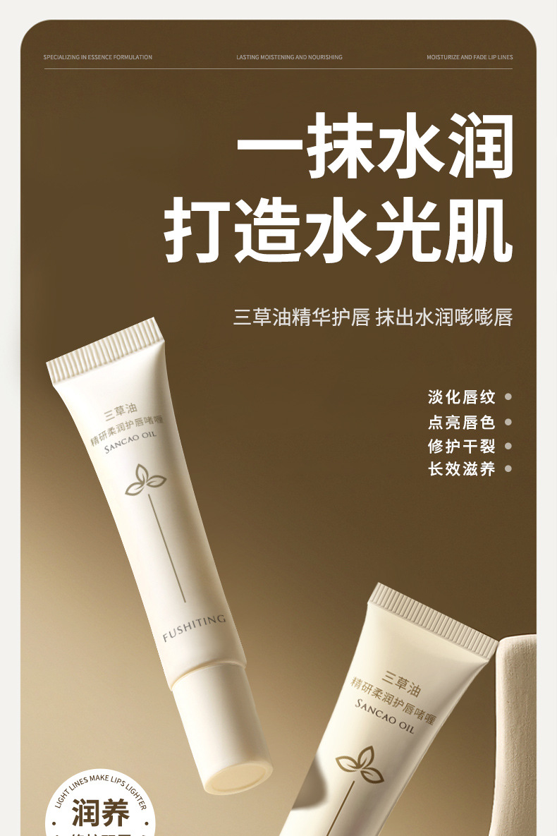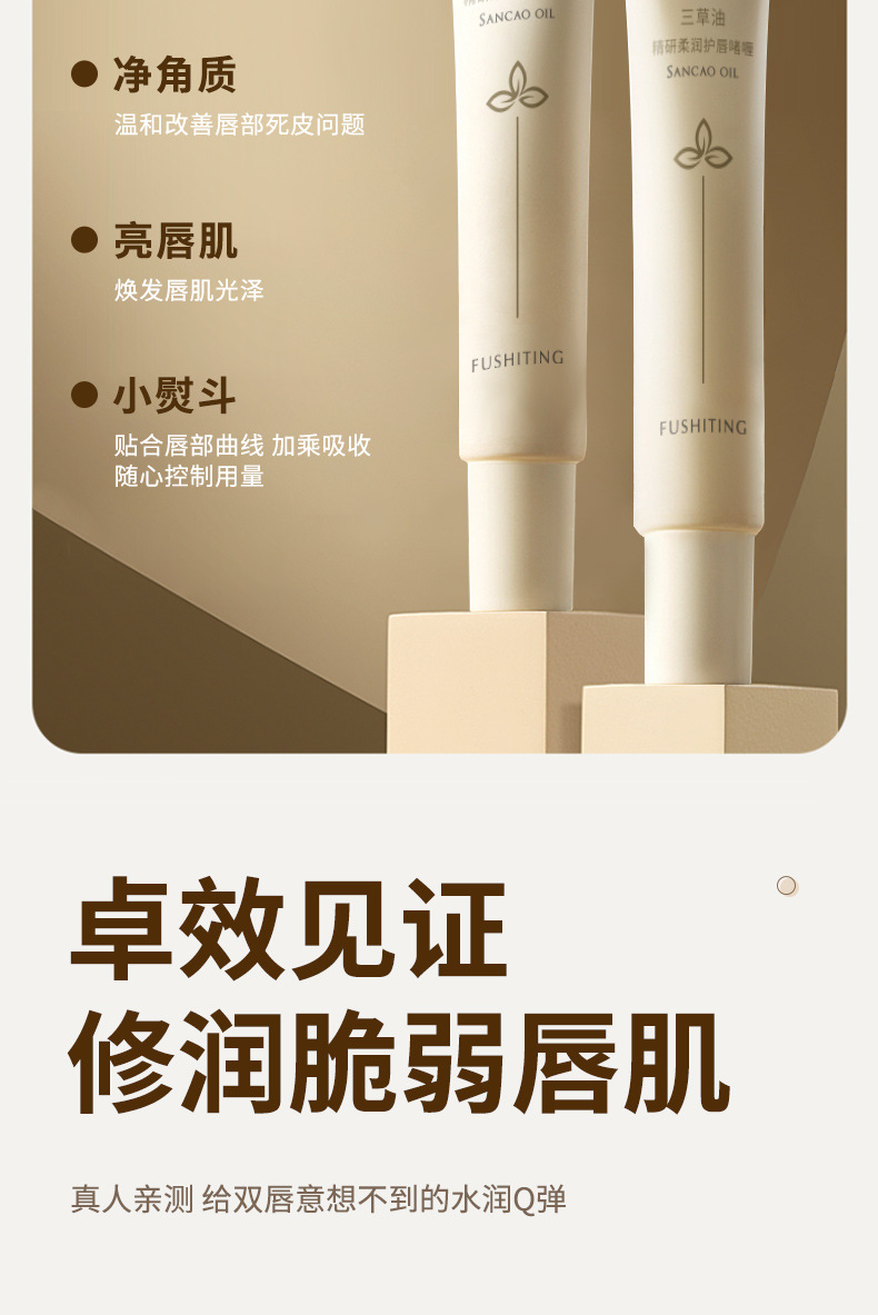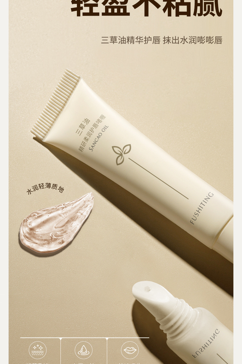 【深修护!拍2支巨划算!】芙诗婷三草油精研柔润护唇啫喱 淡纹唇纹改善死皮护唇膏 唇油