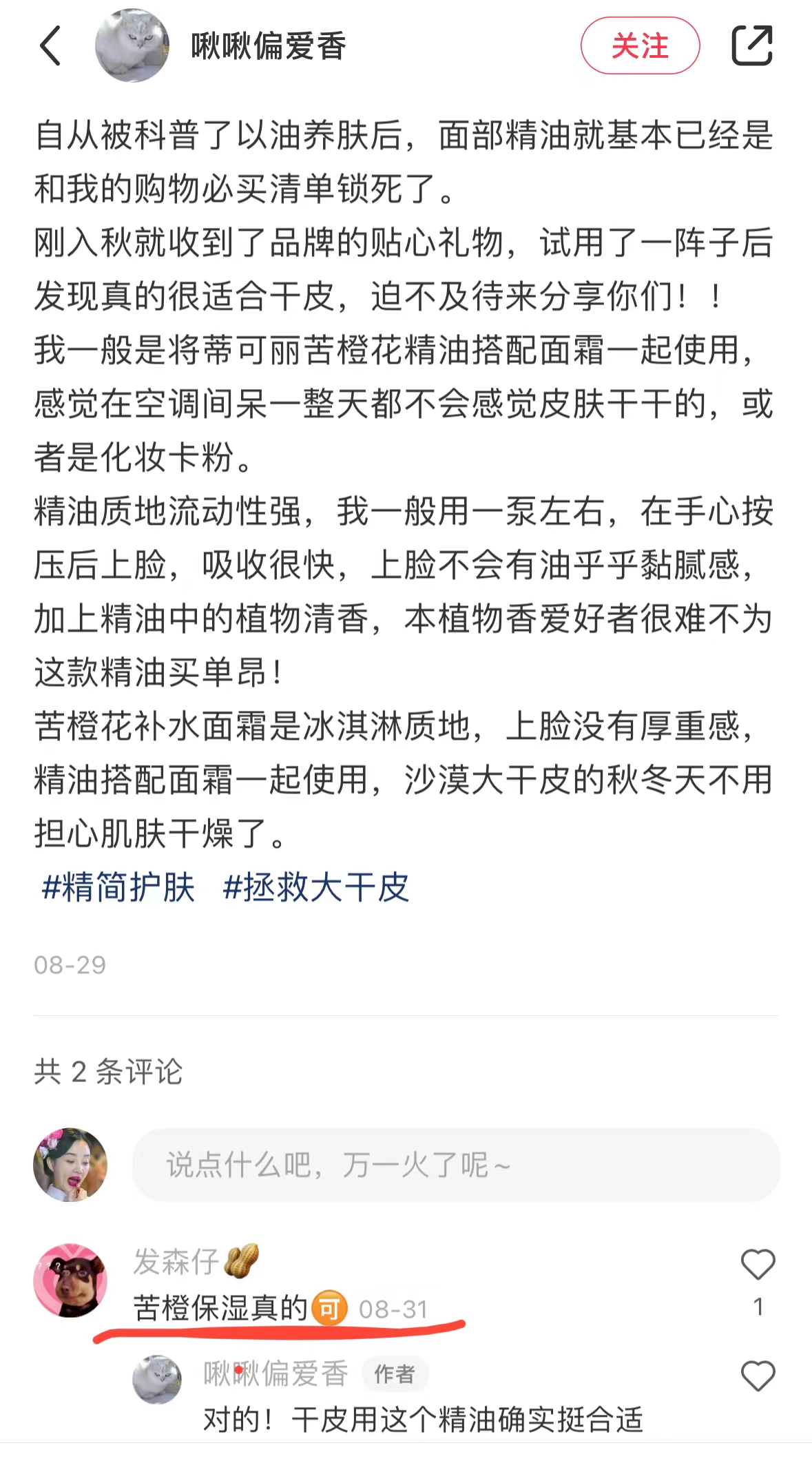如苦橙花瓣轻轻拂过,推开后沁盈水润,