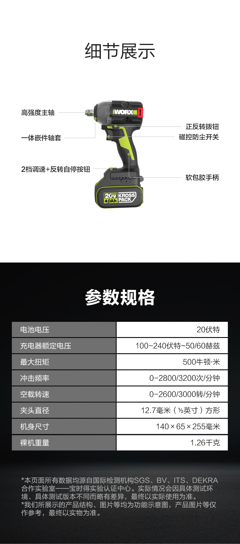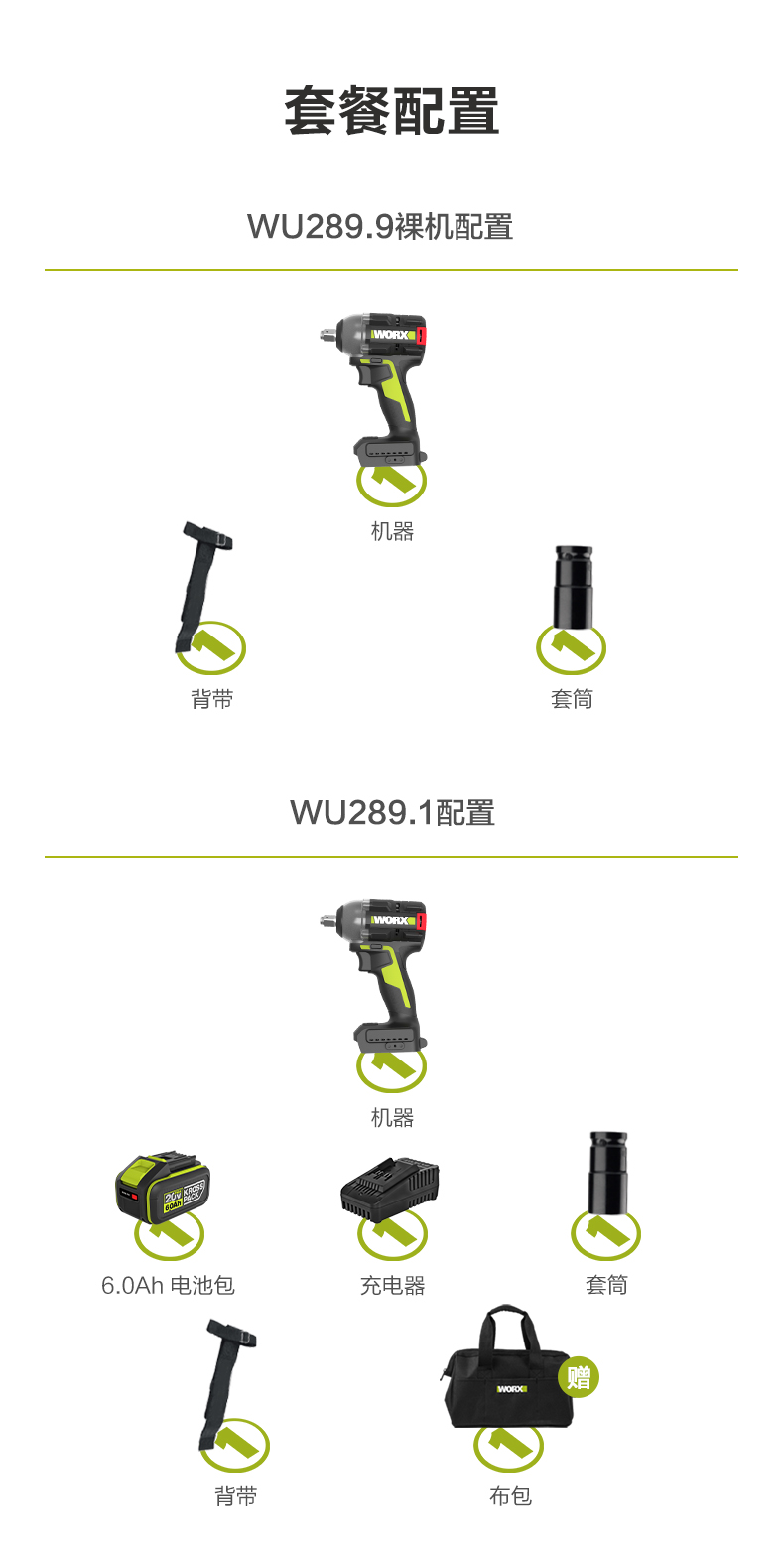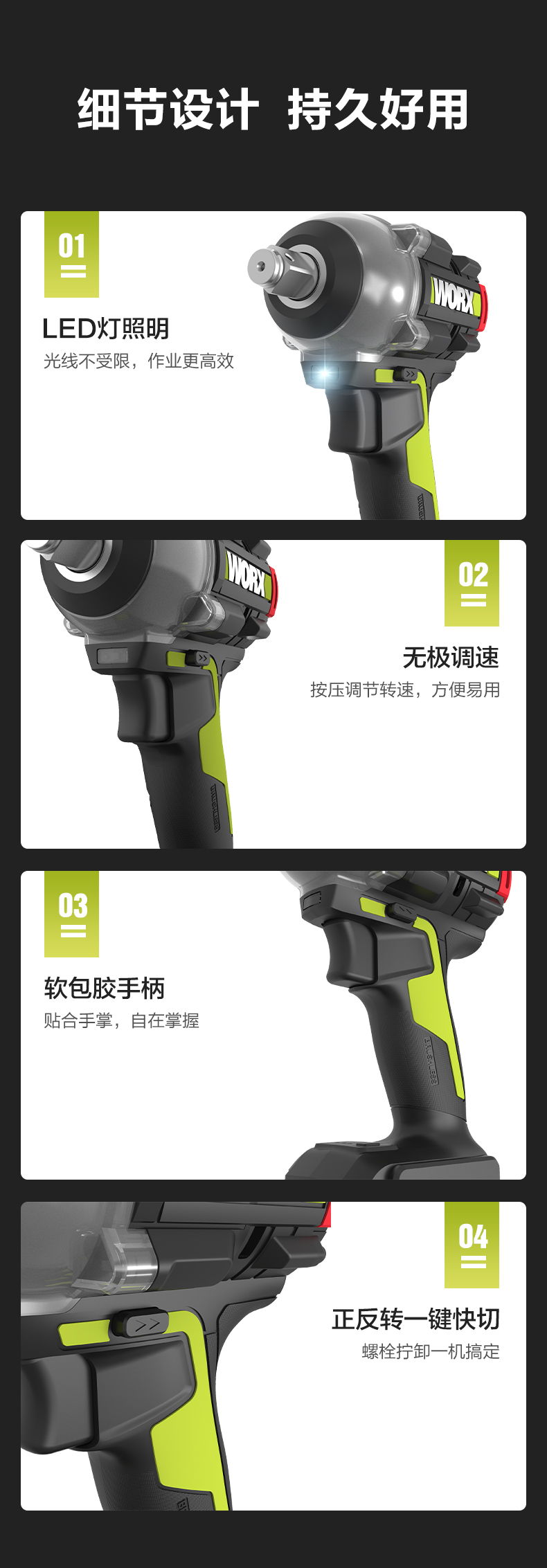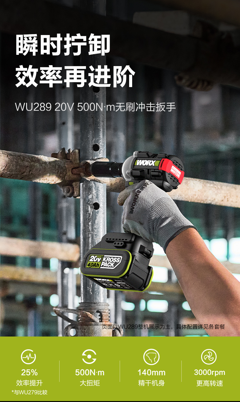 威克士电动冲击扳手WU289大扭力风炮锂电汽修架子工电板手