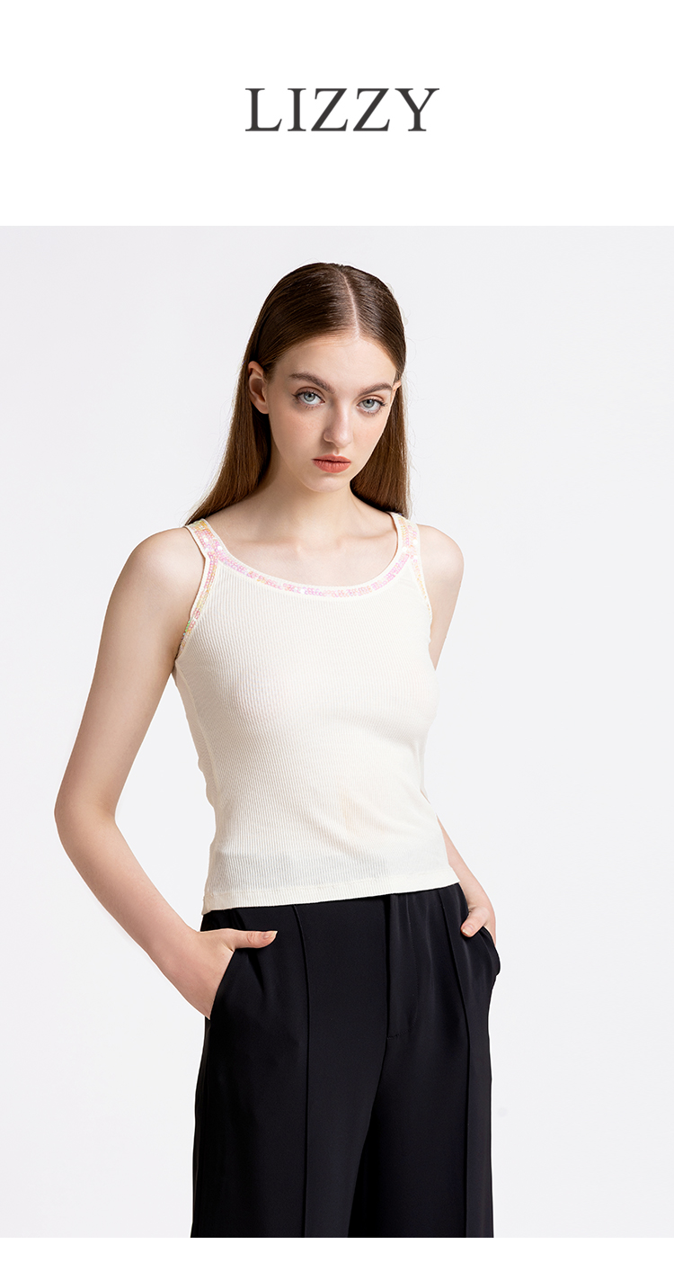 LIZZY 女士吊带打底衫修身内搭钉珠背心3781