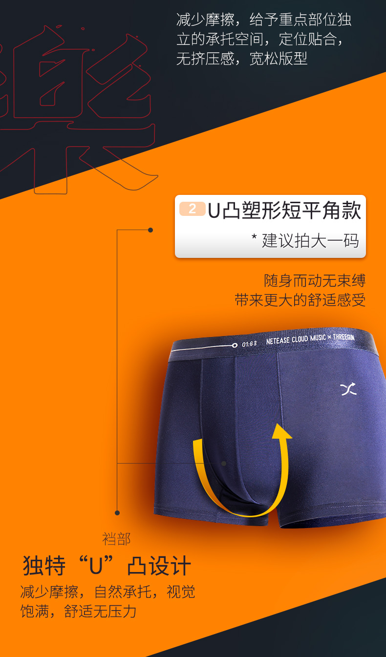 Threegun三枪 细柔莫代尔U凸版明根男短平脚裤 (3枚装)-50583B021