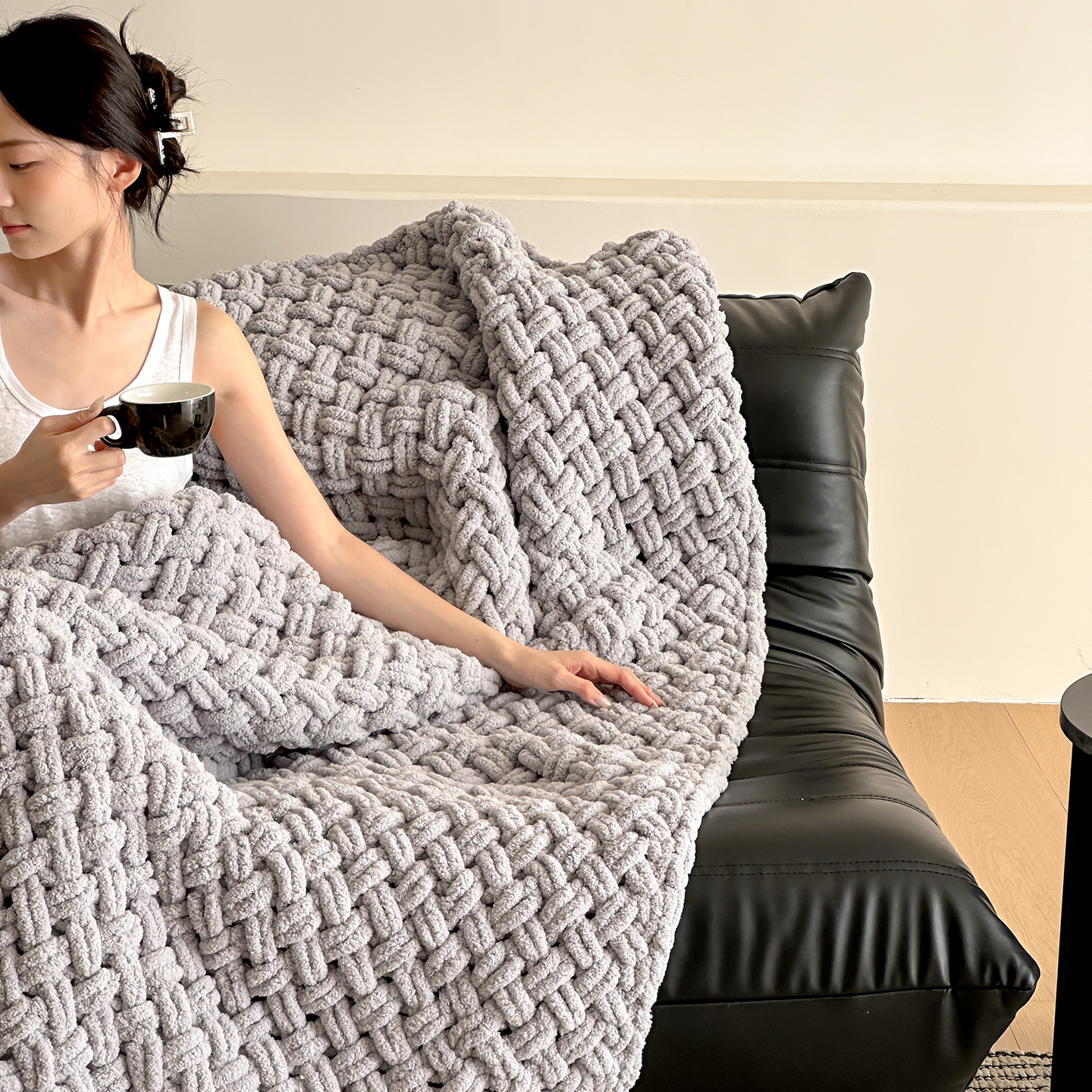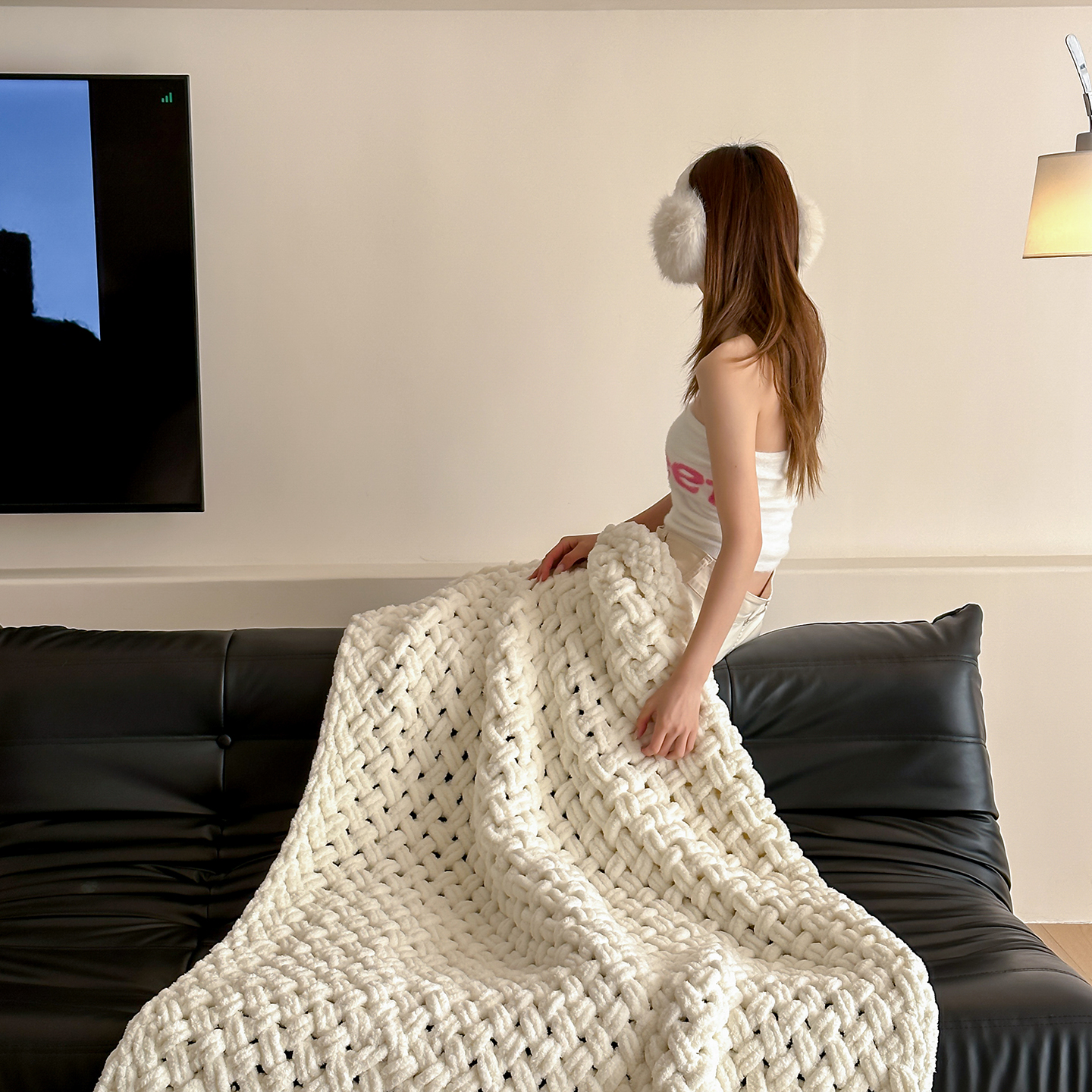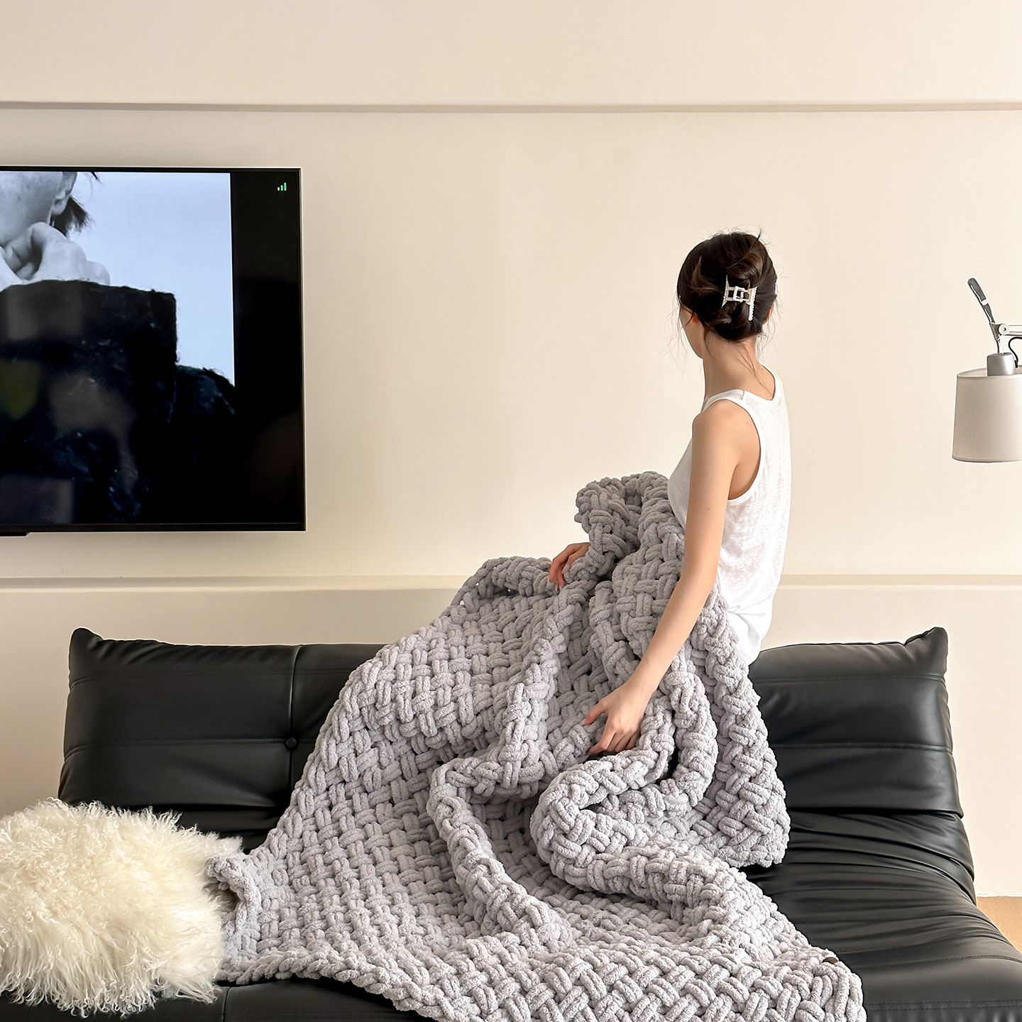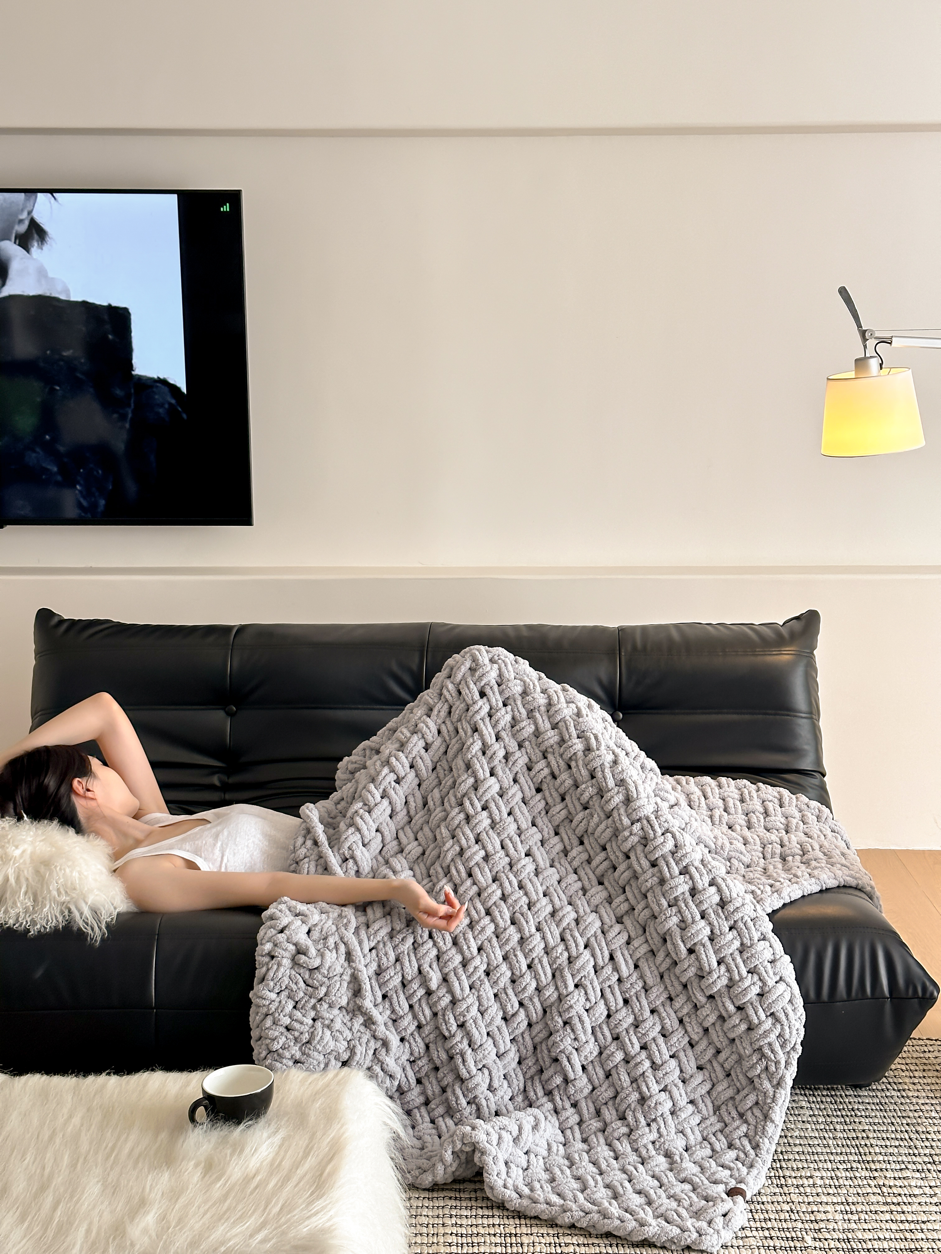 【双旦秒杀】自然醒ins粗针半边绒手工沙发毯床尾毯家居毛毯MT(不参与优惠券)