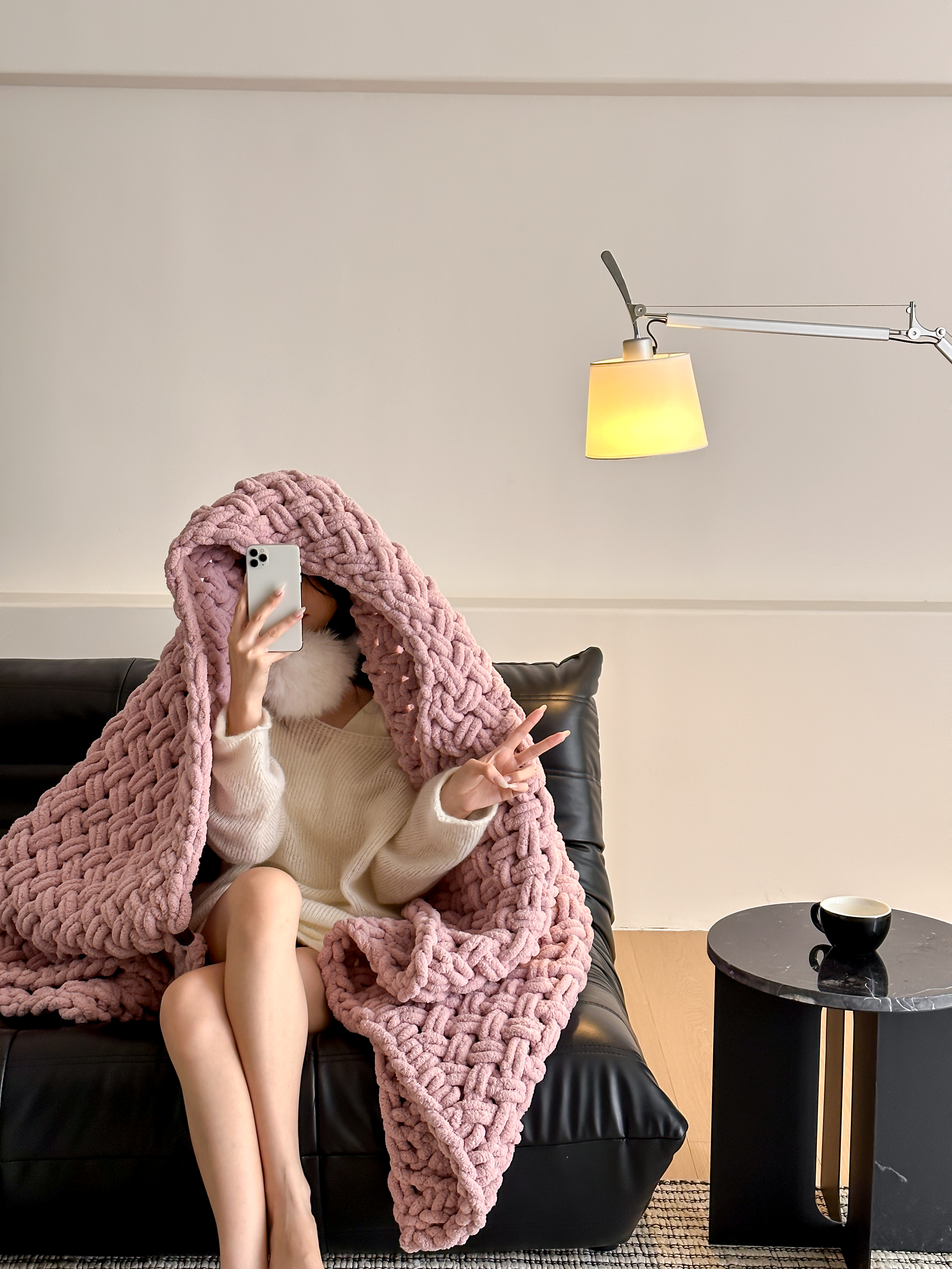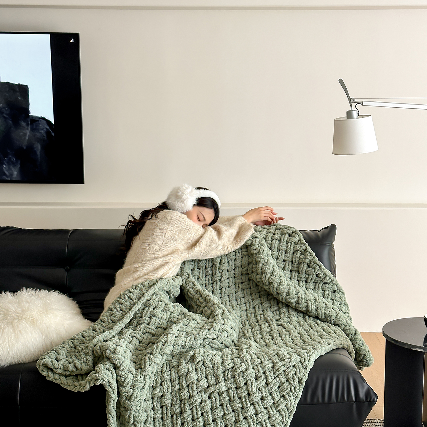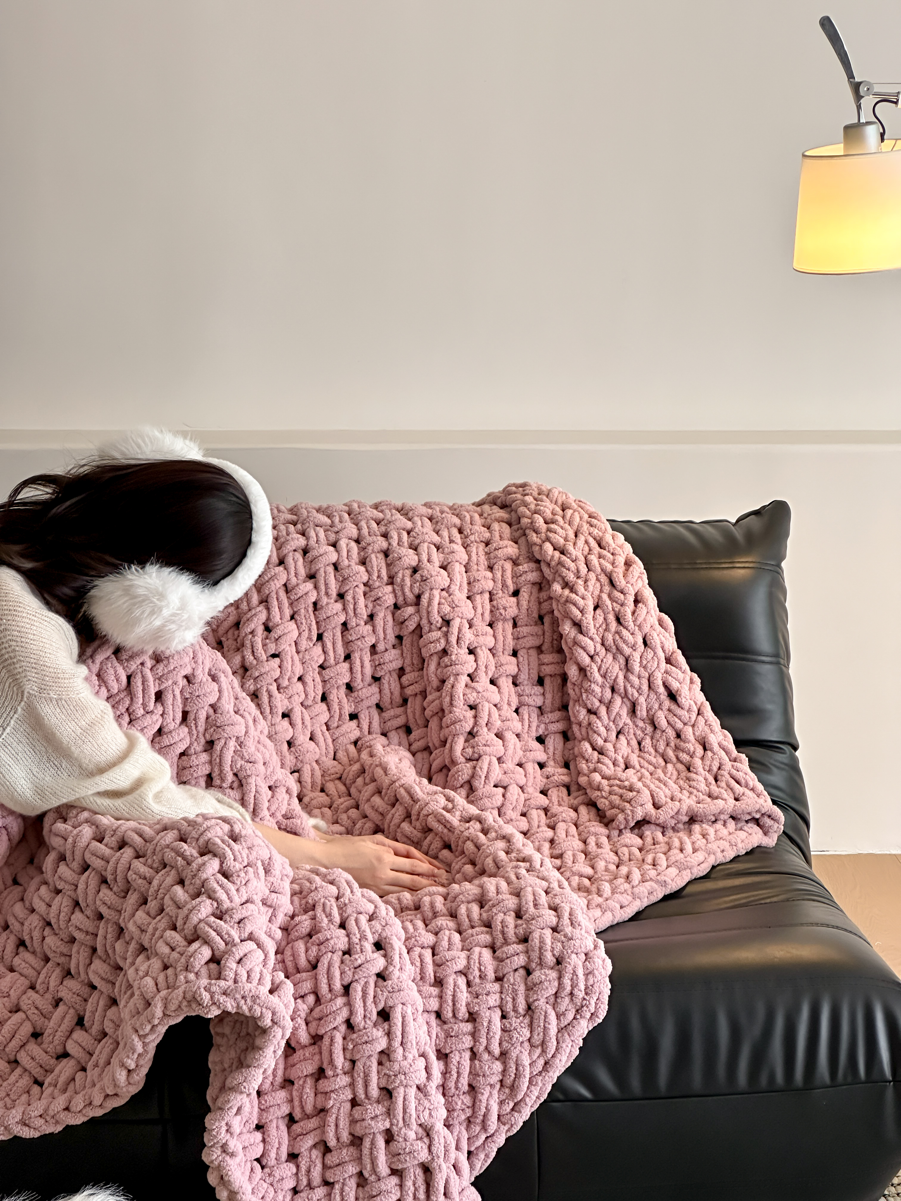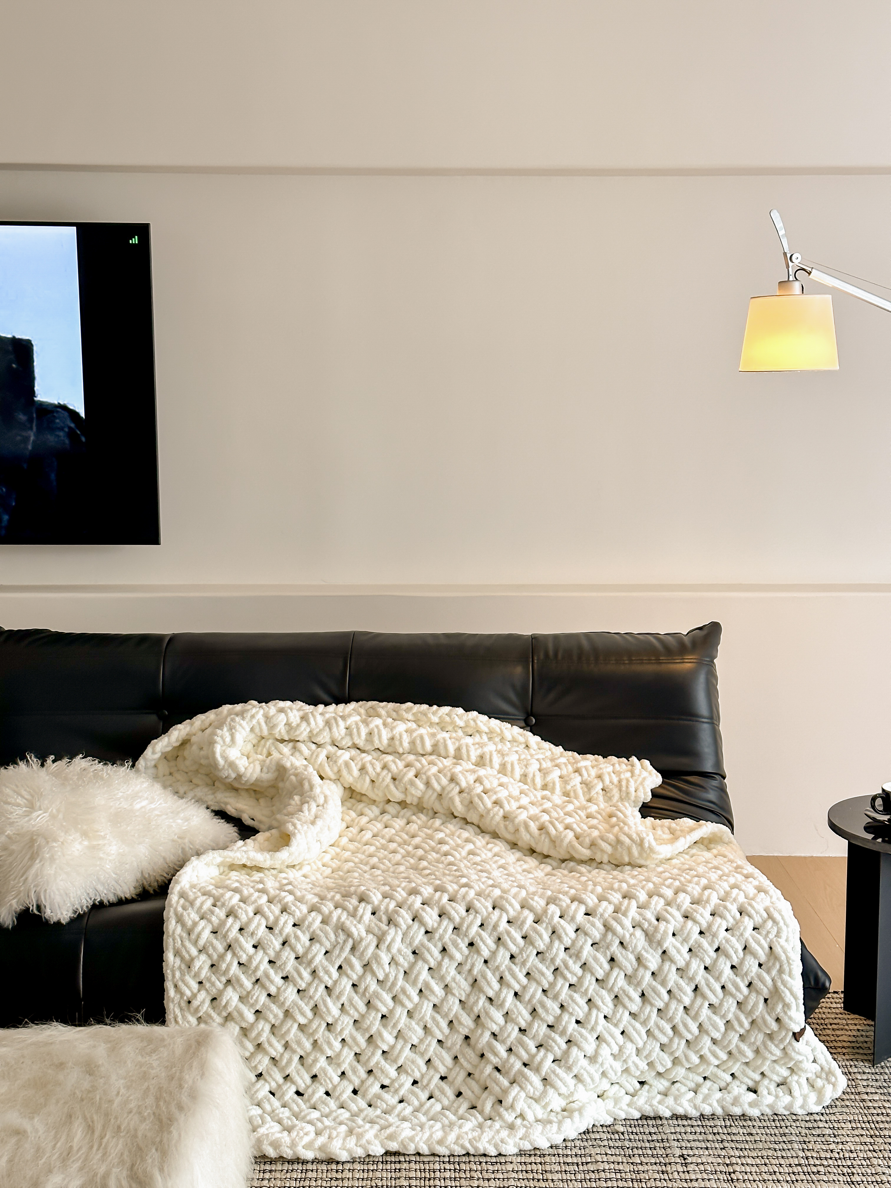 秋冬▪️ins粗针半边绒手工沙发毯床尾毯家居毛毯