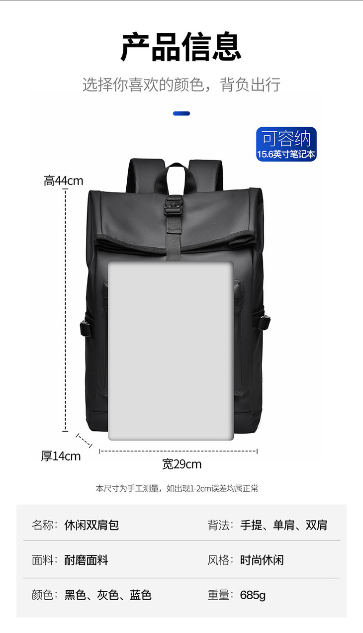 新款时尚男双肩包商务通勤笔记本电脑包户外旅行轻便背包