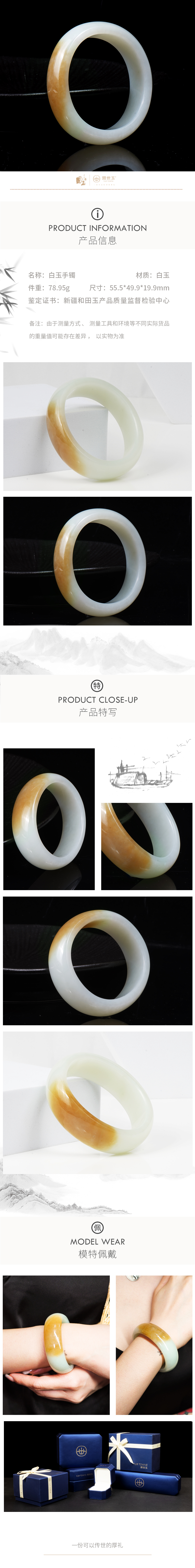 新疆国玉盟世玉和田玉白玉手镯圈口52.7【带证书·顺丰物流】