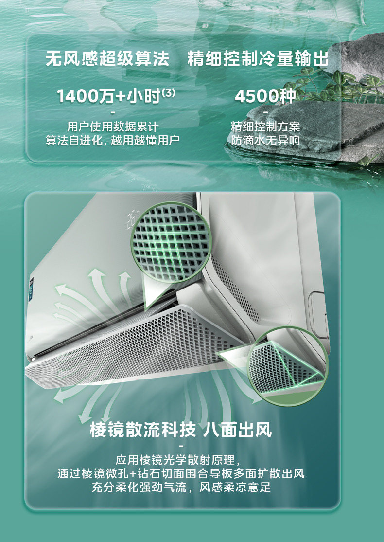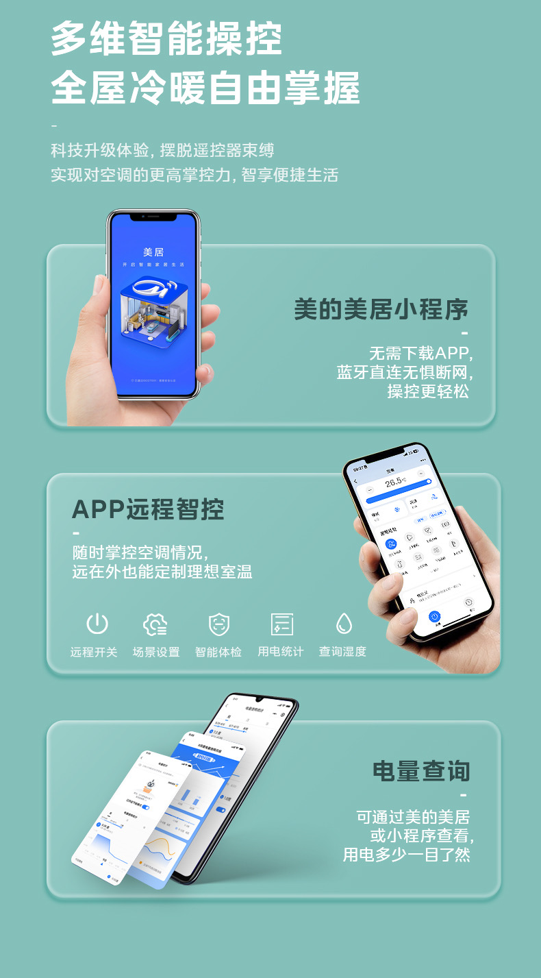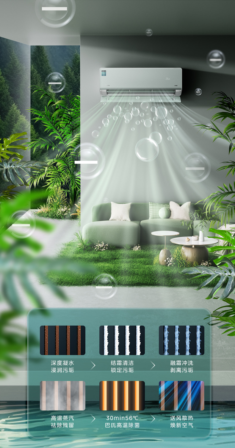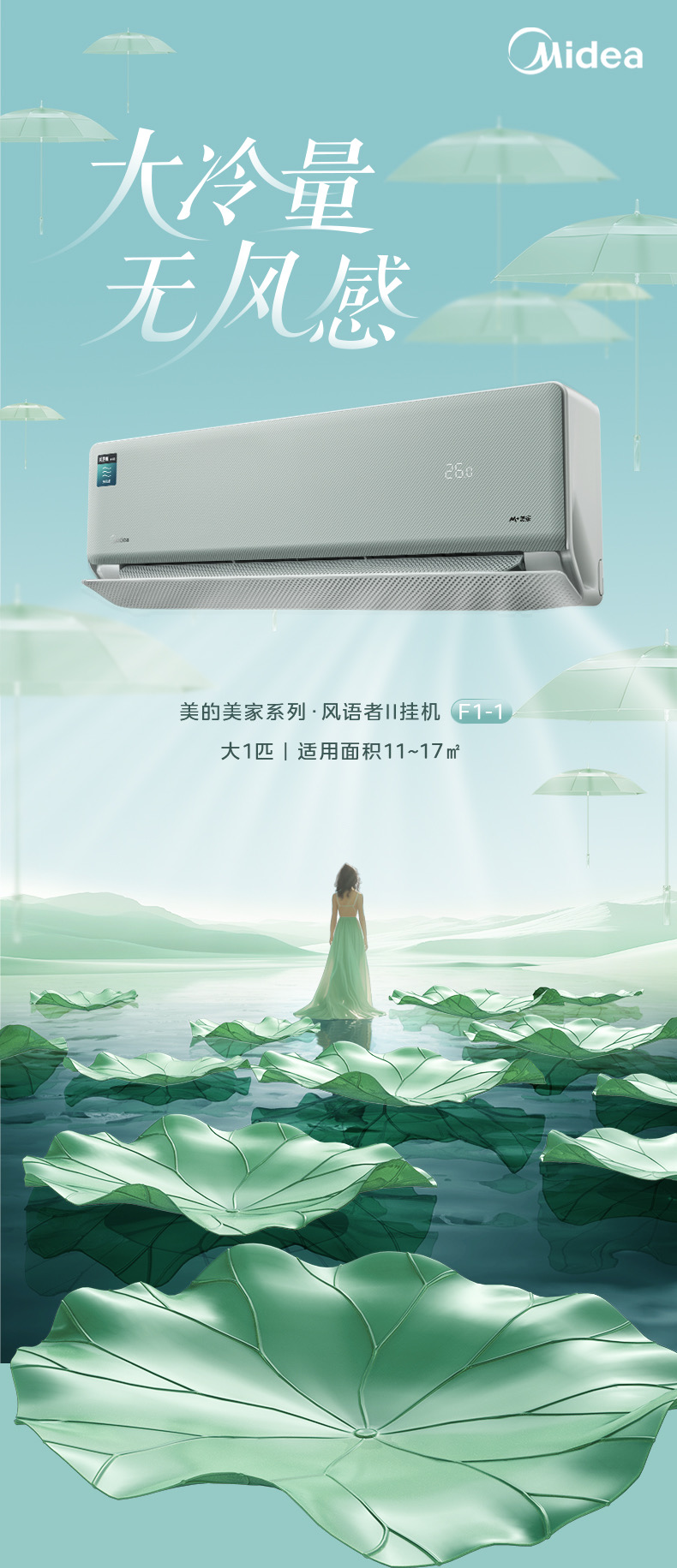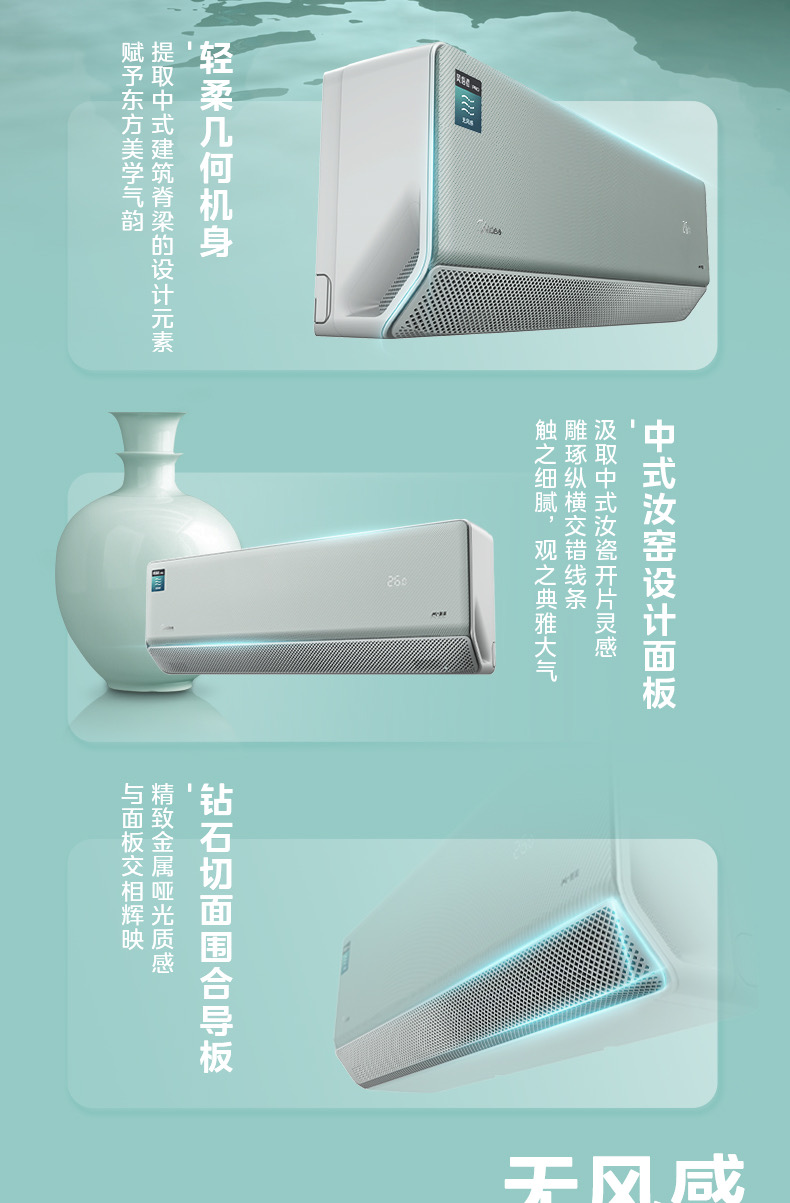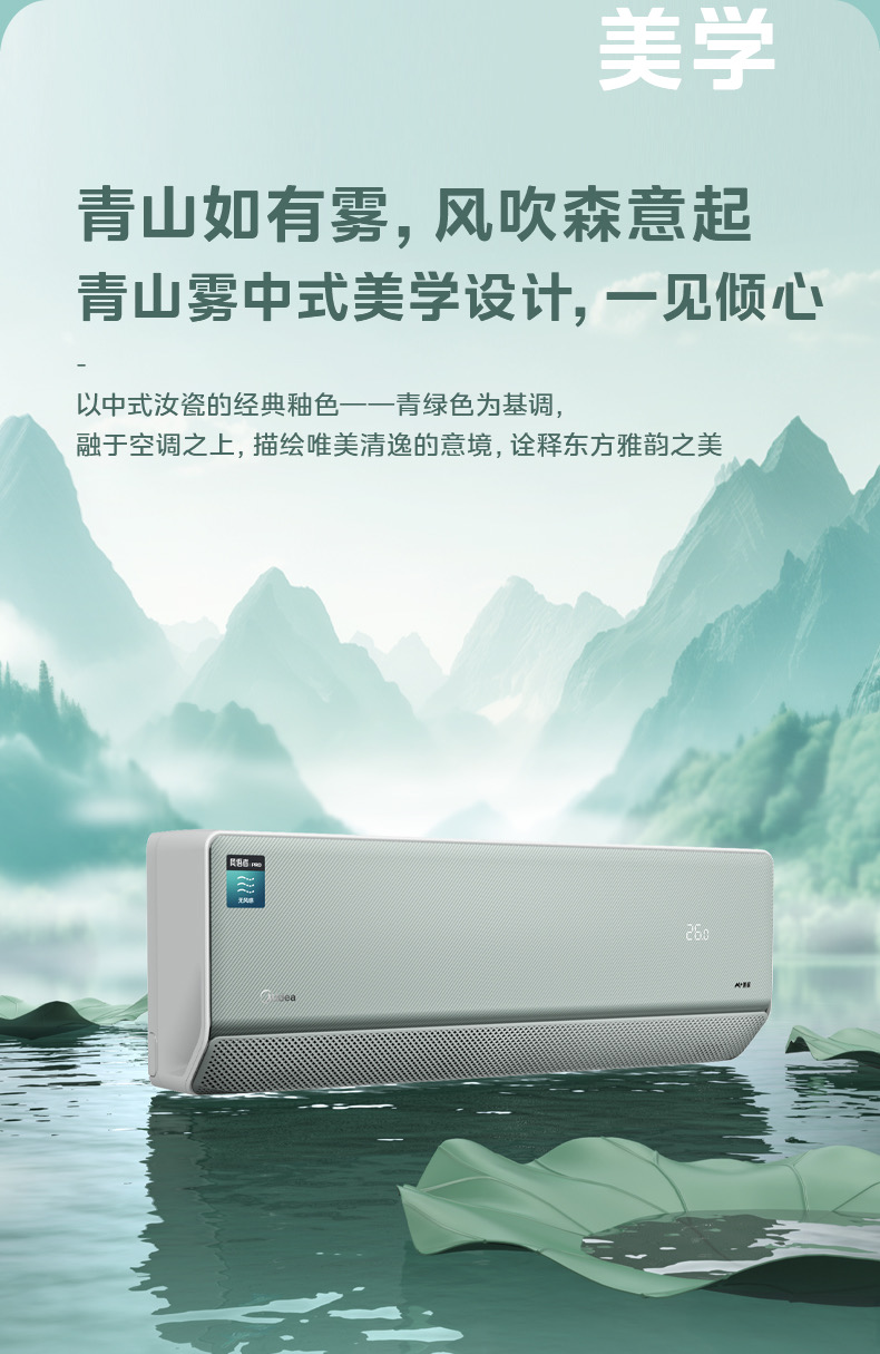 美的空调风语者2代变频一级能效大1匹/1.5匹 F1-1 变频 分体套机 青山雾 美的