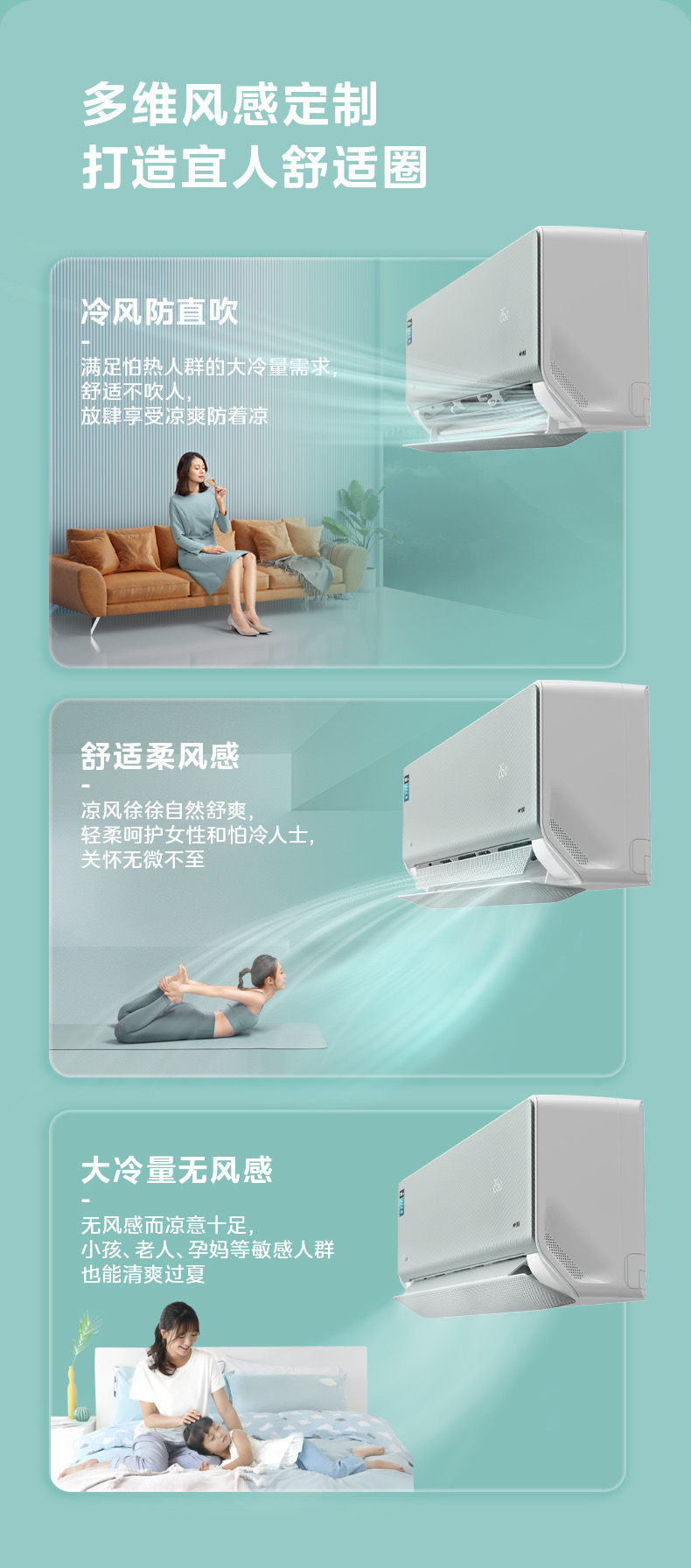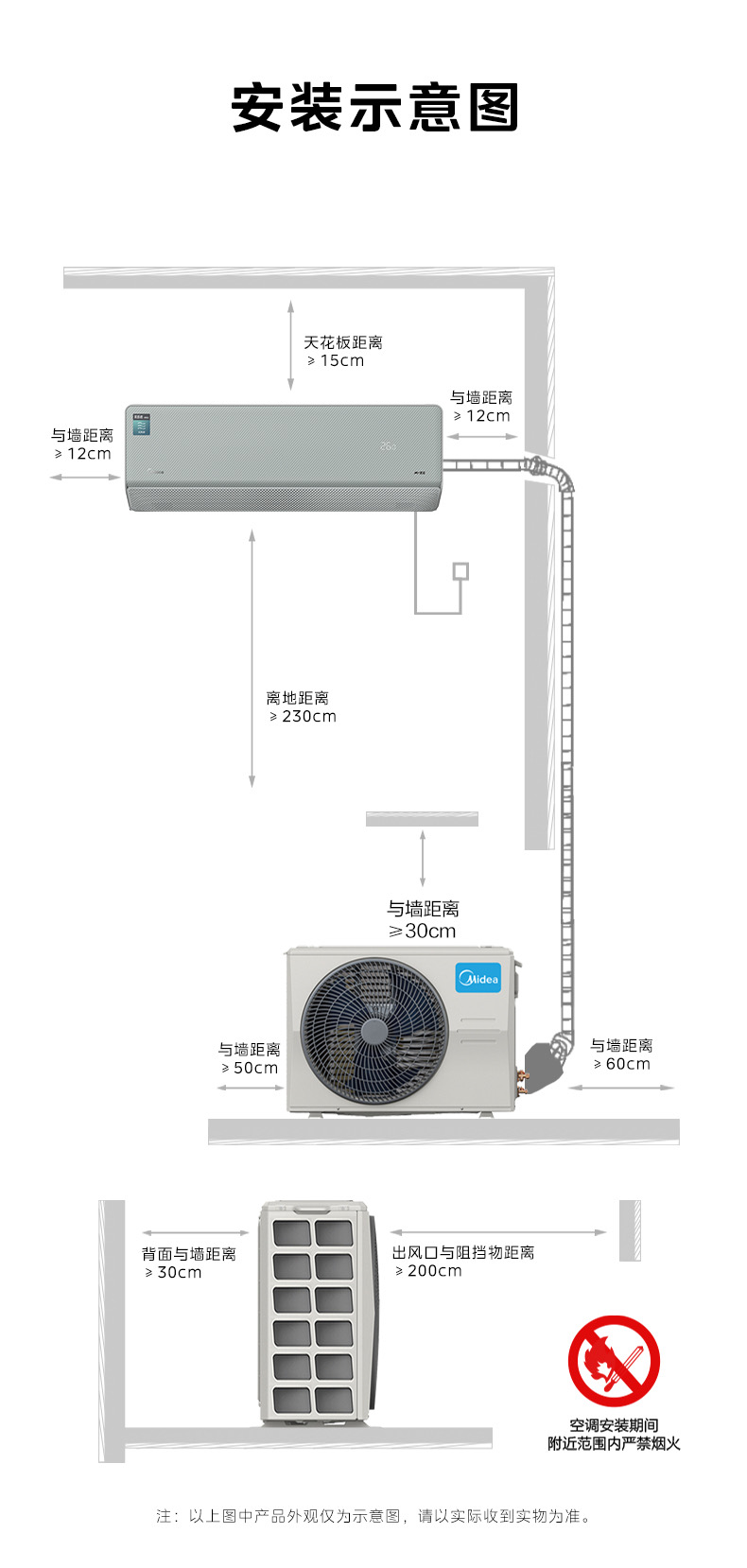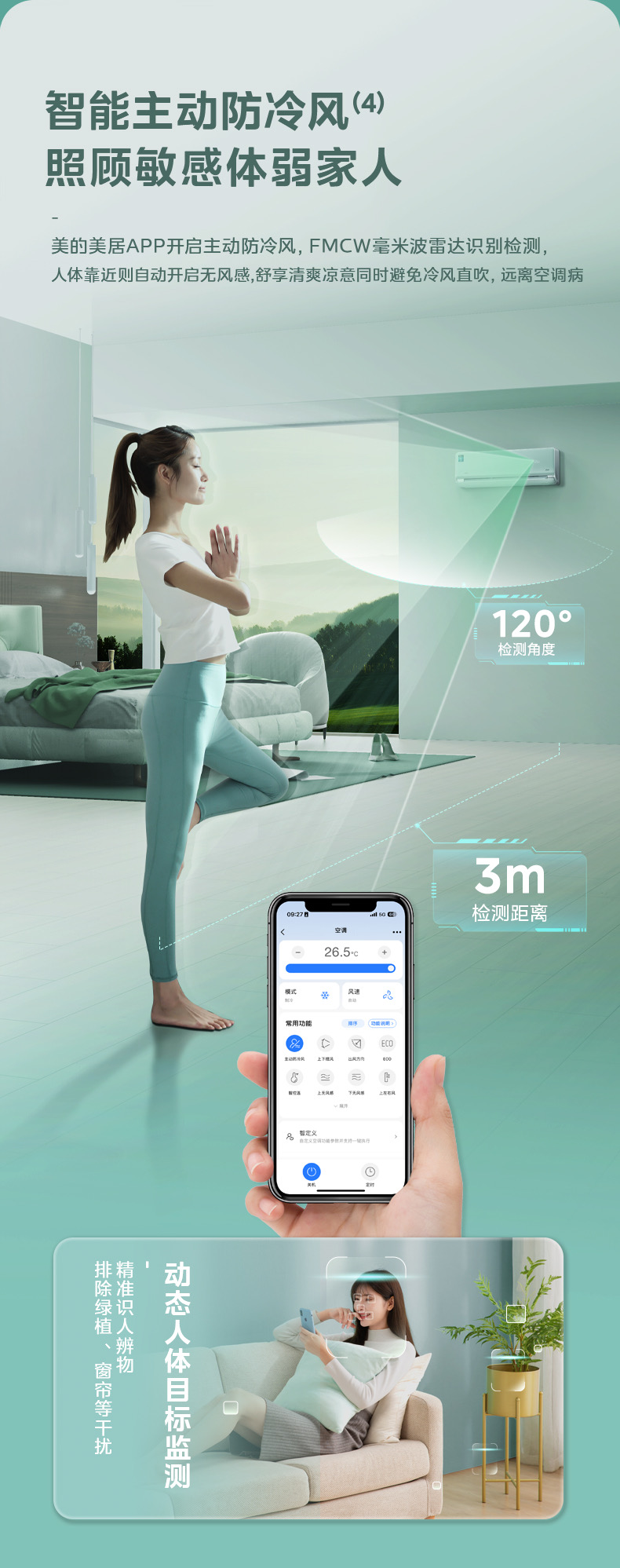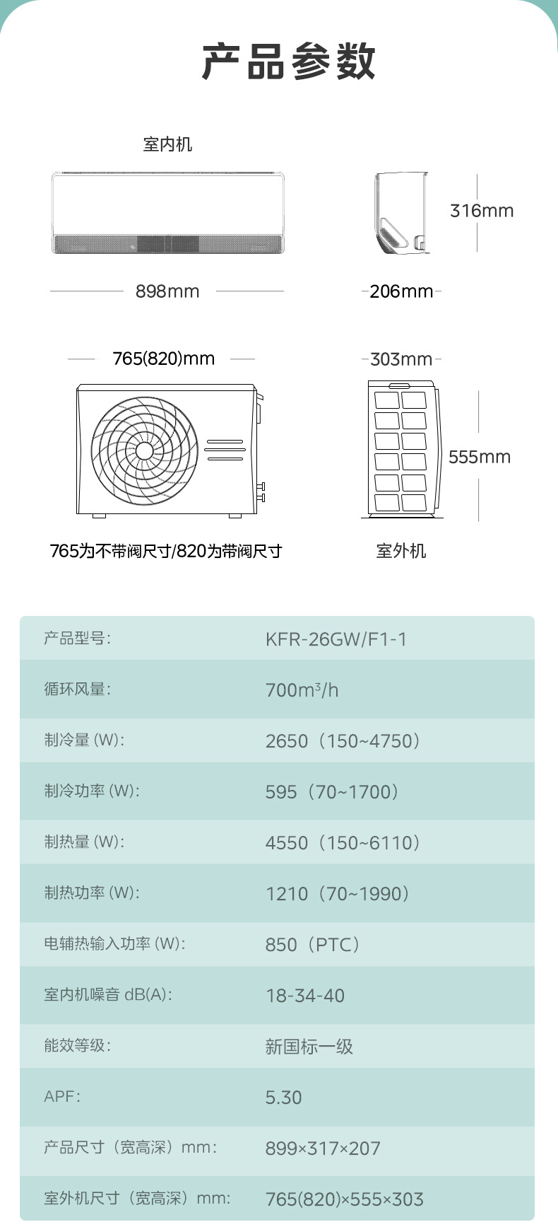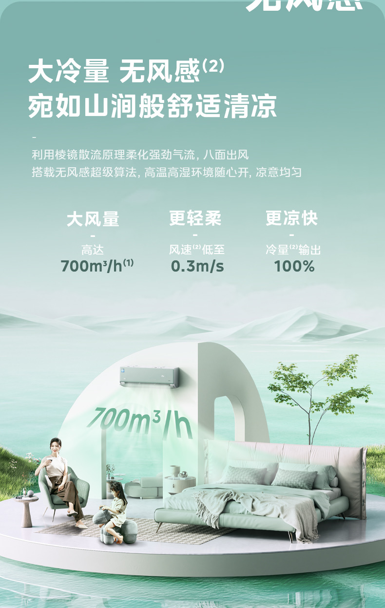 美的空调风语者2代变频一级能效大1匹/1.5匹 F1-1 变频 分体套机 青山雾 美的