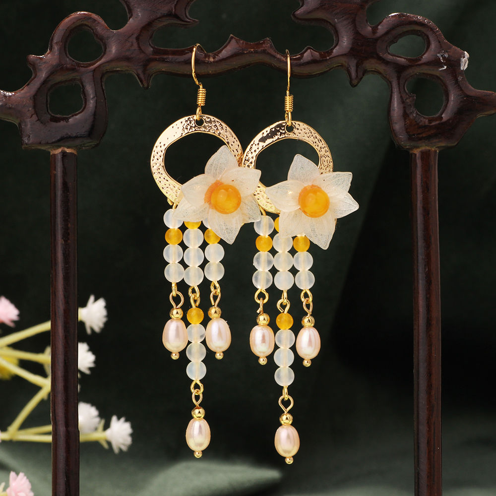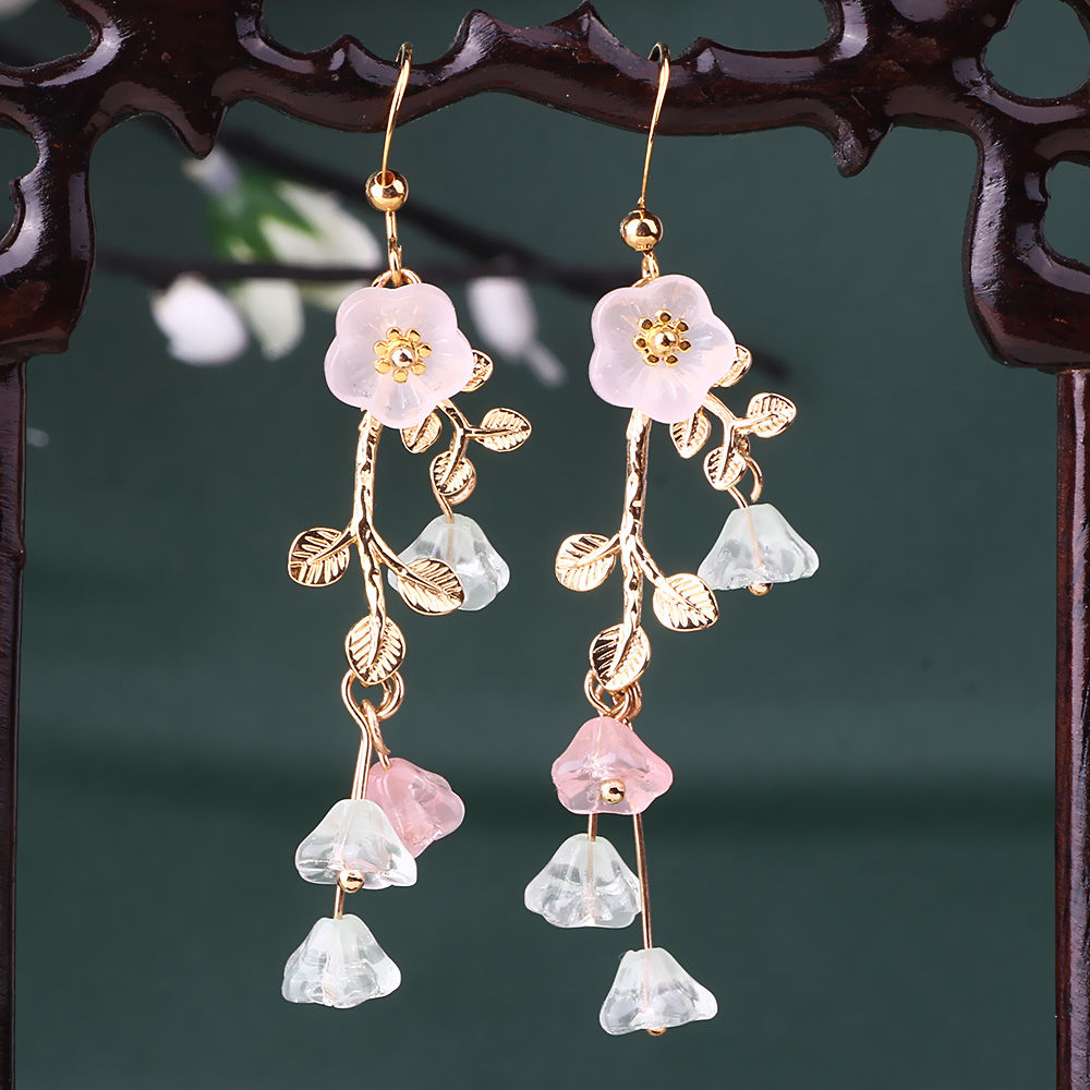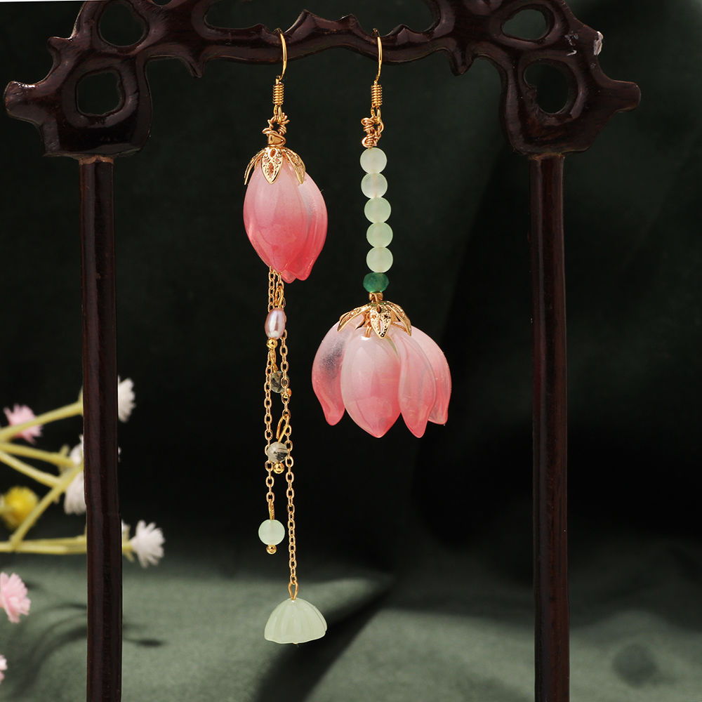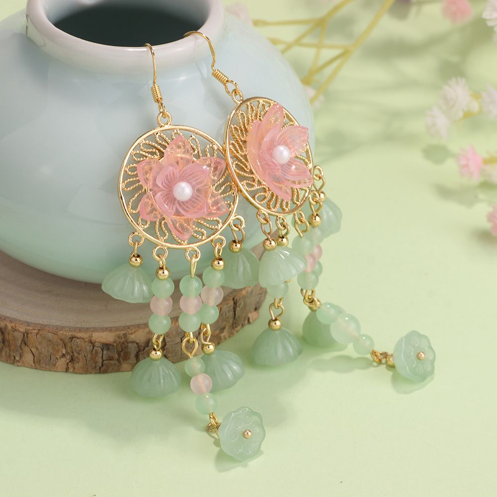 超仙古风十二花神耳环女长款流苏汉服耳坠荷花桃花国风耳饰耳夹