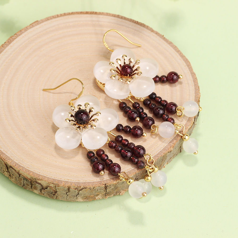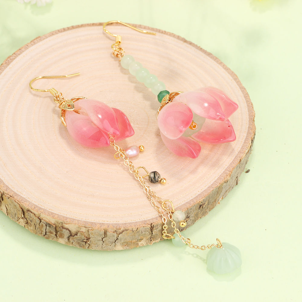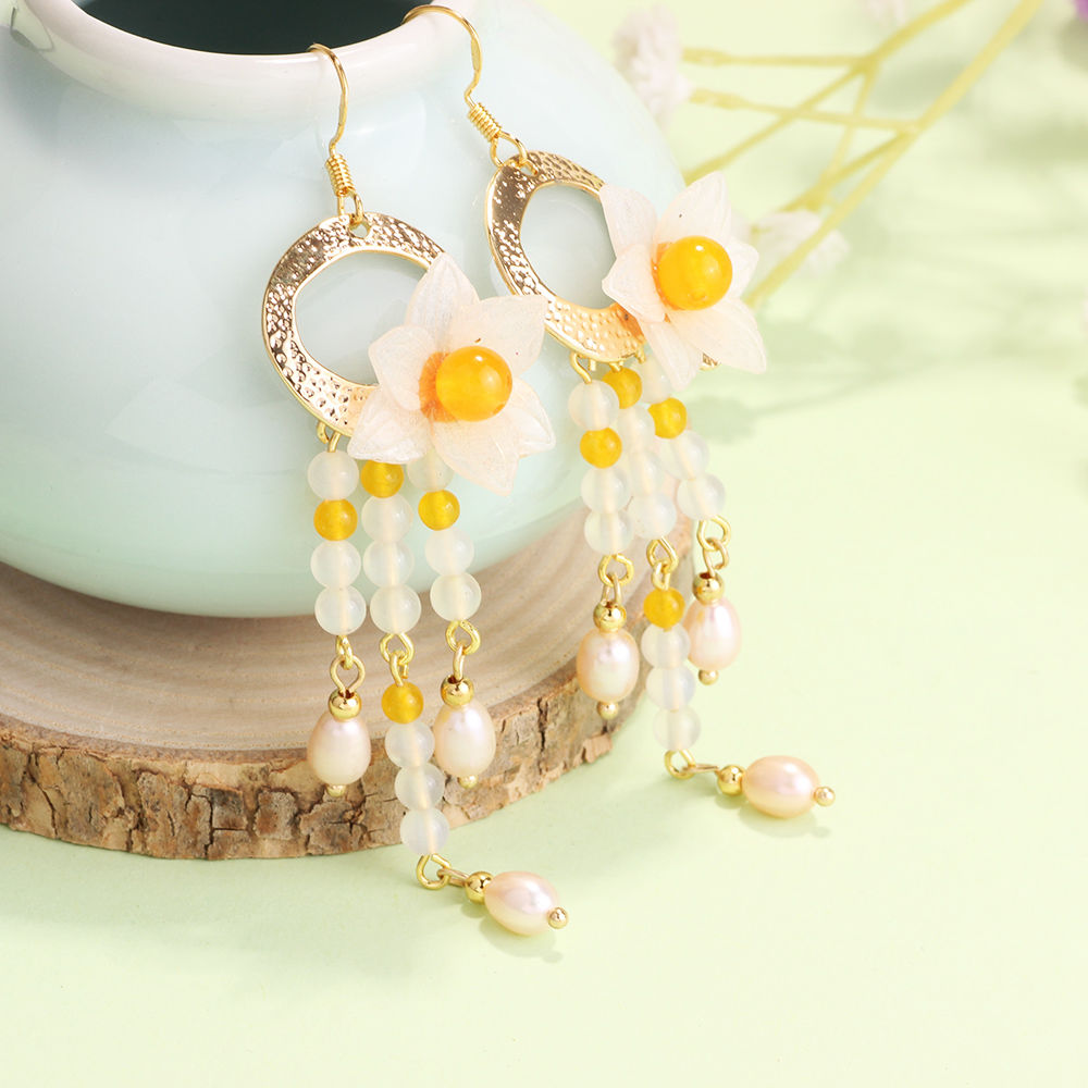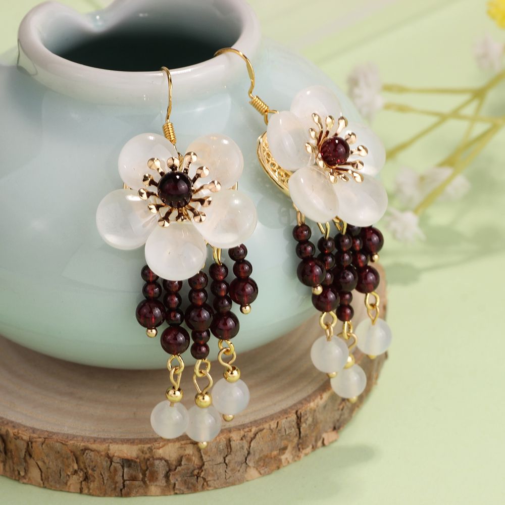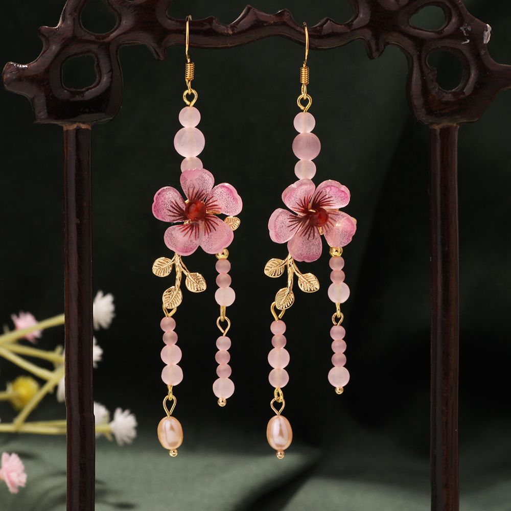 超仙古风十二花神耳环女长款流苏汉服耳坠荷花桃花国风耳饰耳夹