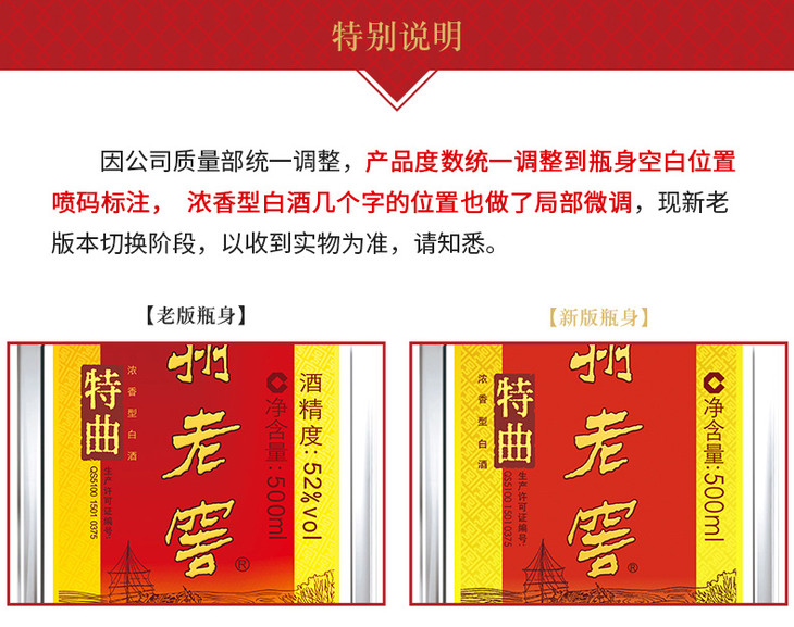 【特曲官旗】38度泸州老窖中华老字号特曲(第九代) 500ml*6 浓香型白酒