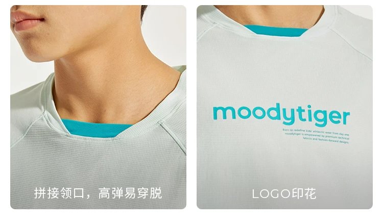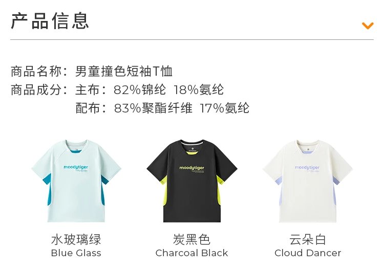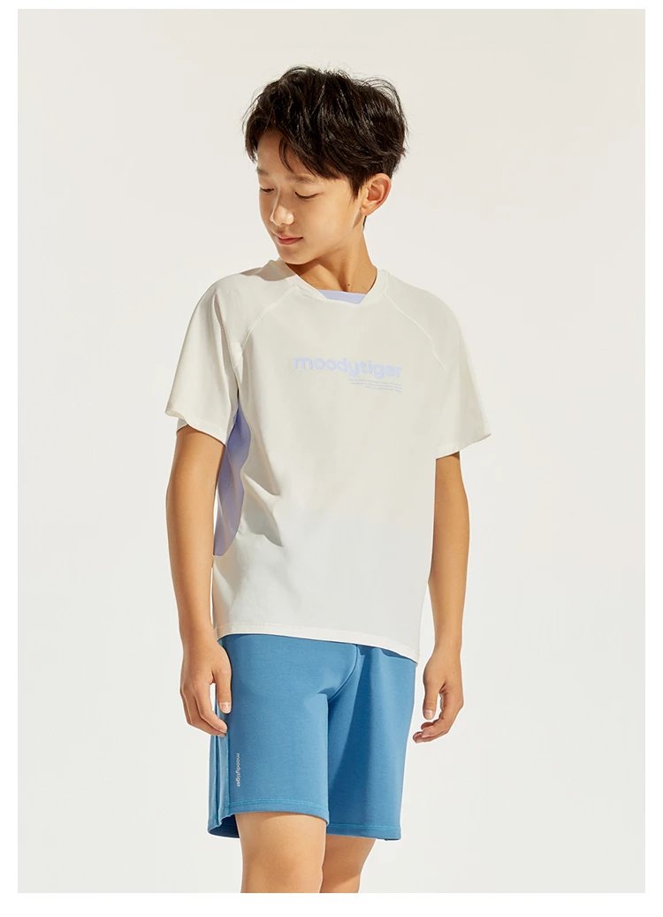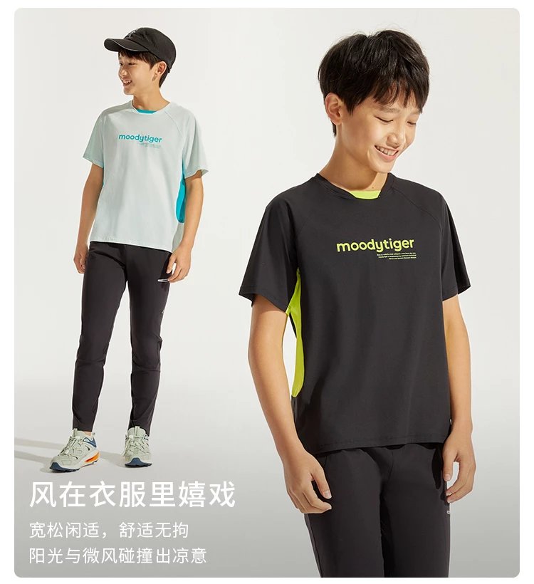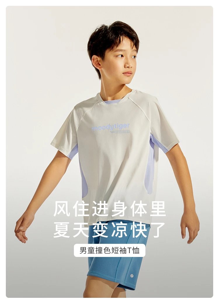 【24年夏新品】moodytiger24夏新男童运动户外透气撞休闲色舒适短袖T恤42110108