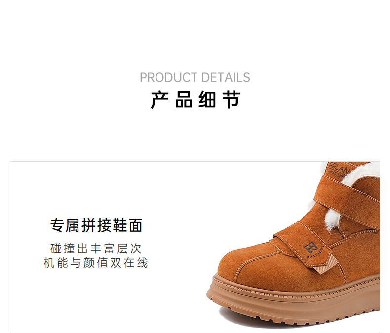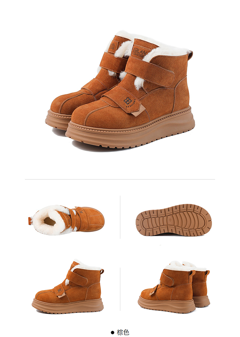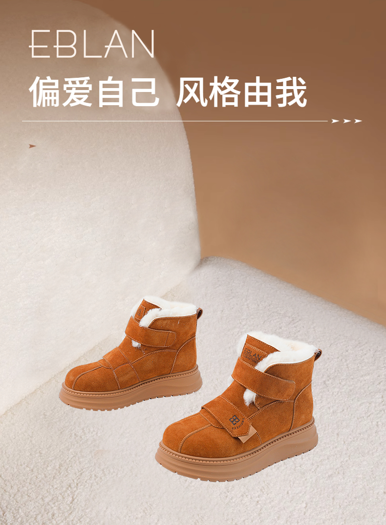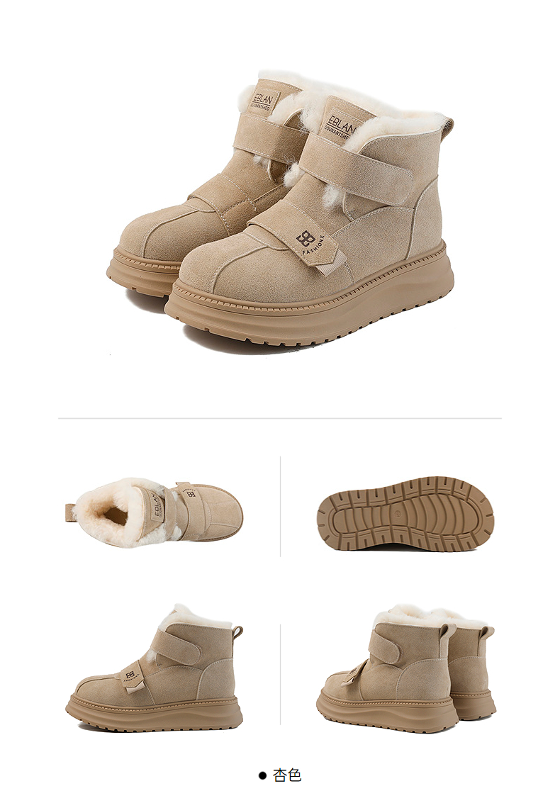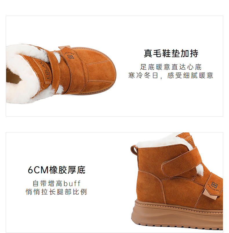 伊伴冬季拼接鞋面雪地靴橡胶增高厚底B25710911