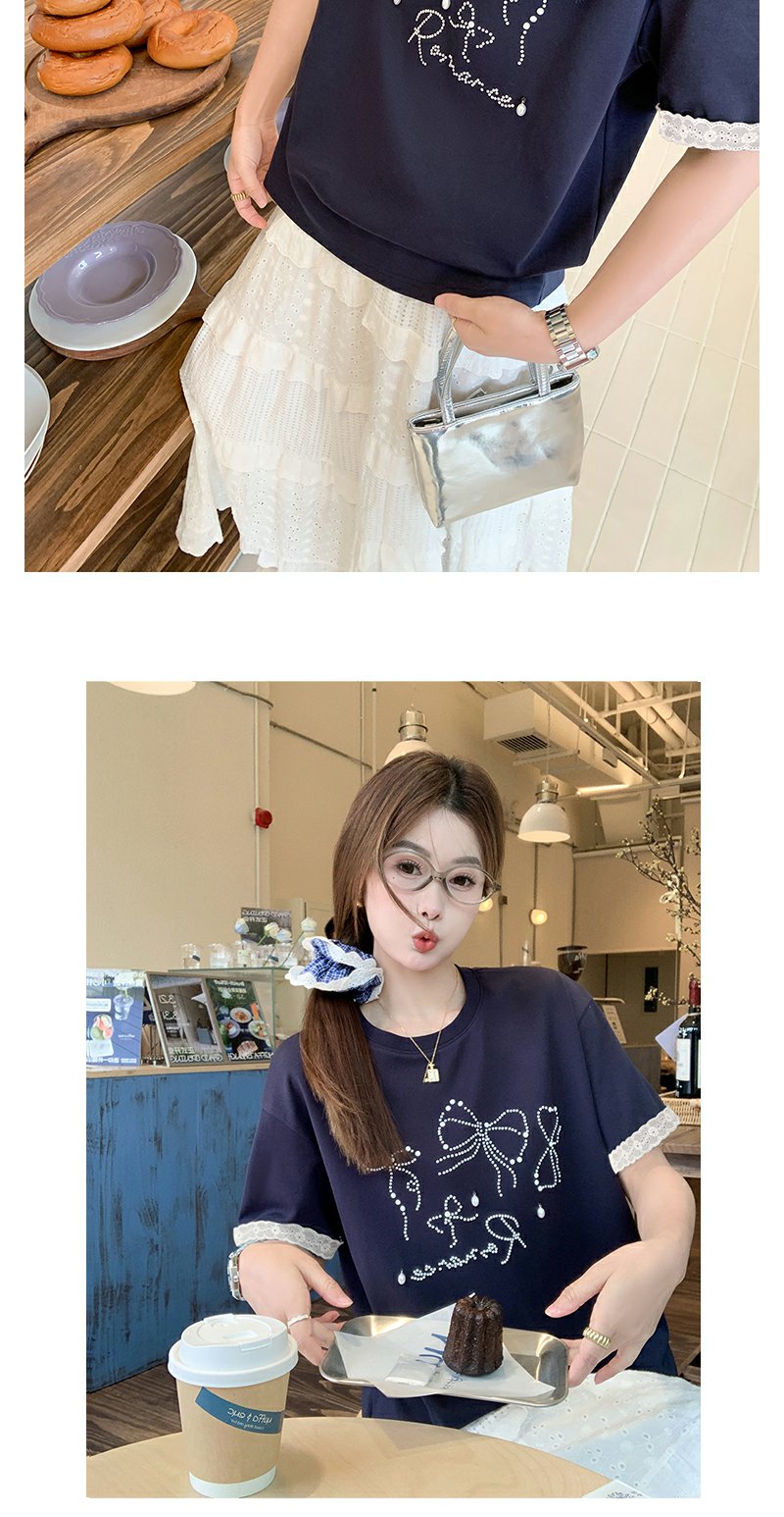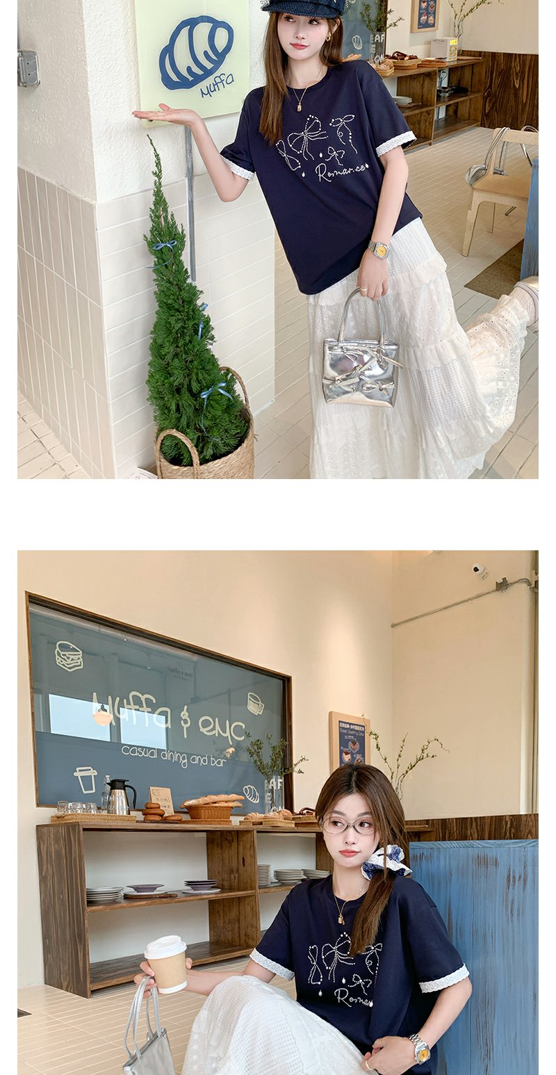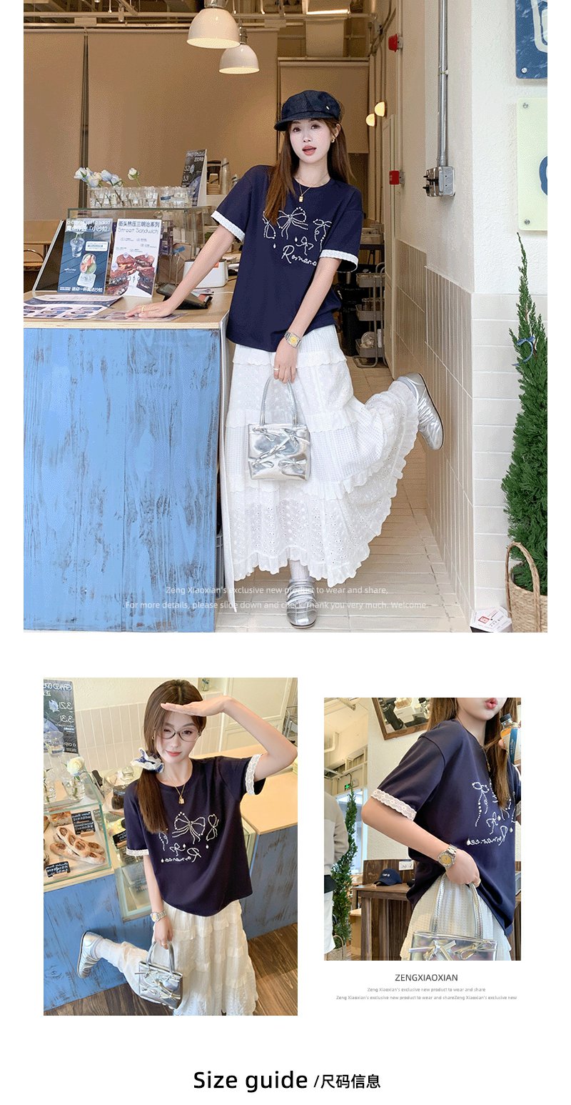 <曾小咸推荐>现货秒杀!微信超特价!蓝色蕾丝边拼接袖口圆领宽松短袖T恤 日常129.99 立减60 秒杀69.99!