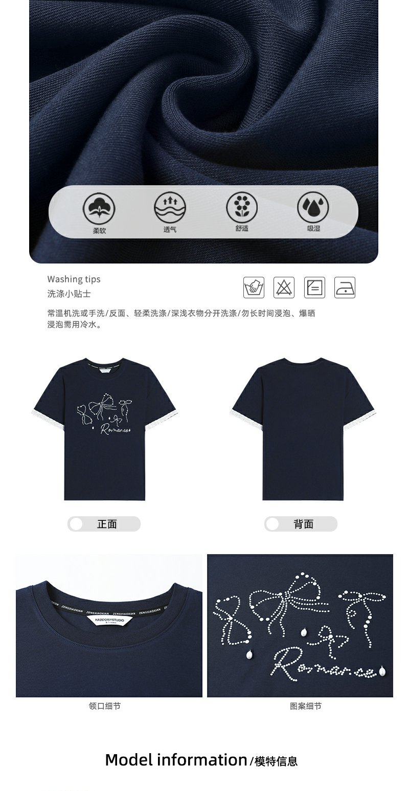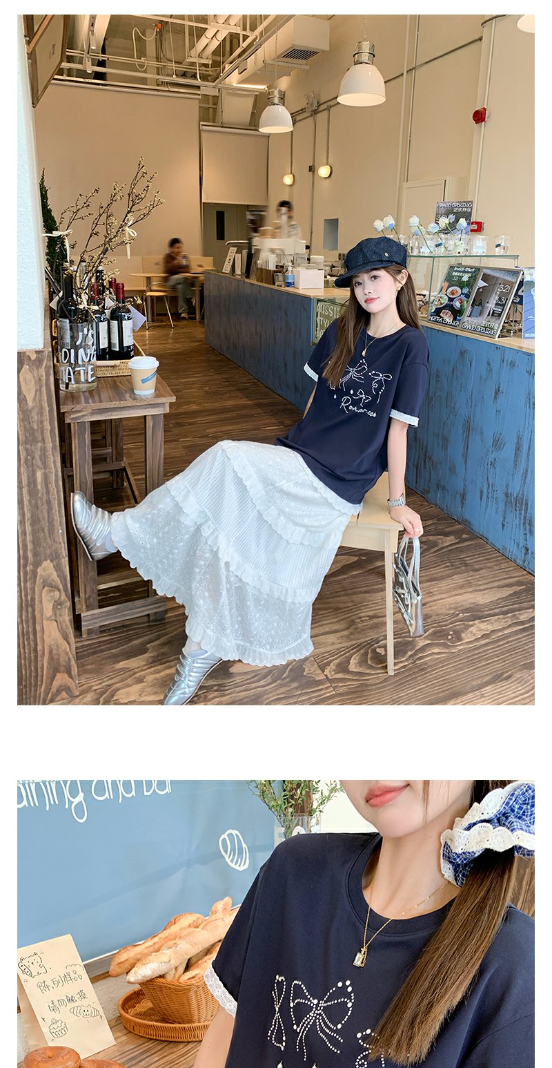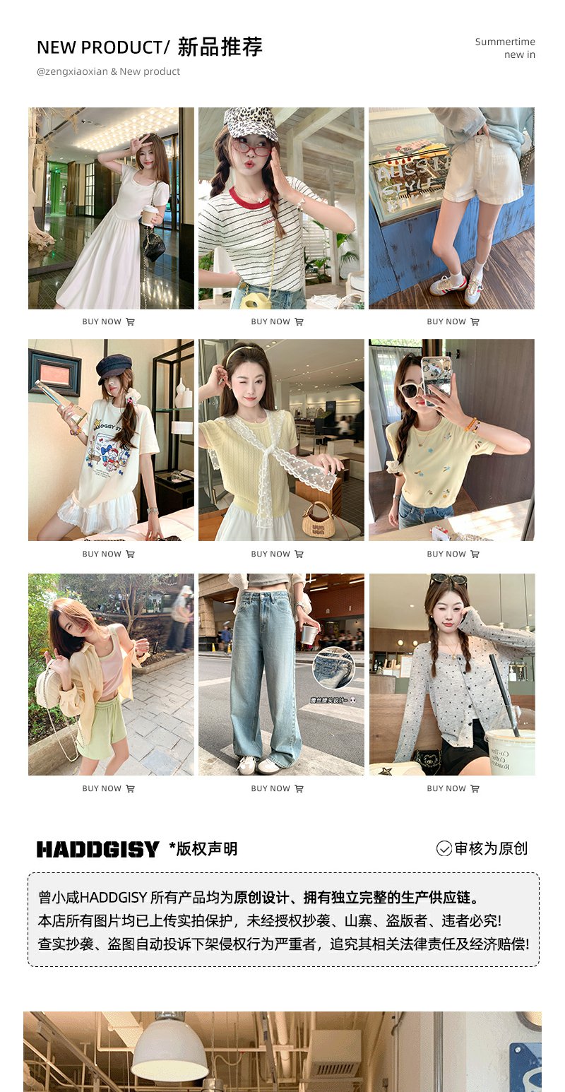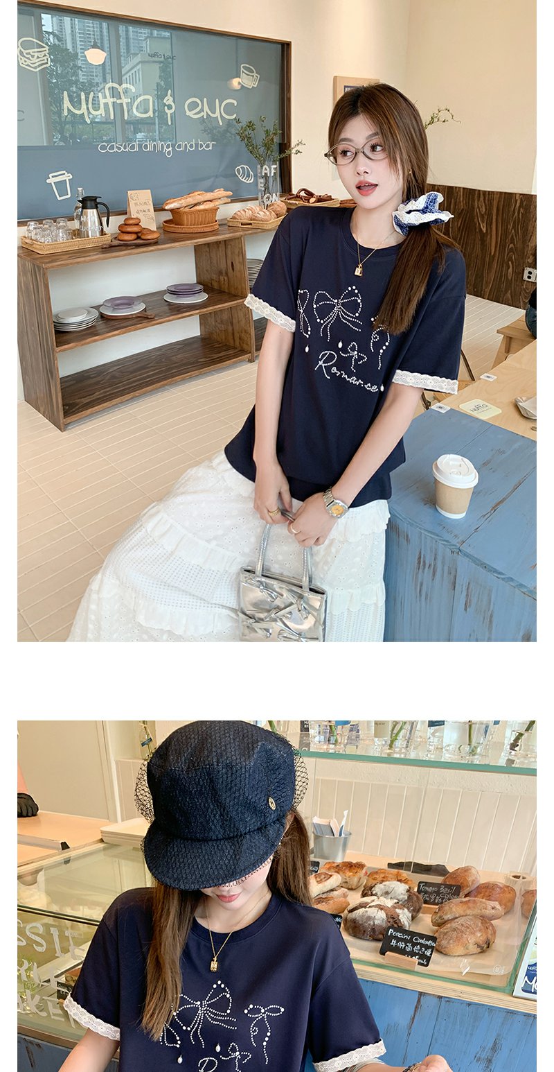 <曾小咸推荐>现货秒杀!微信超特价!蓝色蕾丝边拼接袖口圆领宽松短袖T恤 日常129.99 立减60 秒杀69.99!