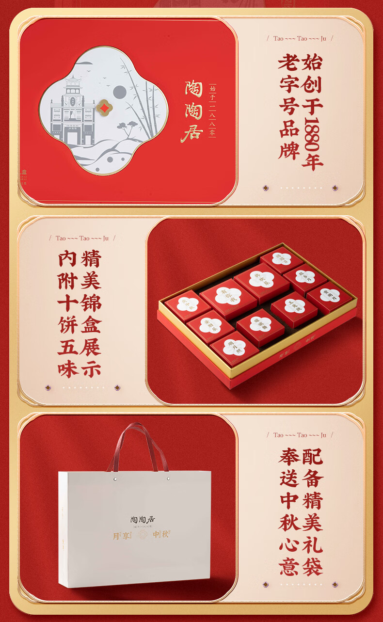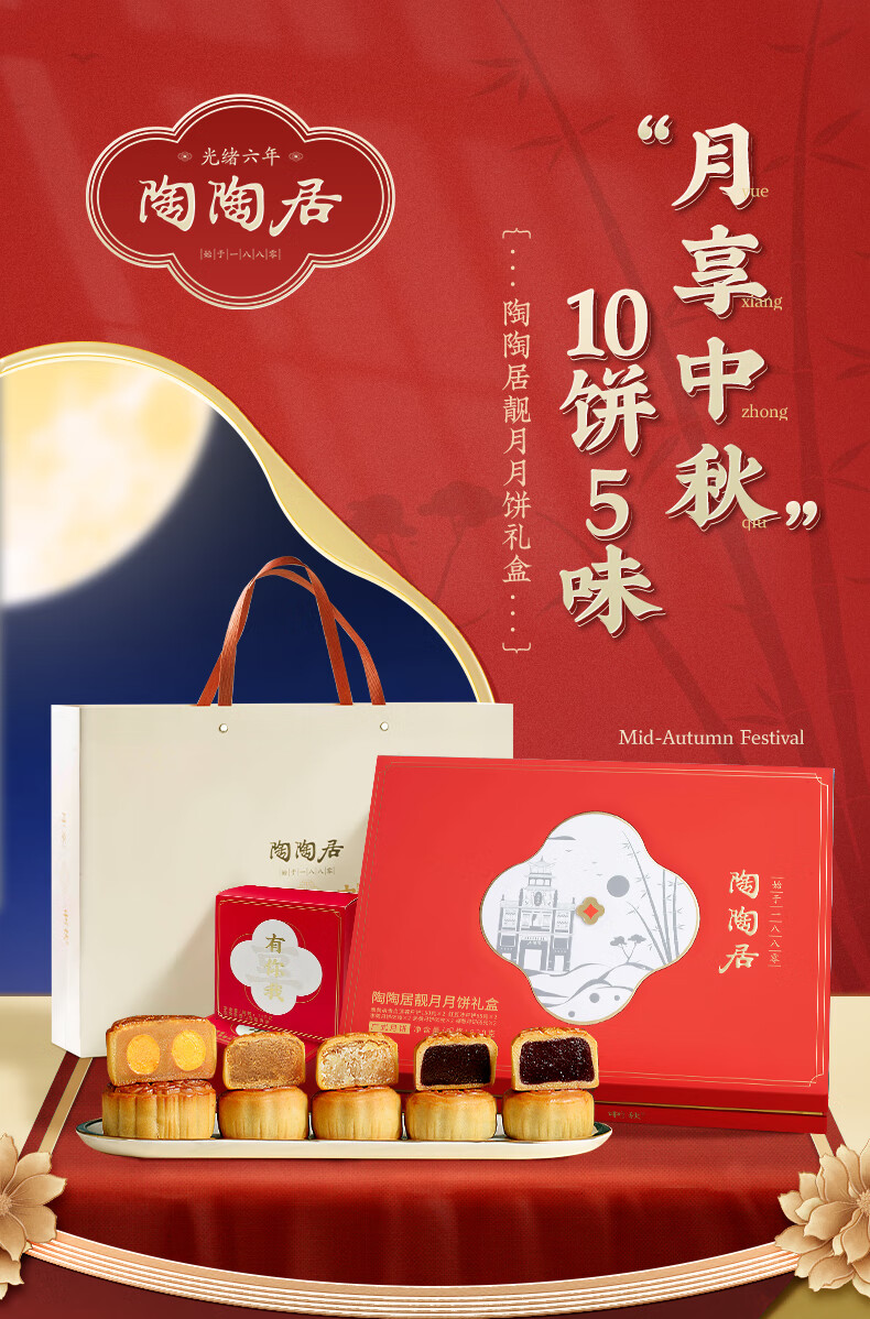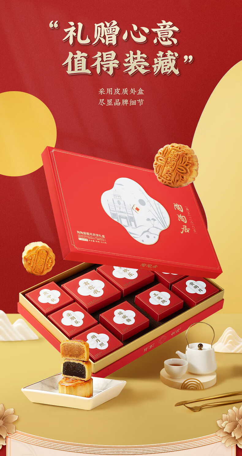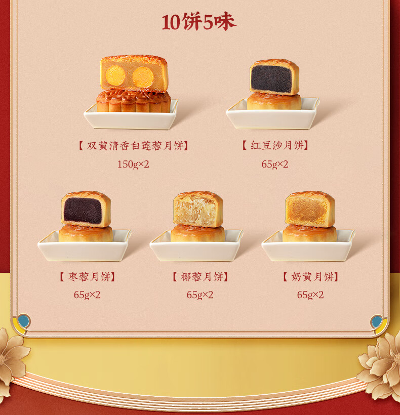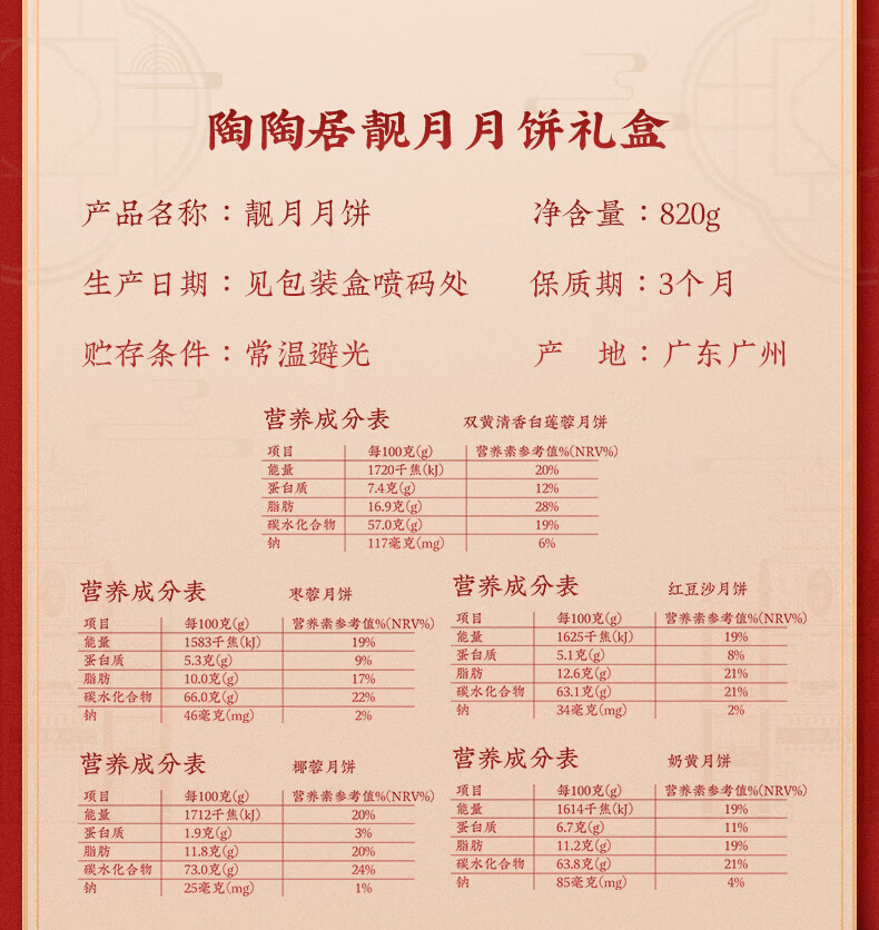 陶陶居靓月月饼经典礼盒广式传统双蛋白莲蓉奶黄豆沙月饼中秋节公司团购 靓月月饼【礼盒装】 820g 10枚装