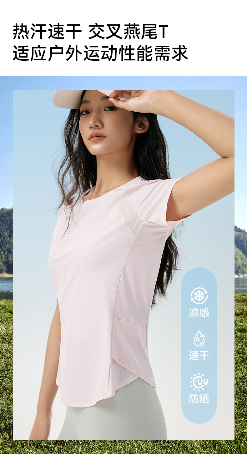 魔力薇薇交叉燕尾速干短袖T恤女2026春夏季新款防晒凉感运动上衣
