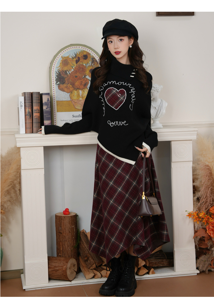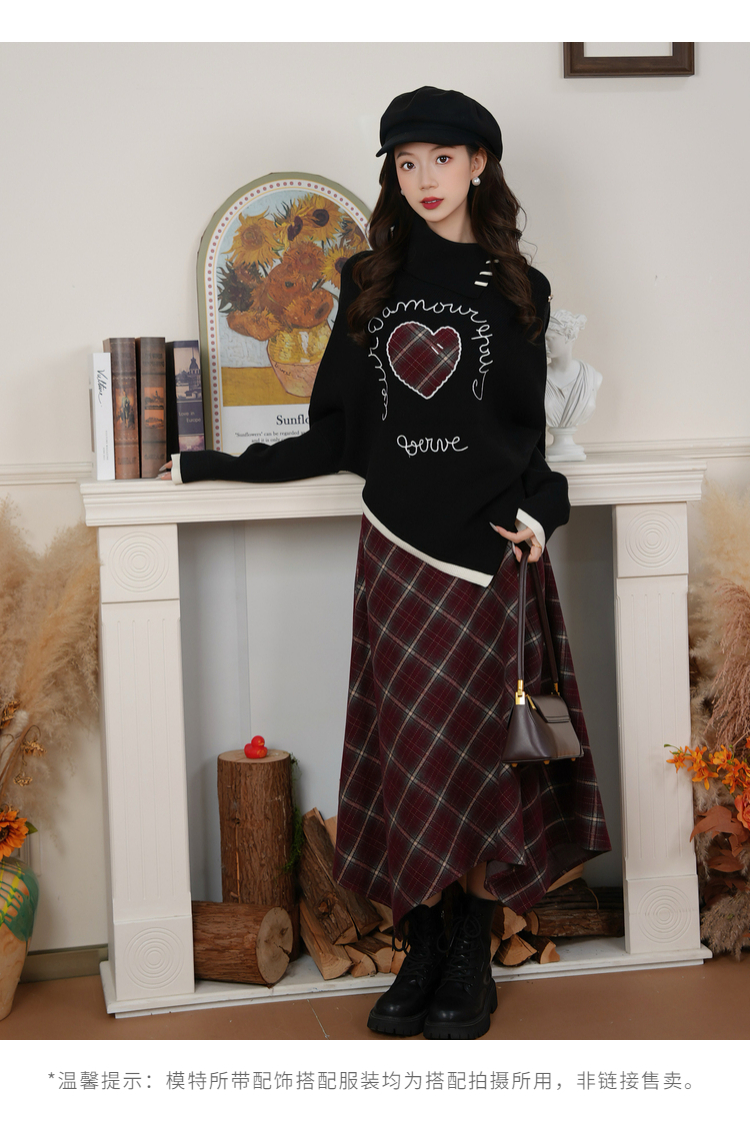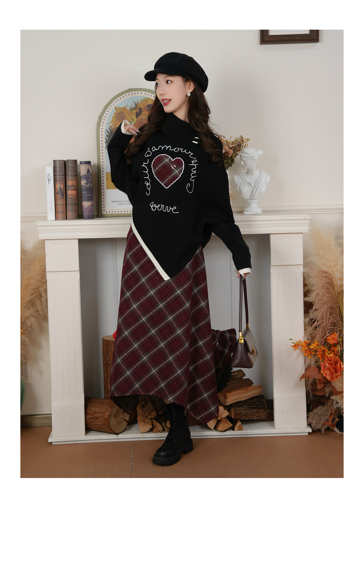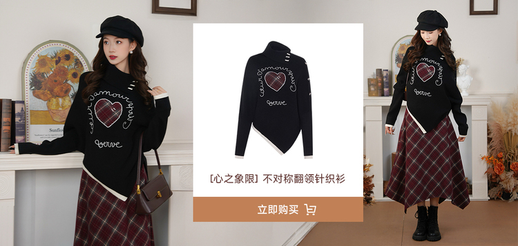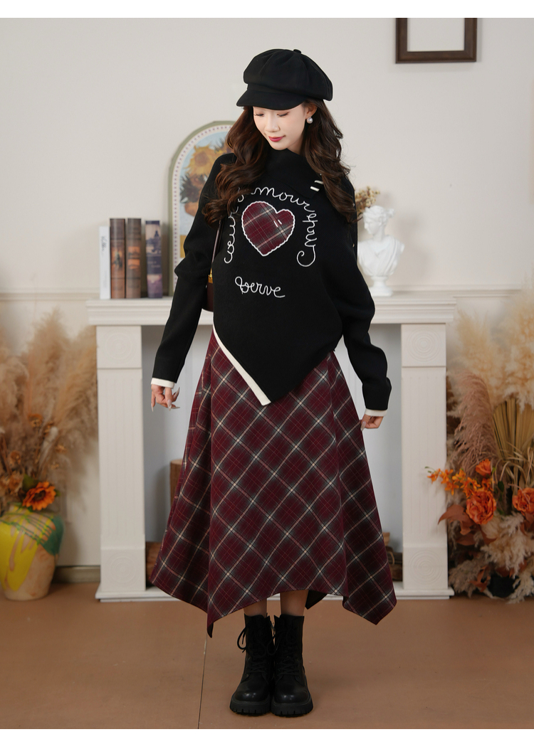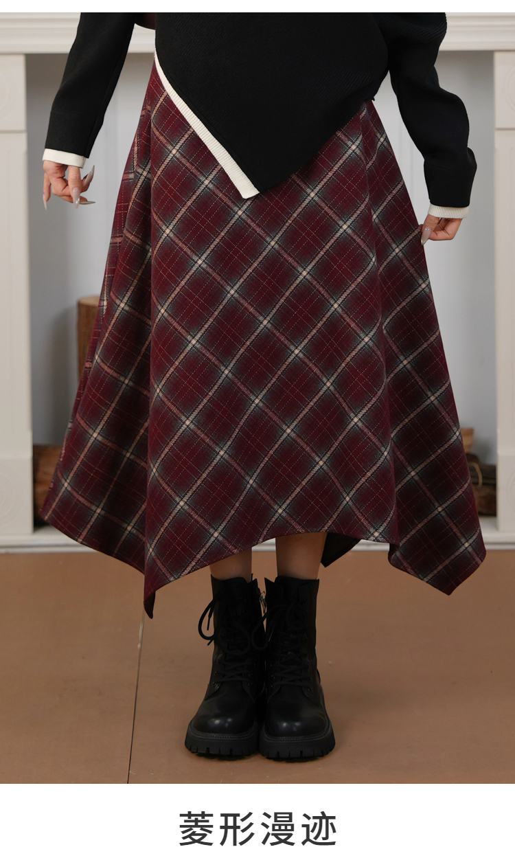 两三事 菱形漫迹 2025秋冬新款复古格纹不规则高腰半身裙