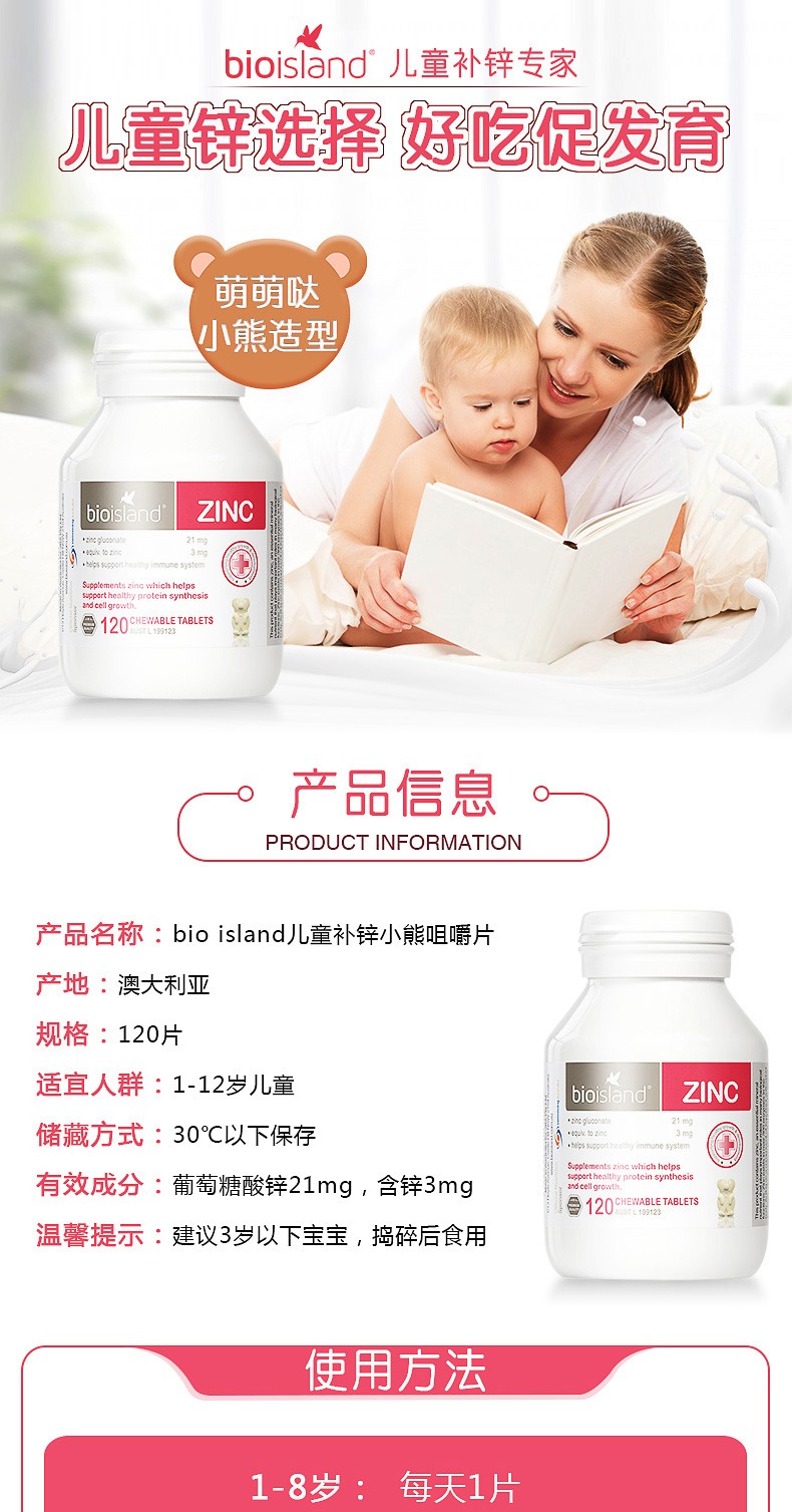 品名: 澳洲Bioisland 婴幼儿补锌片 咀嚼片