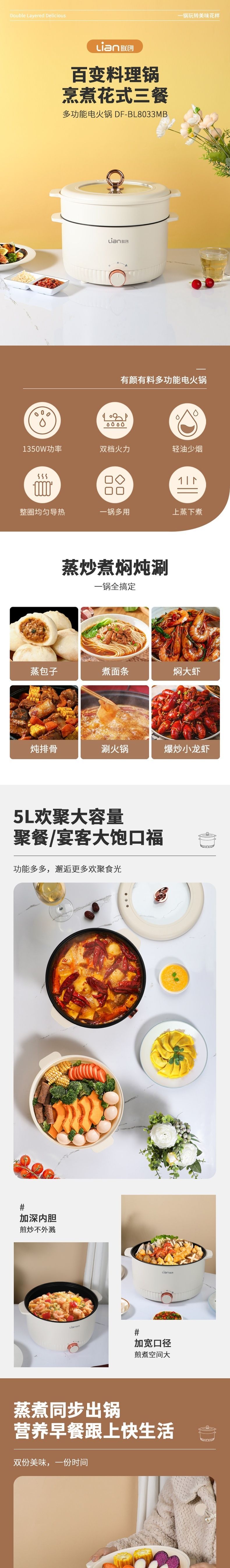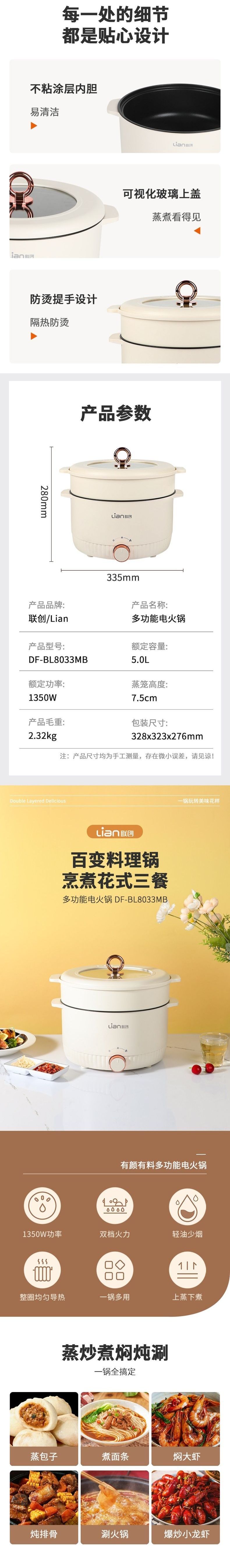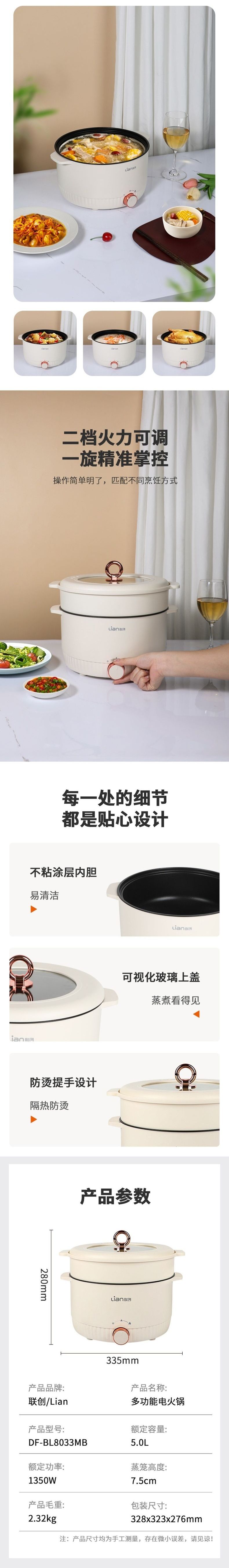联创 多功能电火锅 DF-BL8033MB 大容量电热锅煎烤涮一体锅