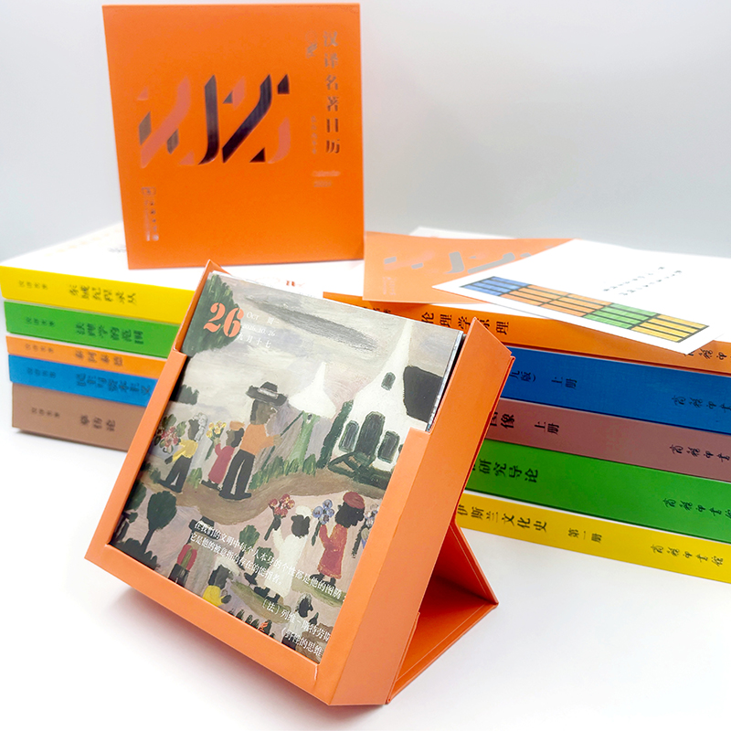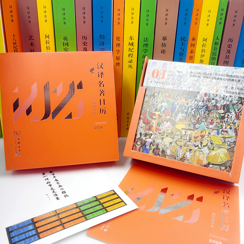 在颜色上,2026日历首次采用亮橙色,致敬象征汉译名著“彩虹墙”的哲学橙色,并将在今后四年,分别以柠檬黄、豆蔻绿、孔雀蓝、赭石棕对应历史、政法、经管、语言各类汉译名著,带领读者触摸“迄今为止,人类到达过的精神世界”。