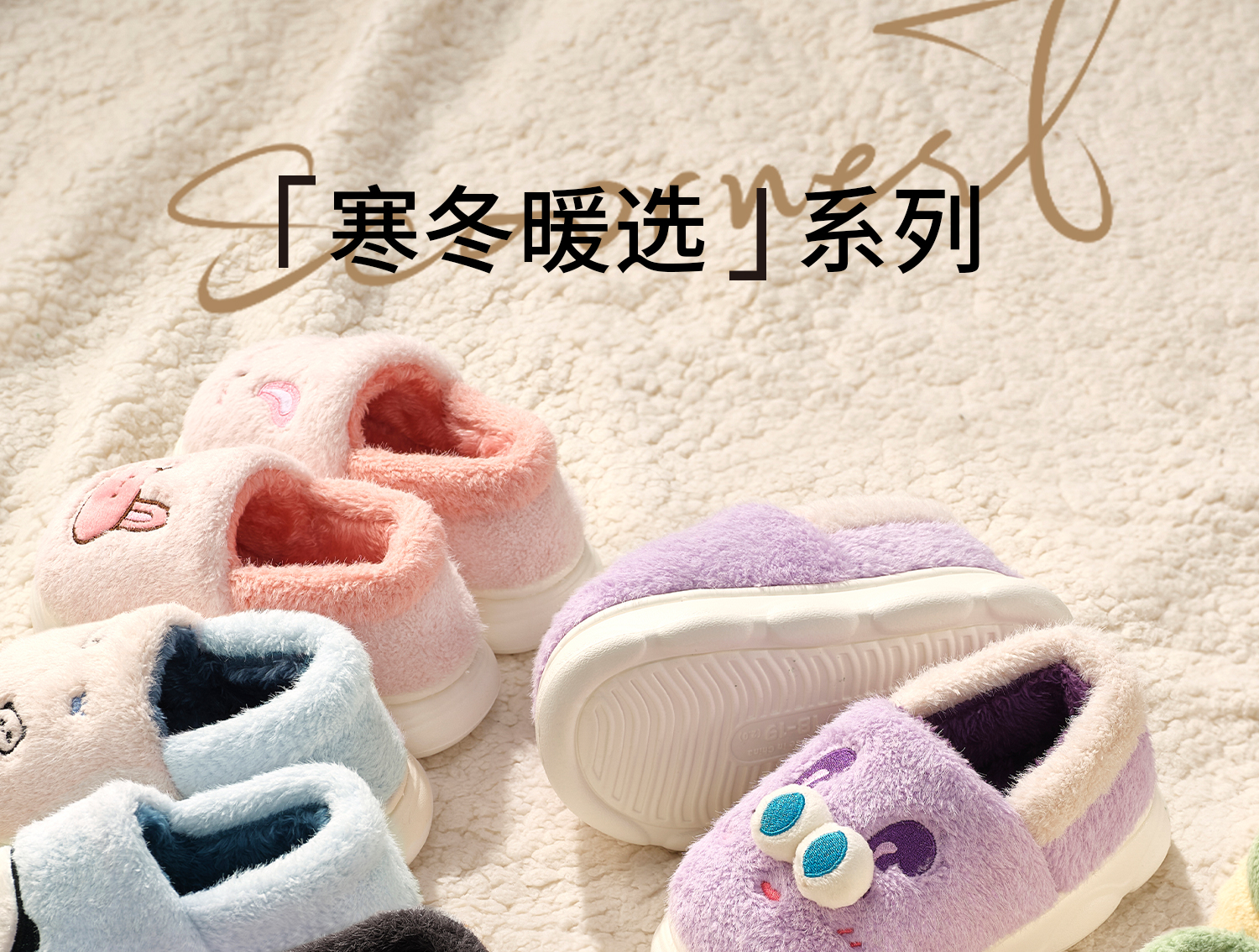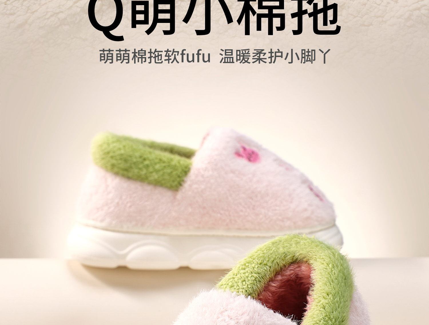科巢儿童棉鞋秋冬季男女童室内家居拖鞋宝宝棉拖加绒包跟毛毛鞋
