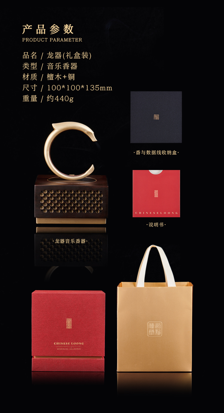 【产 品 名】:龙器礼盒套组(蓝牙+点香+储存)