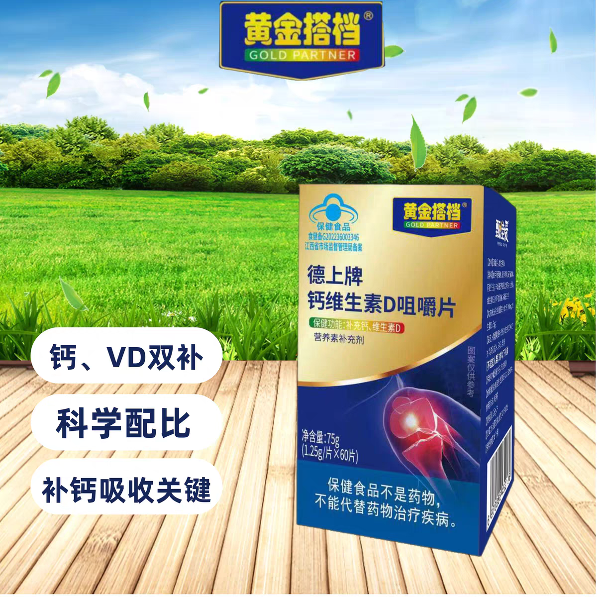 黄金搭档钙维生素D咀嚼片300mg补钙片男女通用60片装