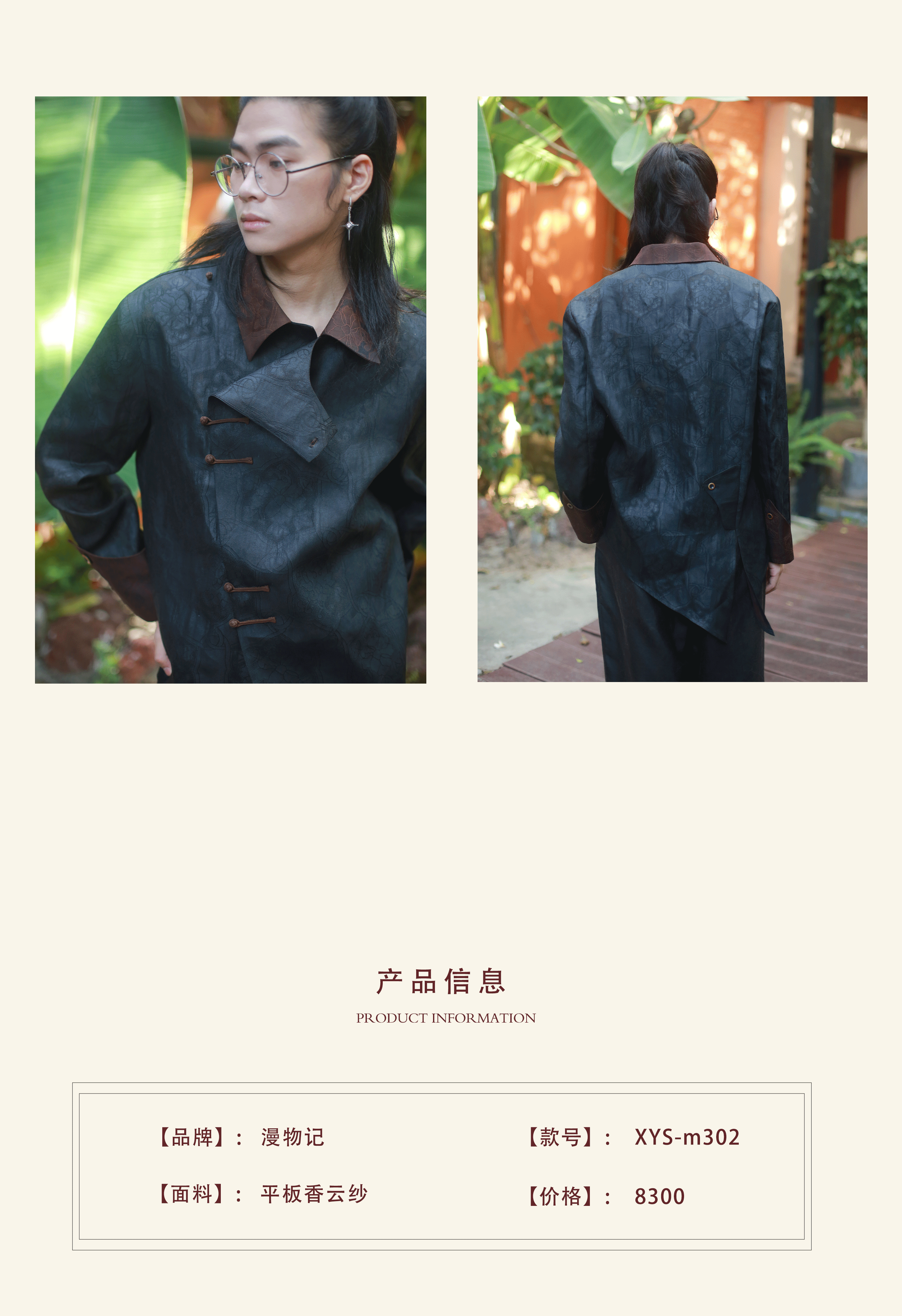 漫物记平板香云纱盘香扣双口袋上衣XYS-W226