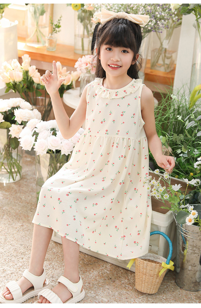 【洋气碎花 公主长裙!】缤纷夏目,洒满花海,可爱娃娃领,甜美如蜜。包边袖口设计,健康无异味,舒适面料轻柔细腻。新款夏季女童连衣裙,公主范十足,中小童中大童均适宜!