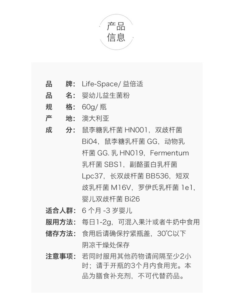 澳洲Life space 婴儿益生菌60g 6个月-3岁
