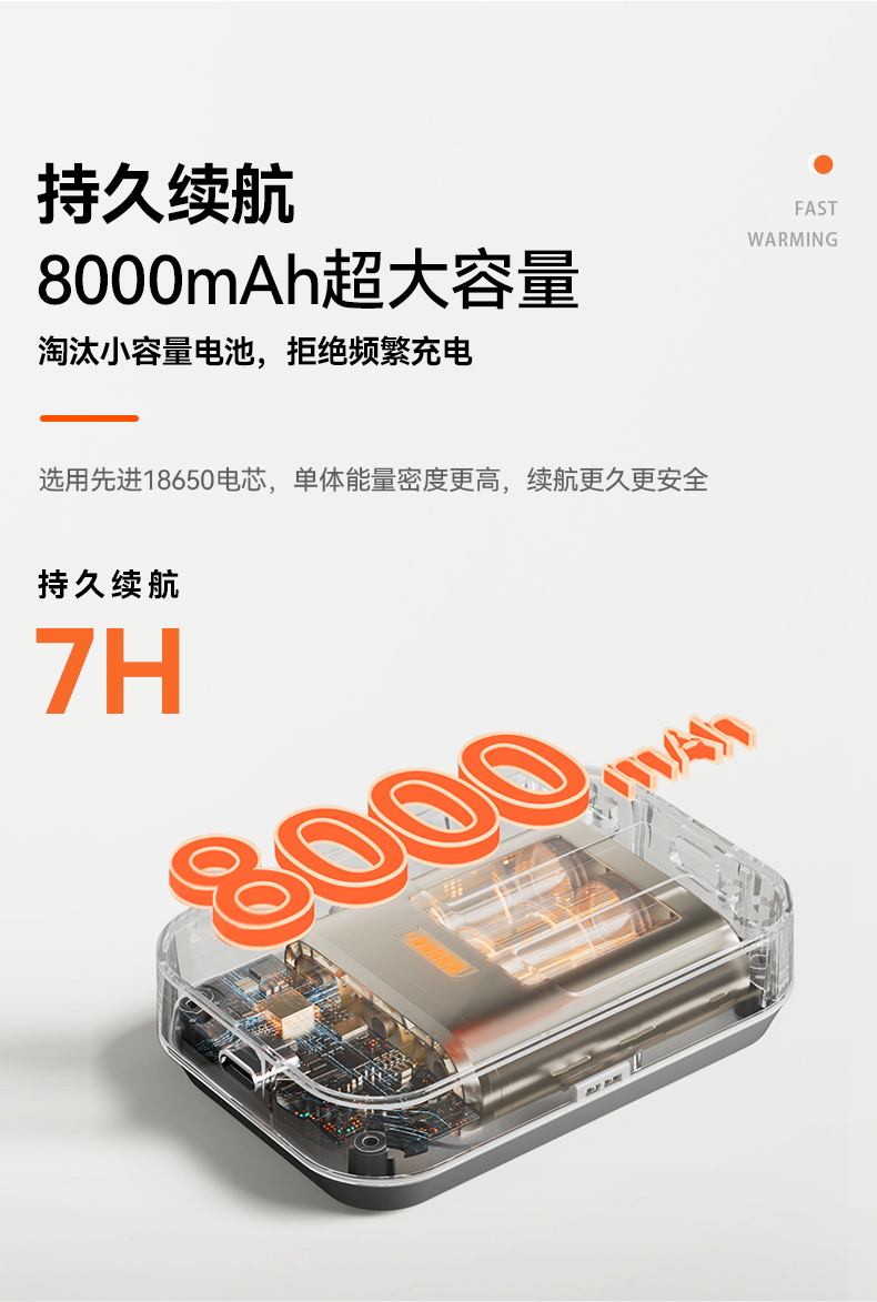 【电池容量】 电热护膝仪:5000mAh 热灸按摩腰带:8000mAh |