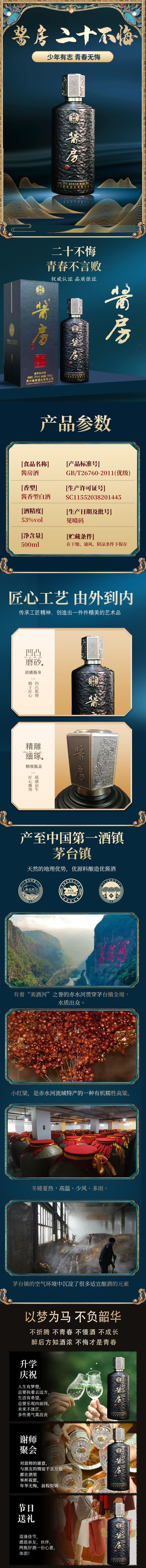 【自营】新品 酱房【二十不悔】贵州茅台镇酱香型白酒 53度500mL 53%vol 500mL 1瓶