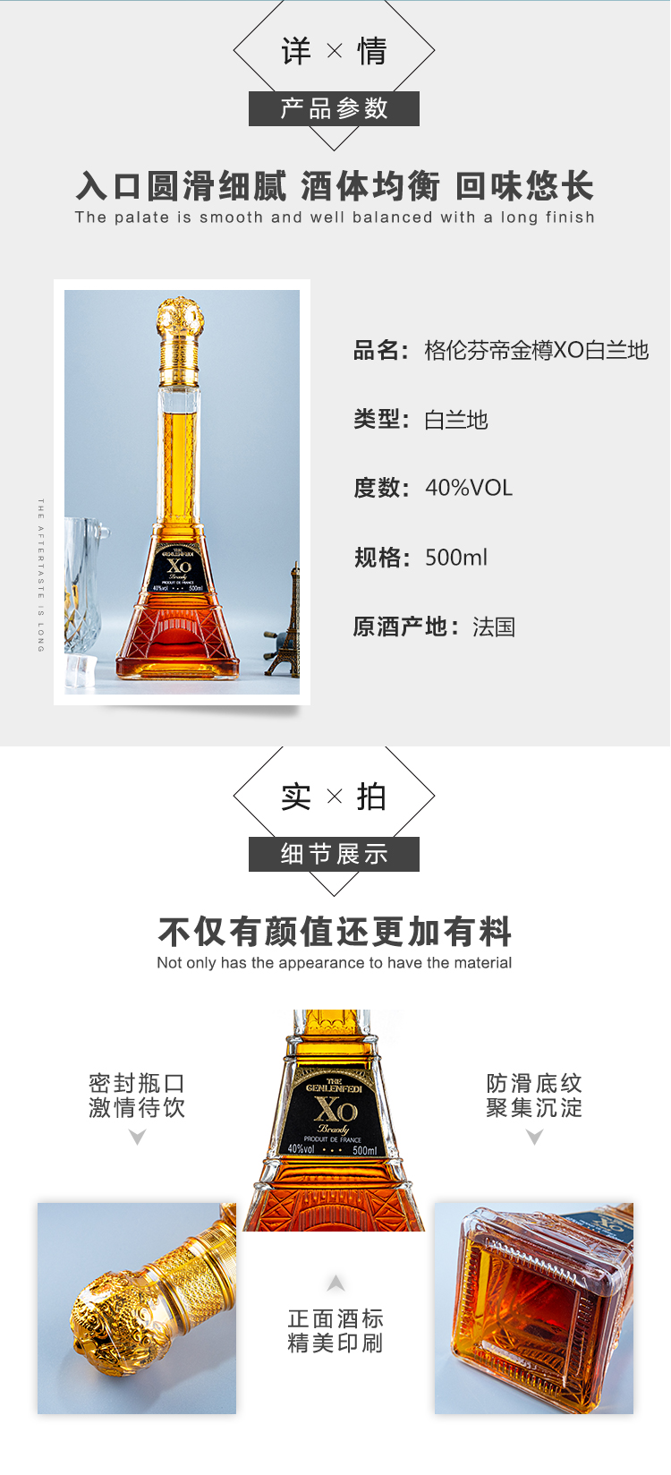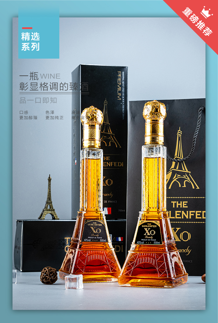 【2瓶】格伦芬帝金樽XO白兰地500ml×2瓶40%VOL口感醇臻年货过节送礼甄选