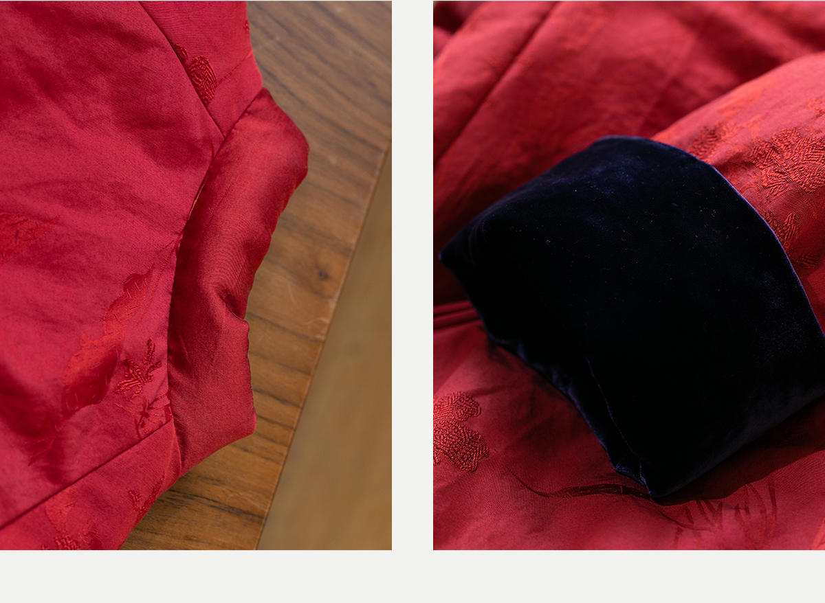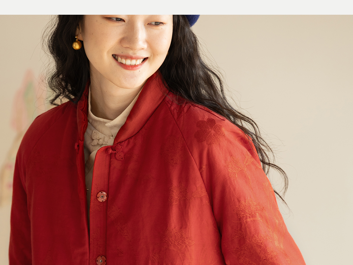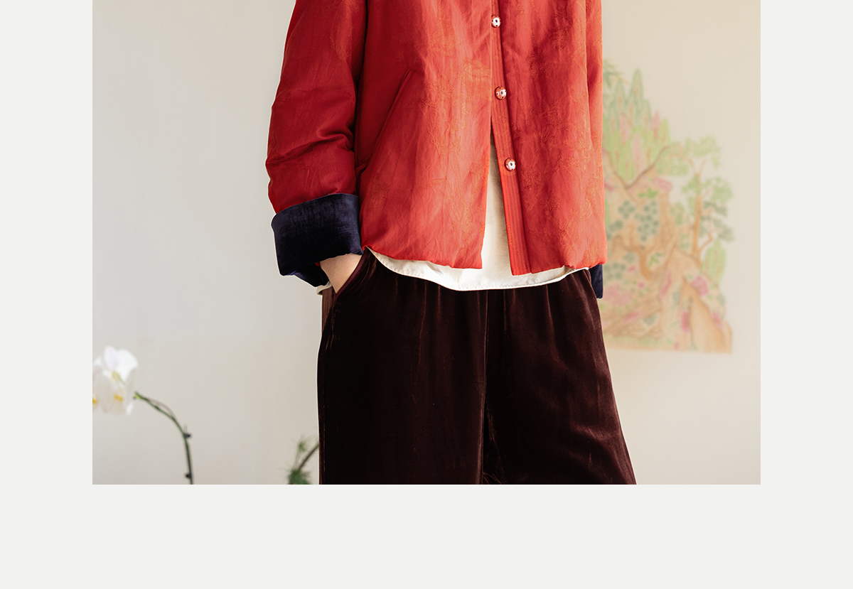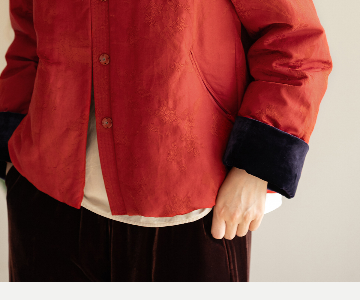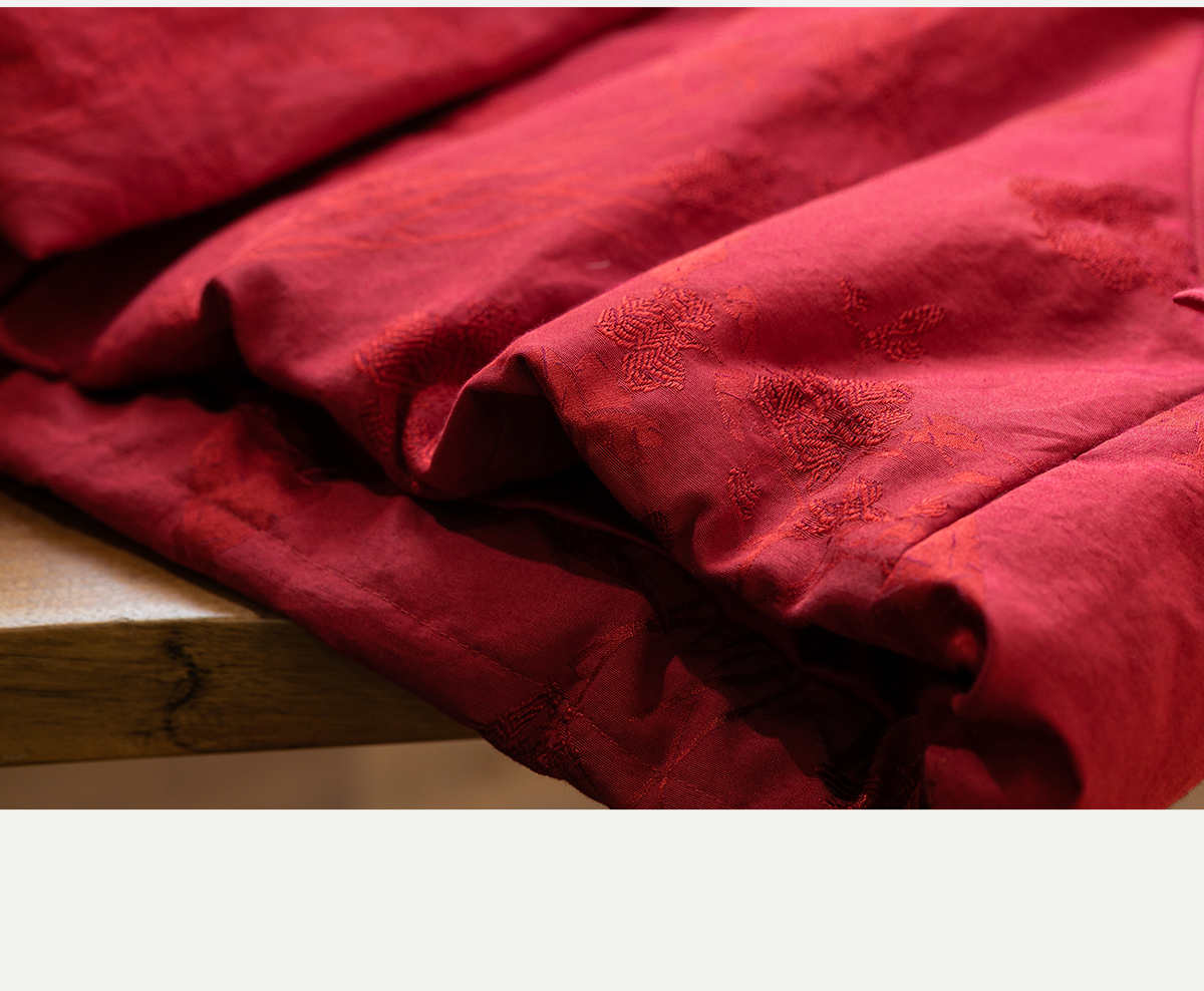 牧衣游原创 真丝混纺提花高蓬松红嘴雁绒羽绒服红色中式 松间照