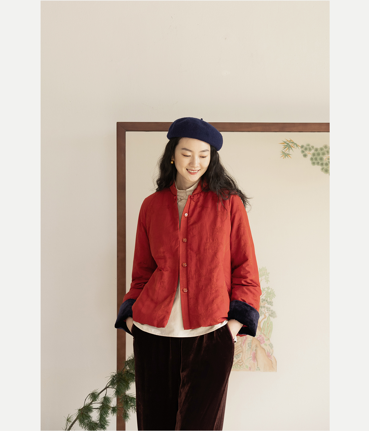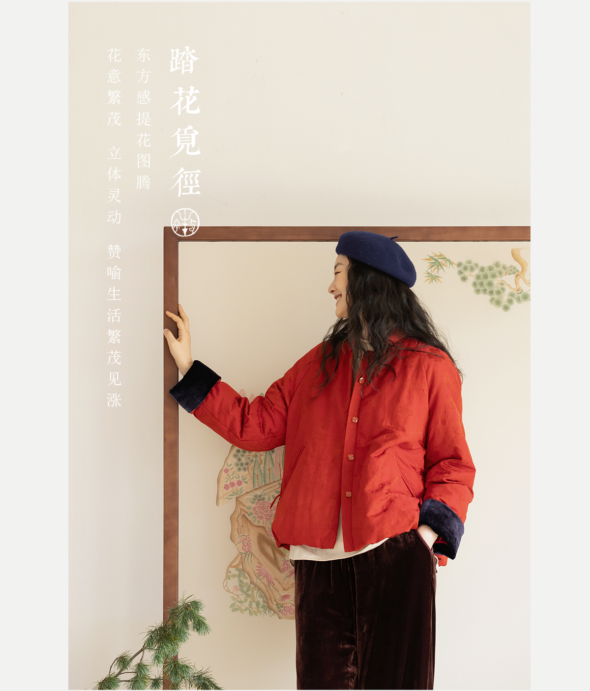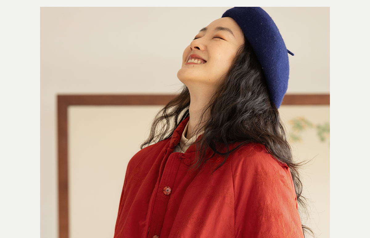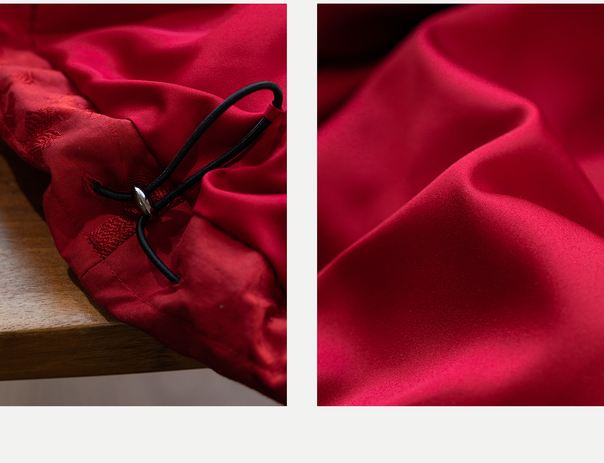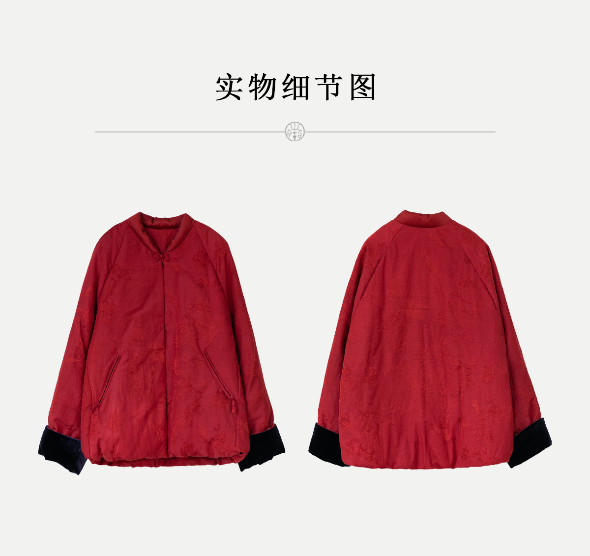 牧衣游原创 真丝混纺提花高蓬松红嘴雁绒羽绒服红色中式 松间照